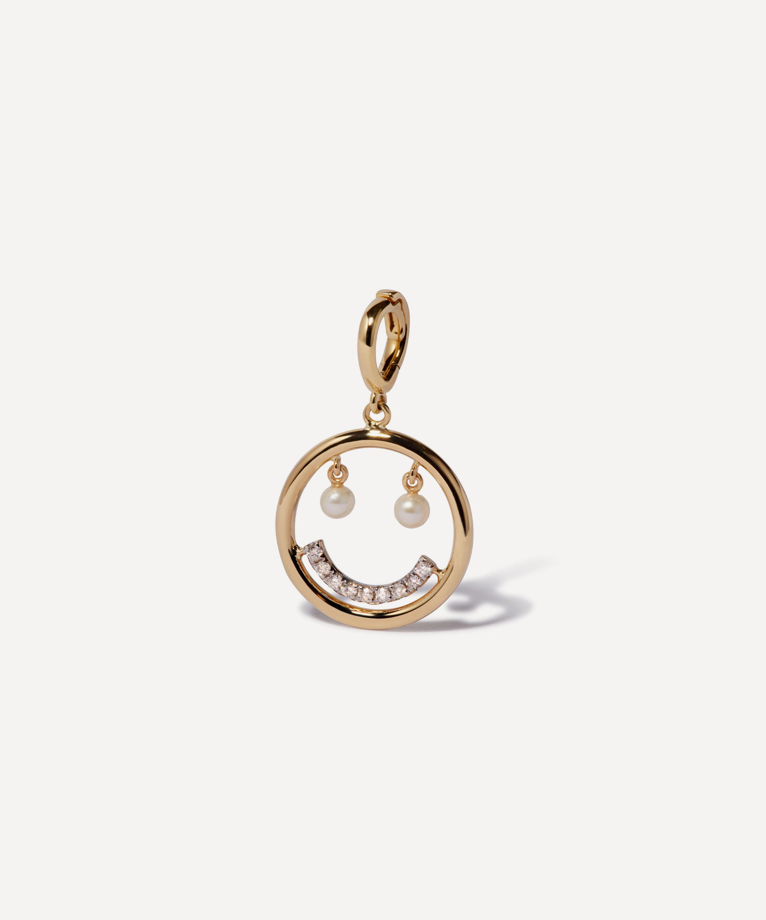 This pendant charm is part of Annoushka’s enchanting Mythology collection – a tale-inspired anthology, brimming with meticulously detailed talismanic treasures symbolising a moment in time and memory. Handcrafted from 18ct gold, this charming piece depicts a happy face with two freshwater pearls for eyes, and a sparkling diamond encrusted smile. Complete with a bail clasp, it can be attached to any of the brand’s 14ct and 18ct gold chains.