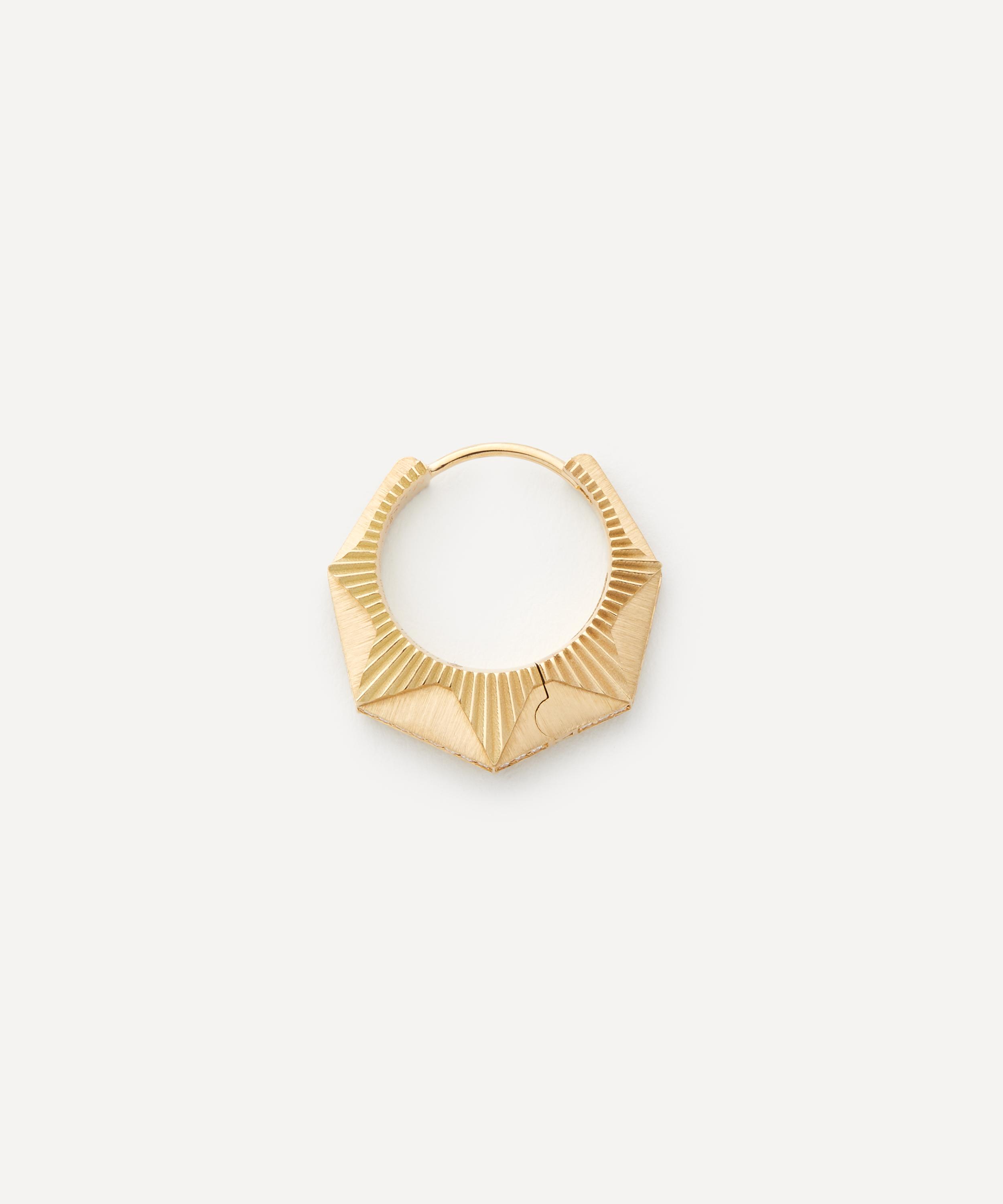 Add an edgy touch to your ear curation with the NYC hoop earring from Marie Lichtenberg. Crafted from 18ct gold, this single earring features five-studded star set with sparkling white diamonds. Complete with textured ridges, it will effortlessly brighten up any ear stack with its playful spirit.