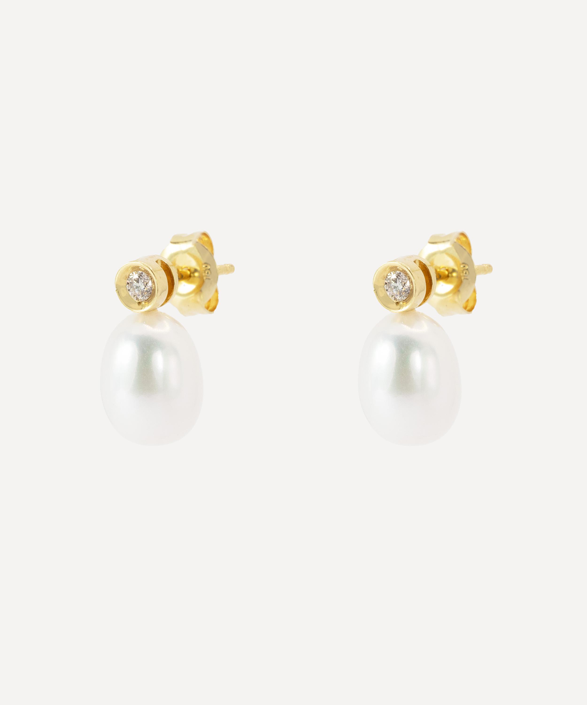 18ct Gold Pearl and Diamond Stud Earrings