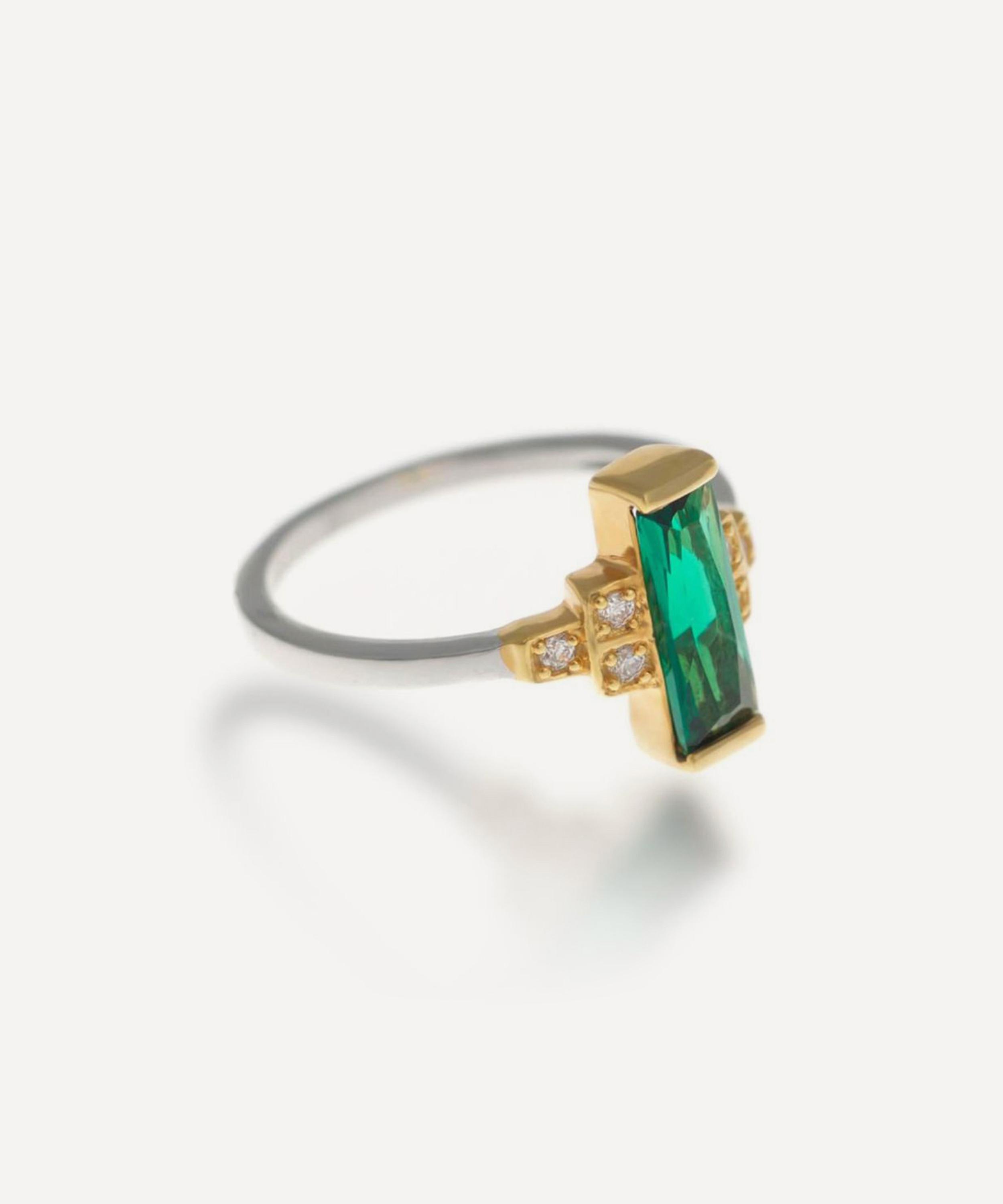 18ct Gold-Plated; Rhodium-Plated Sterling Silver; Synthetic Emerald; Cubic Zirconia