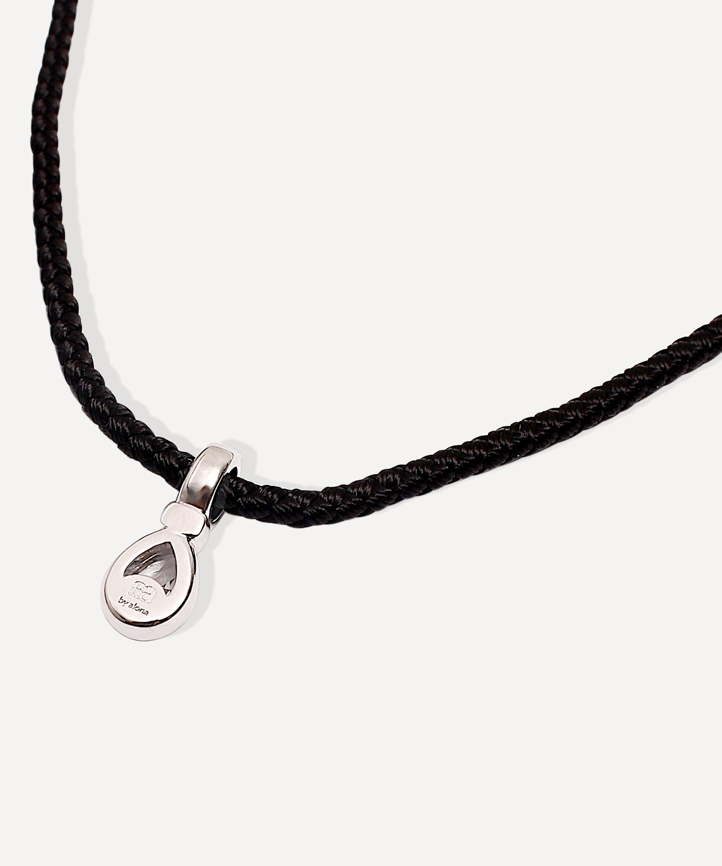 A sleek everyday piece, it's crafted with a black braided cord strung with a signature teardrop pendant in silver-plated brass, housing a light-catching cubic zirconia stone. Pair it with other necklaces for a unique take on layering, or wear it alone for a solo statement look that will enhance your everyday outfit.