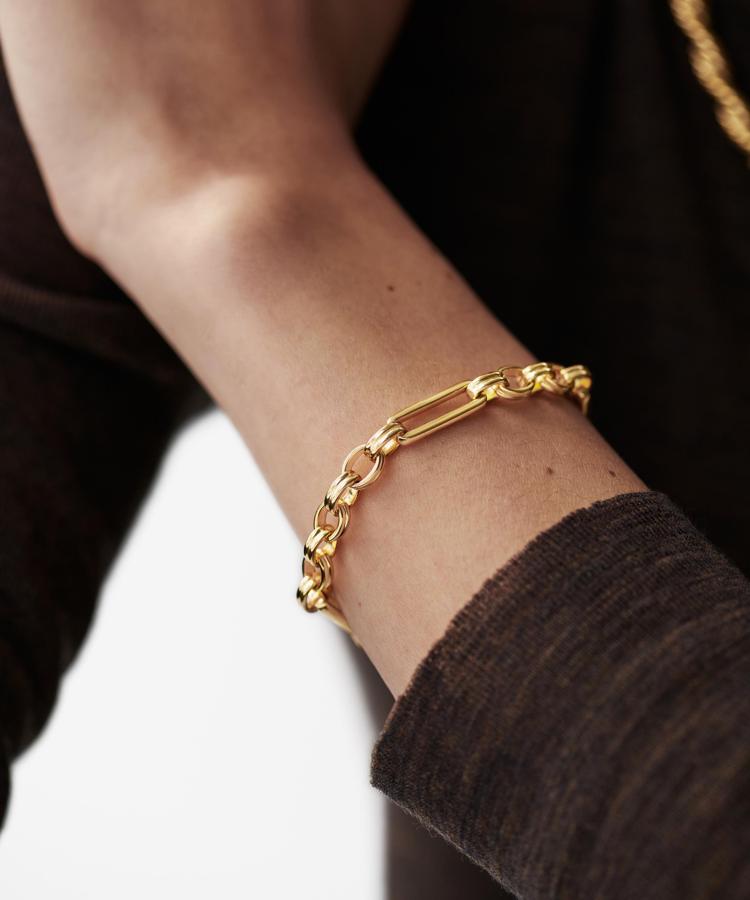 Perfect for everyday wear, this chain bracelet from Missoma is an essential addition to any jewellery box. Crafted in 18ct gold-plated brass, it’s characterised by a classic axiom chain with interlocking links in a high-polished finish - try layering it with several contrasting gold chains or add a pendant of your choice for a hint of personalisation.