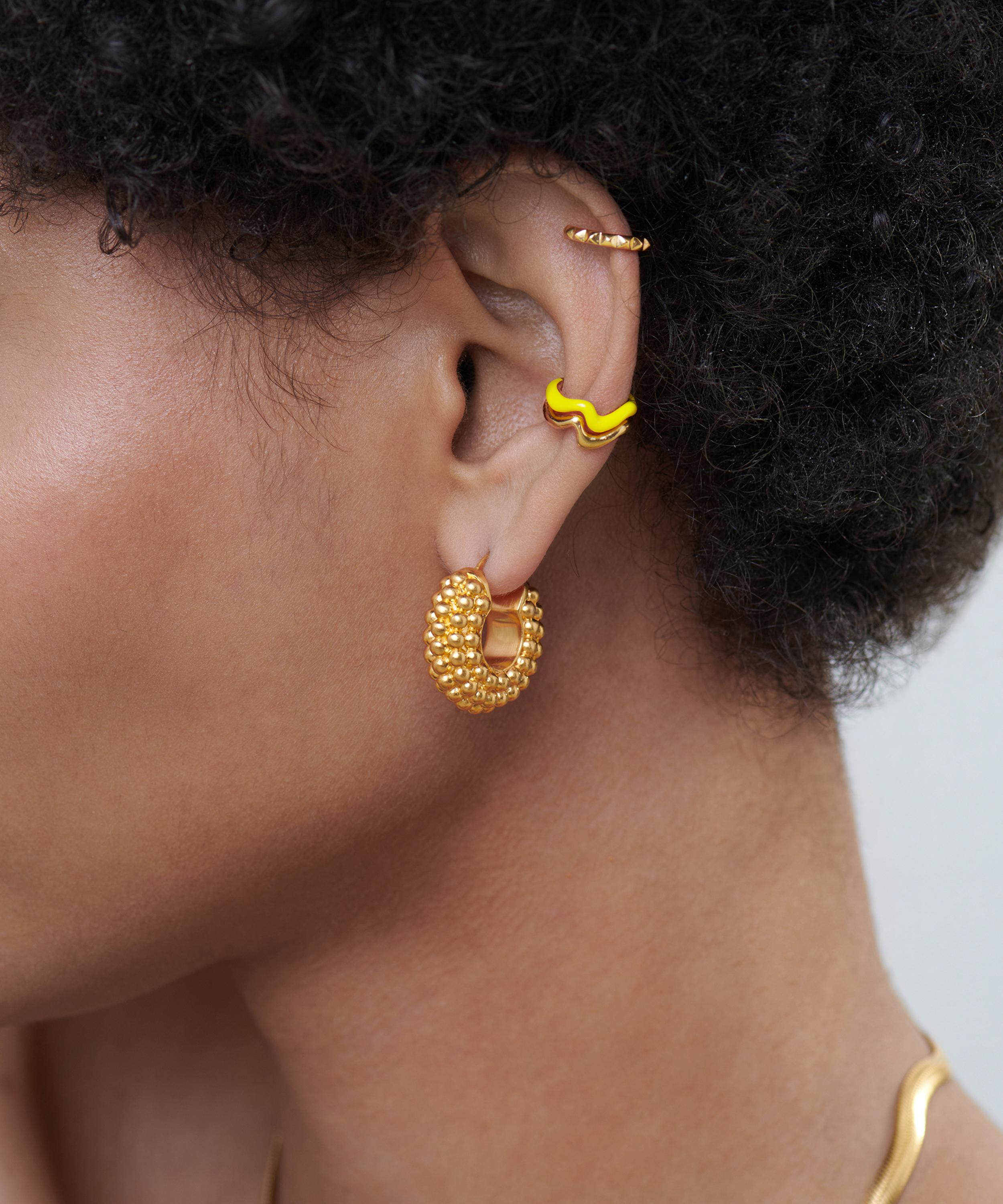 Boasting everyday statement hoops, these hoop earrings from Missoma draw inspiration from Colombia. Crafted in 18ct gold-plated brass, each earring features a chunky, high-polished hoop adorned with a unique bobble detailing. Style them as part of a stack, or wear them solo for a minimalistic approach.