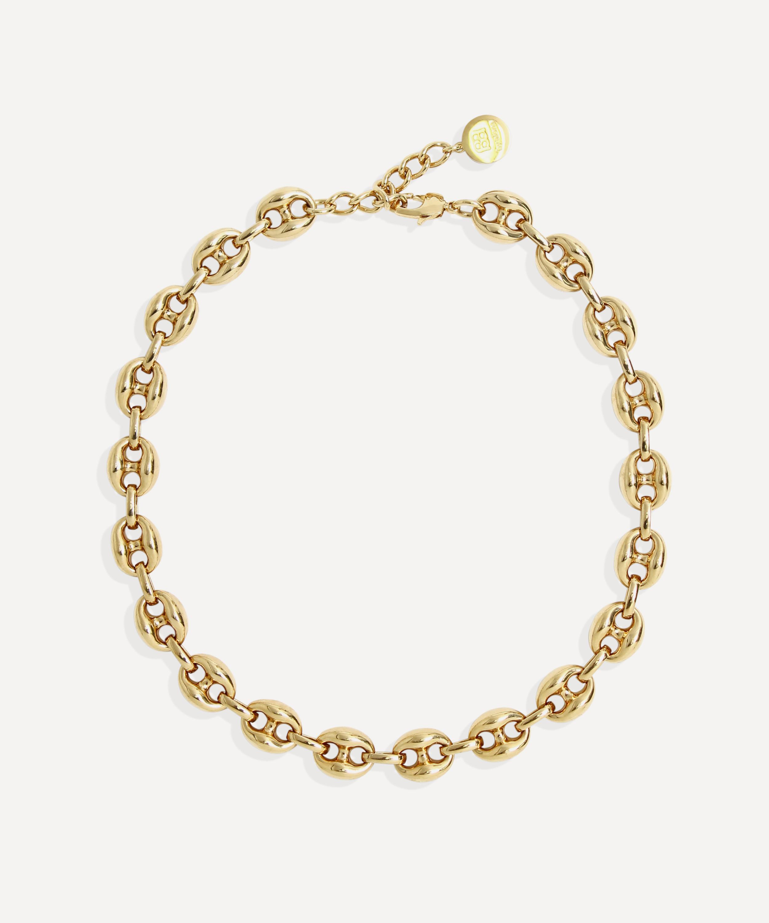 Thoughtfully crafted in London with 18ct gold-plated interlocking oval links, it boasts a chunky silhouette designed to complement the brand's matching Capri bracelet. Wear it solo for a bold statement or enhance your neck stack with a layered aesthetic.