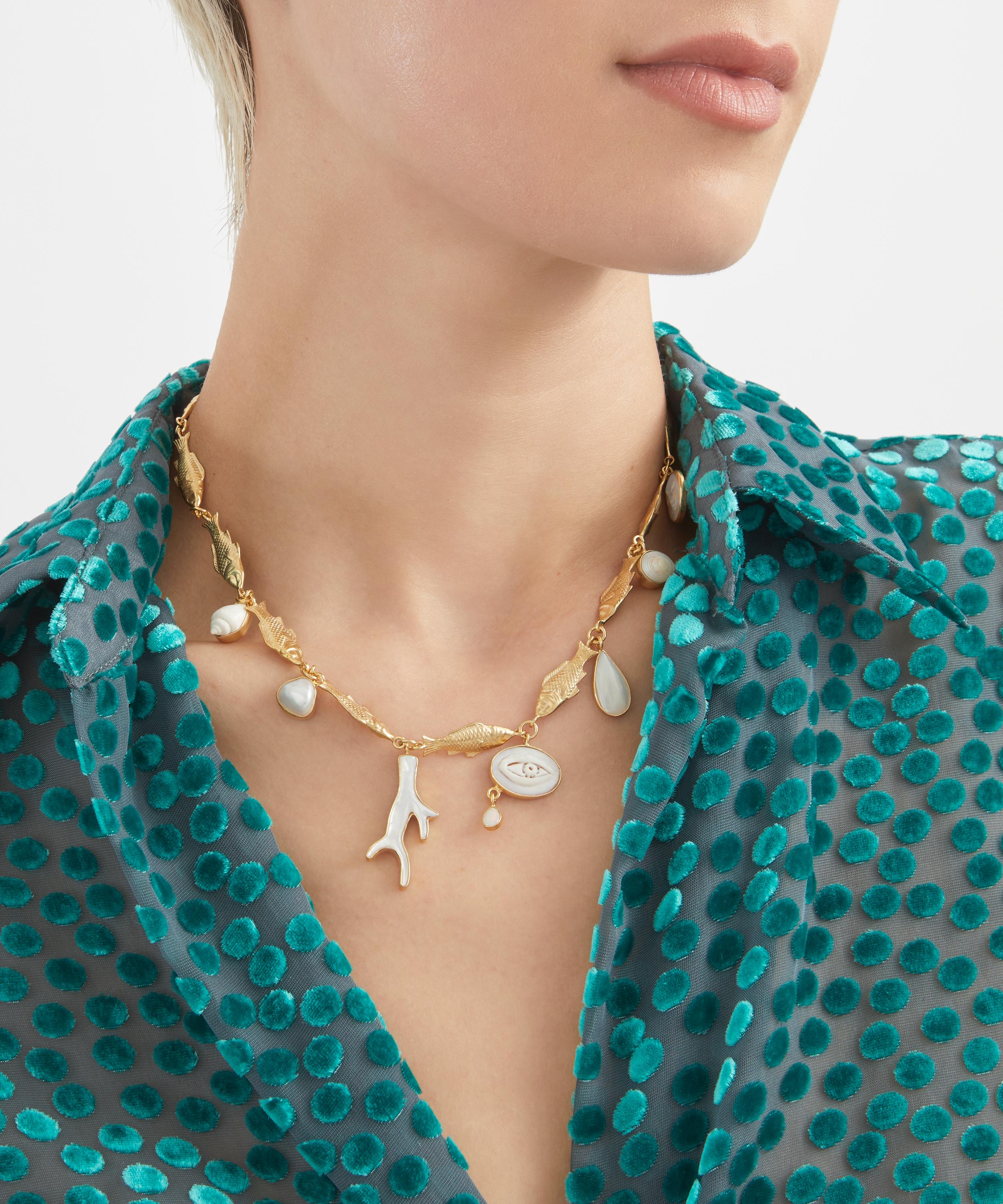 A signature style from Grainne Morton, this necklace offers a whimsical, dreamy addition to your daily line-up. Handmade in Edinburgh from 18ct gold-plated silver, it’s made up of fish-shaped links and seven assorted charms, including cameo, mother of pearl and opal. Finished with a toggle fastening, it boasts an unexpected juxtaposition of vintage and contemporary styles - perfect for adding visual interest to everyday looks.