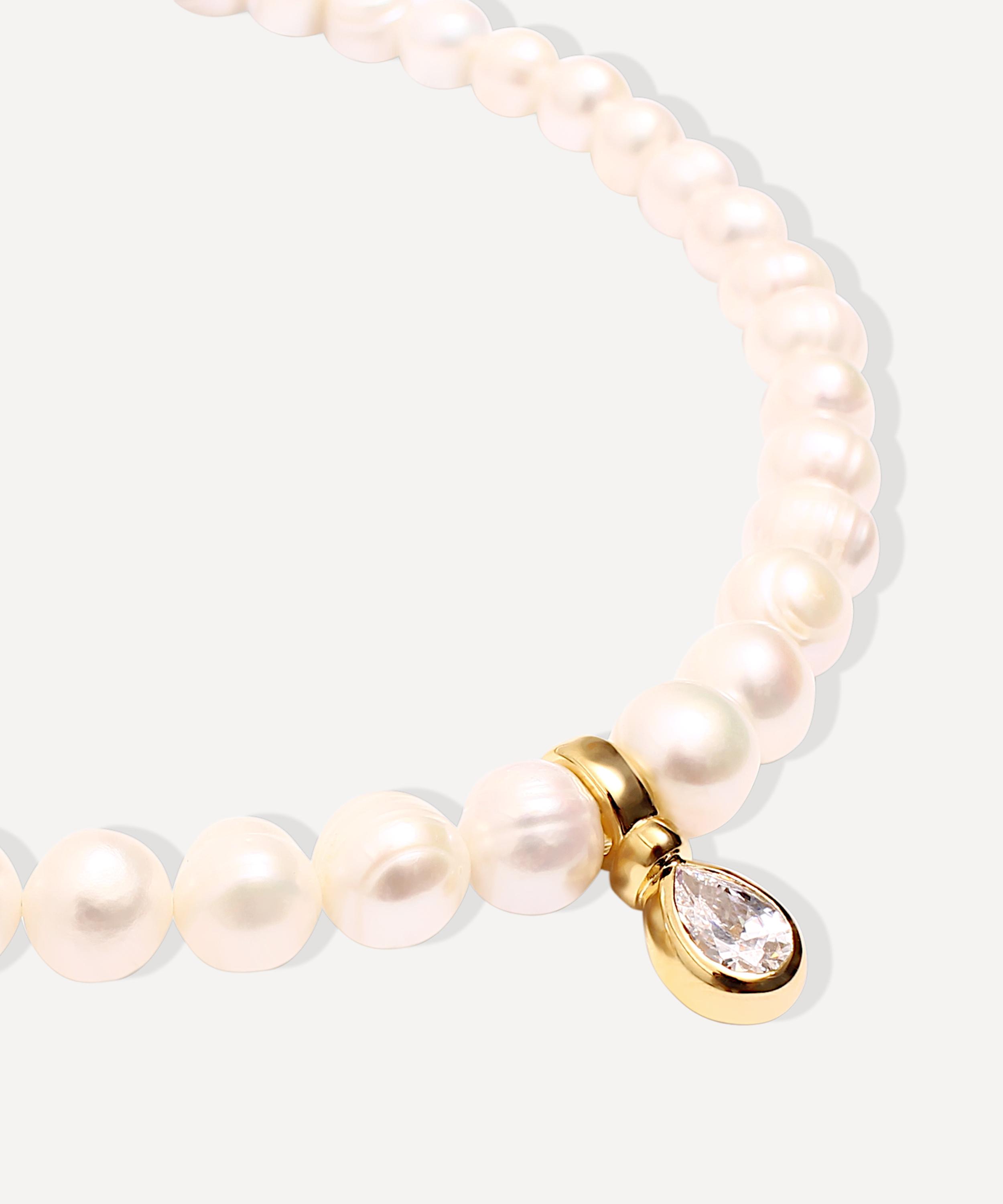 Thoughtfully crafted in London with luminous round freshwater baroque pearls, it is embellished with a signature 18ct gold-plated teardrop pendant, handset with a sparkling cubic zirconia. Lend a timeless charm to your look and wear it solo, or pair it with matching earrings.