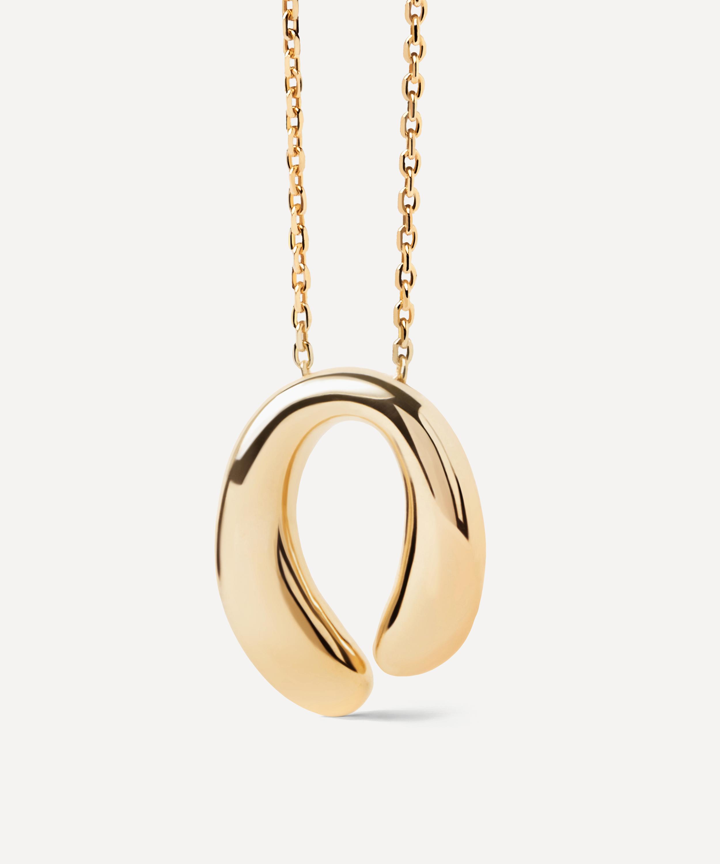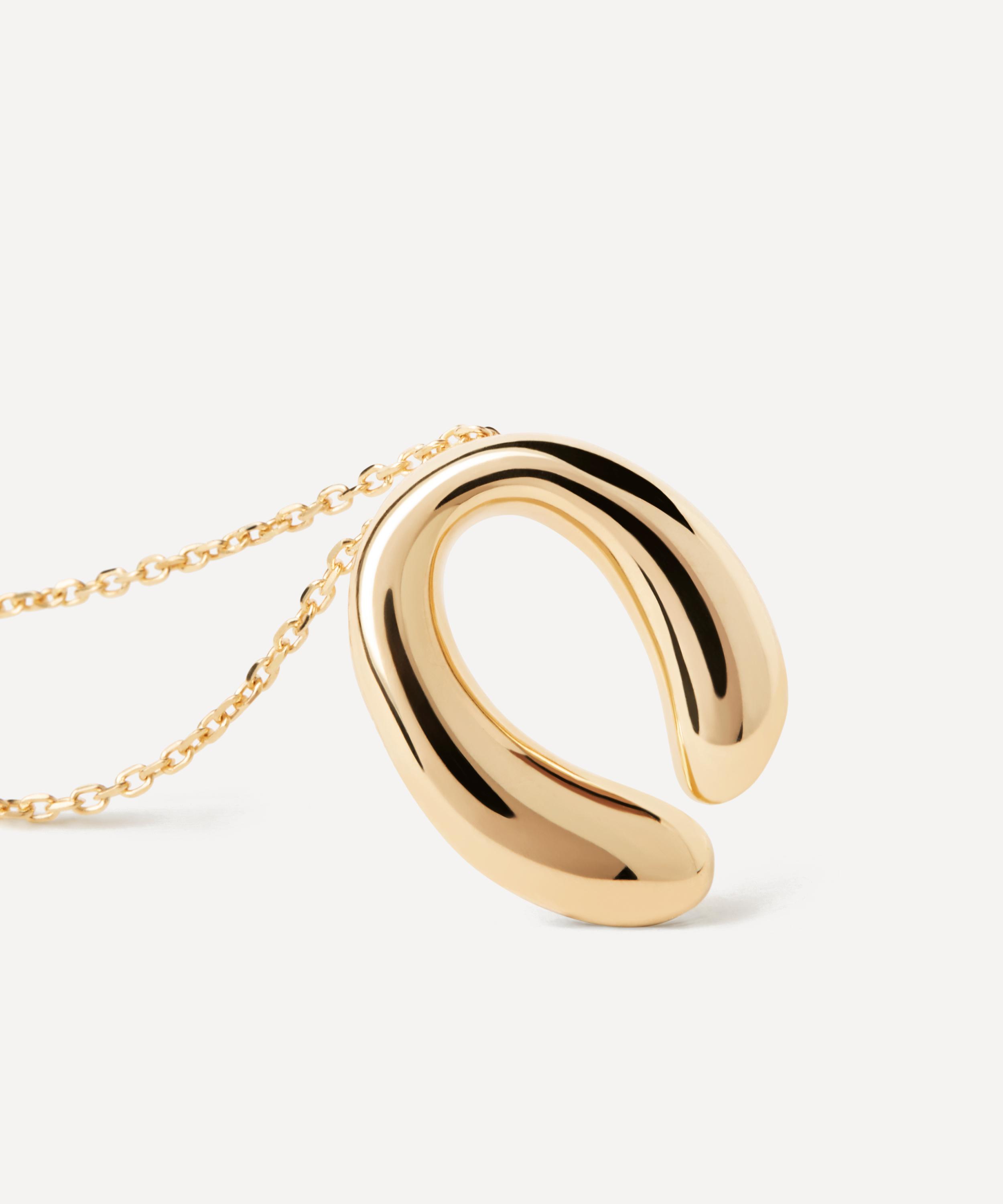 The Helix pendant necklace from PDPAOLA is set to seamlessly elevate your attire, day-and-night. Fashioned from 18ct gold-plated silver, it features a delicate chain adorned with a curved drop pendant. Style it solo, or pair it with the matching Helix hoop earrings.