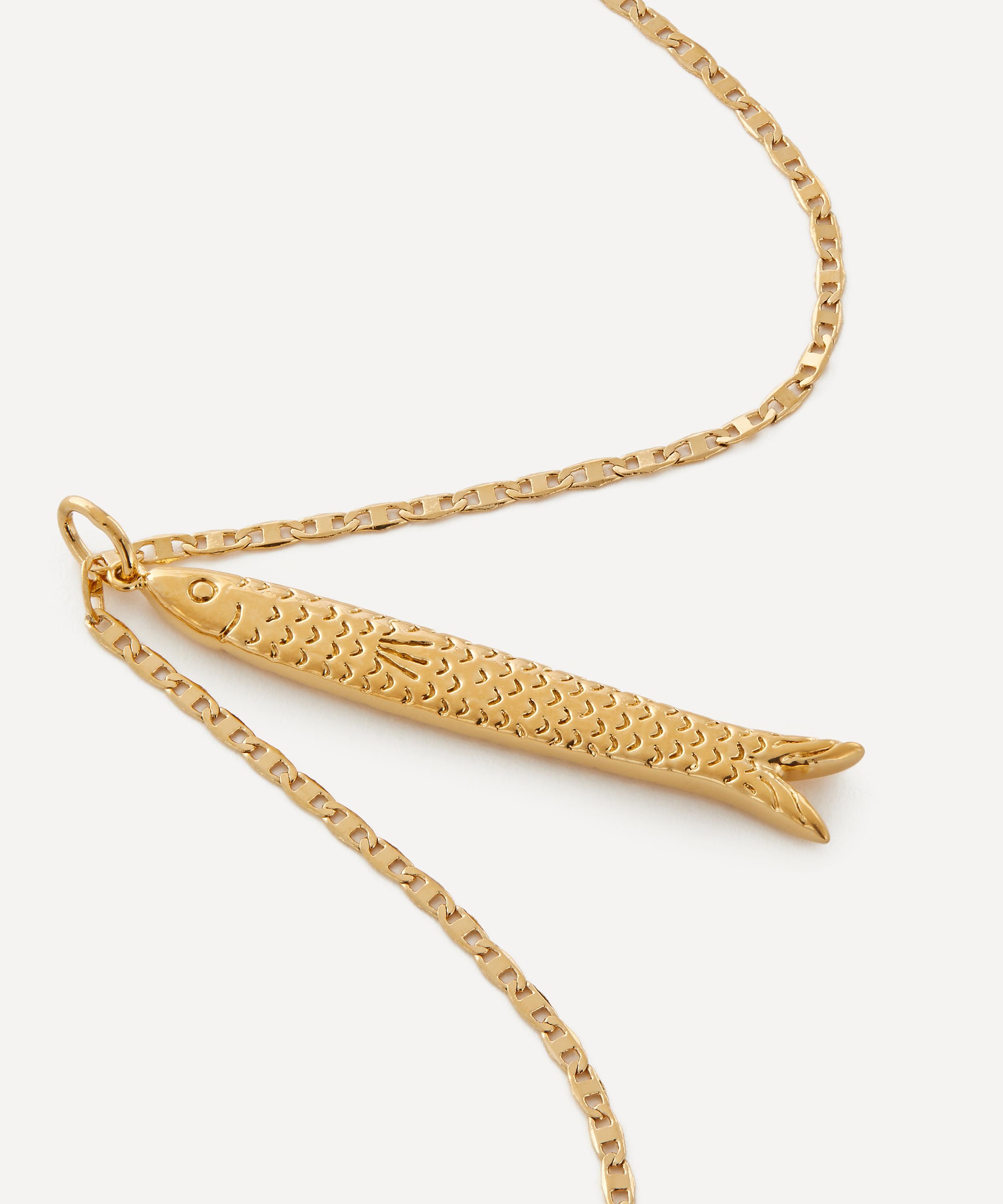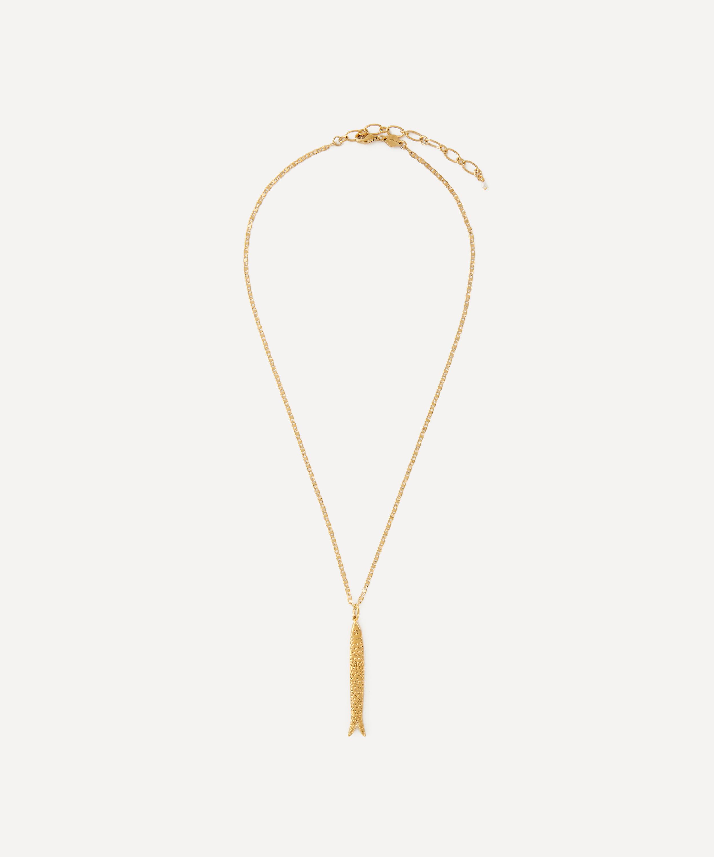 Add a touch of boho glamour to your look with the Hippie Fish pendant necklace from Anni Lu. Handcrafted from 18ct gold-plated brass, it features an elegant anchor chain and a fish pendant, subtly adorned with ocean-inspired textures – a symbol of good fortune and harmony. Style it solo or stacked.