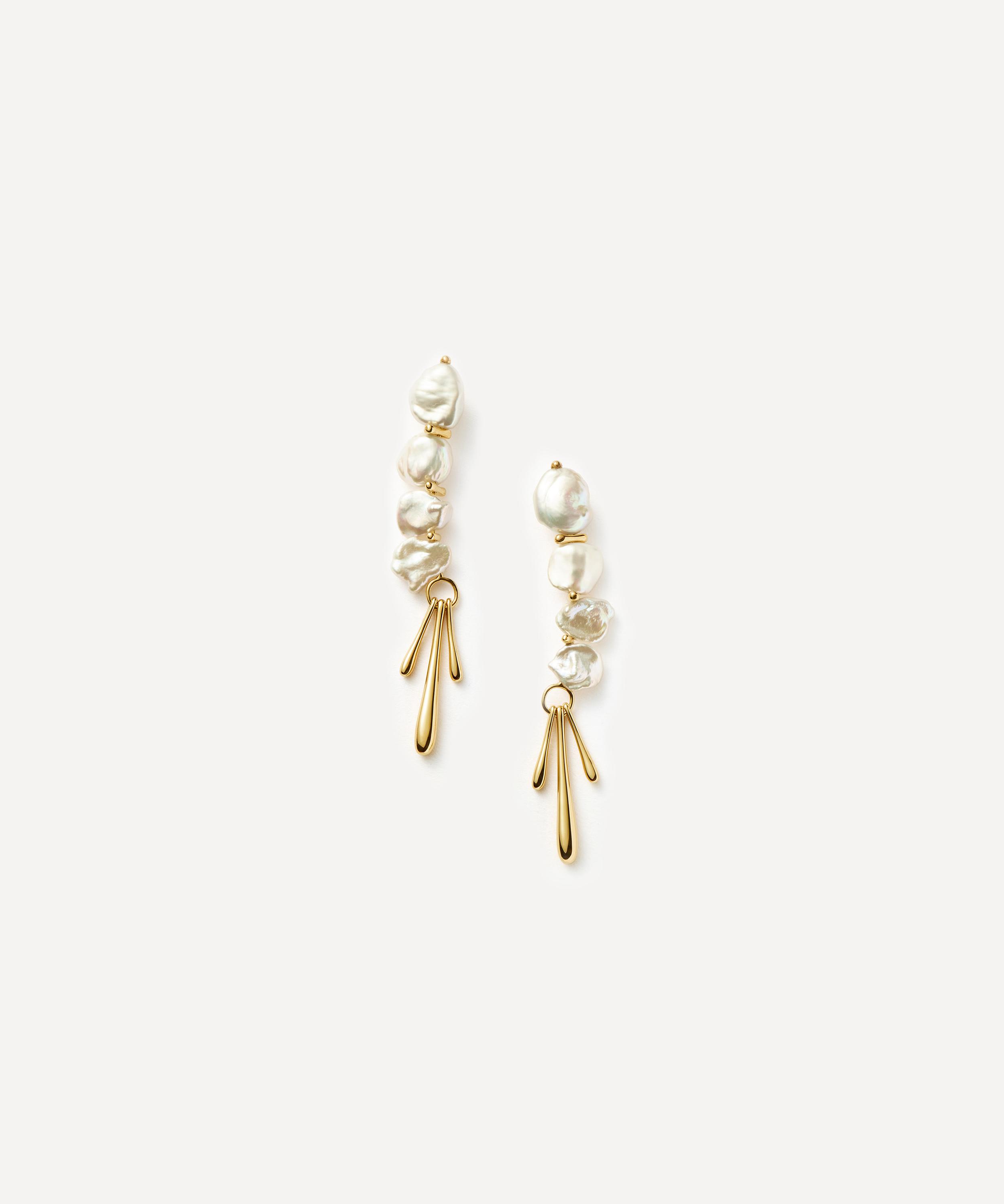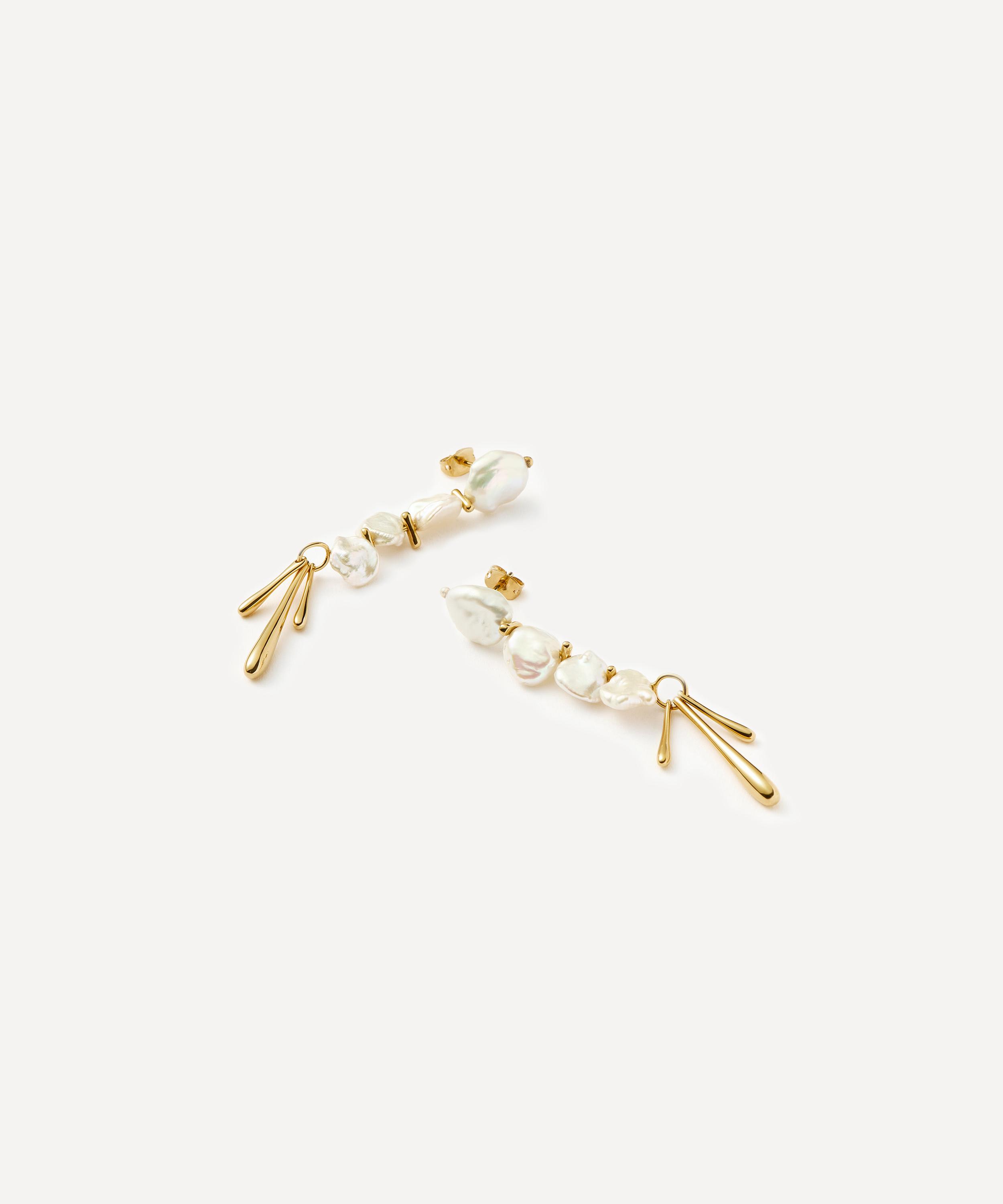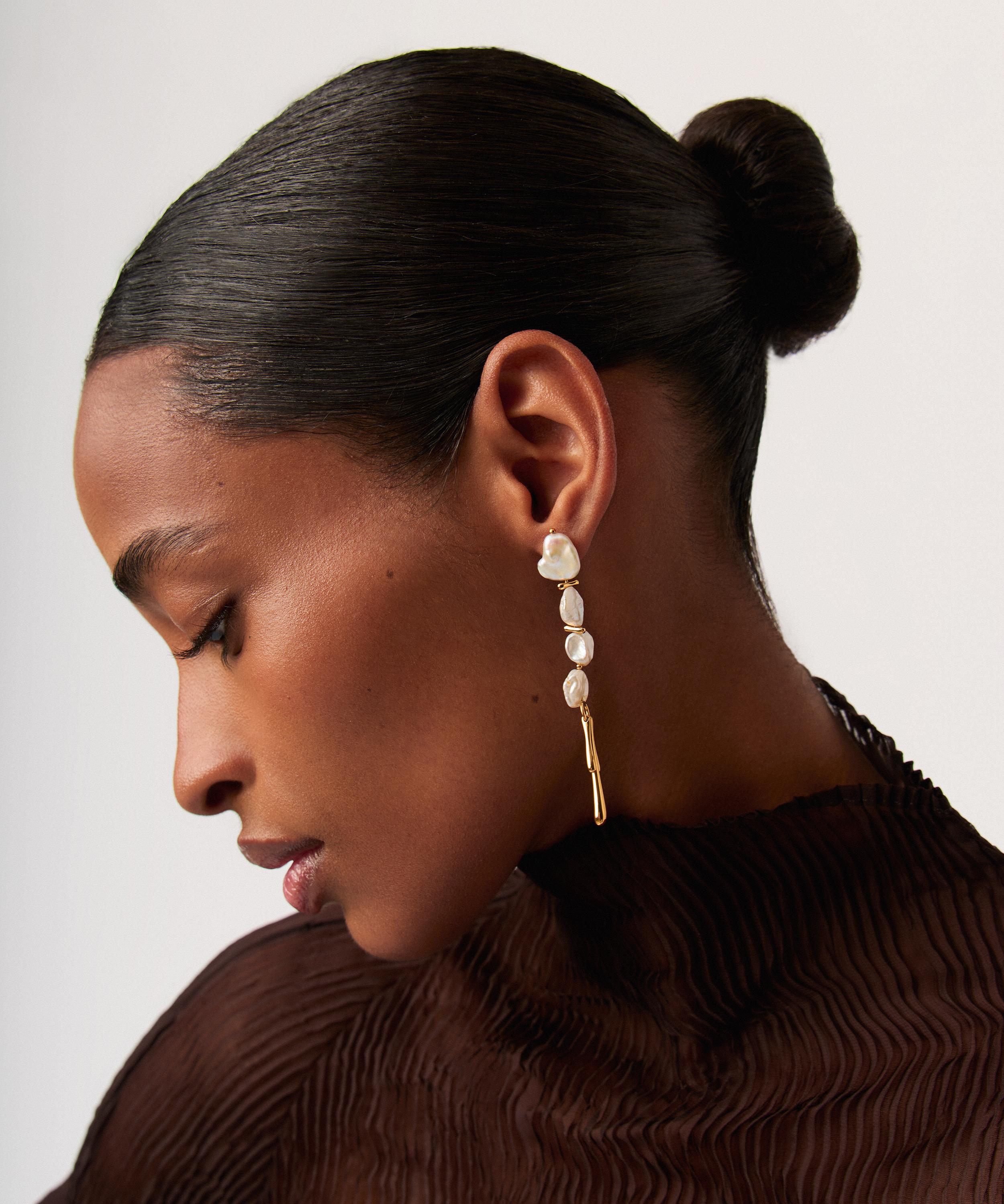 Make a style statement and elevate your outfit with these drop earrings from Missoma. Crafted from 18ct gold-plated brass, each earring features four stacked Keshi pearls and organic drop detailing – offering a reimagined take on classic pearl earrings. Style this bold pair solo, or team with small hoops and studs for a curated ear stack.