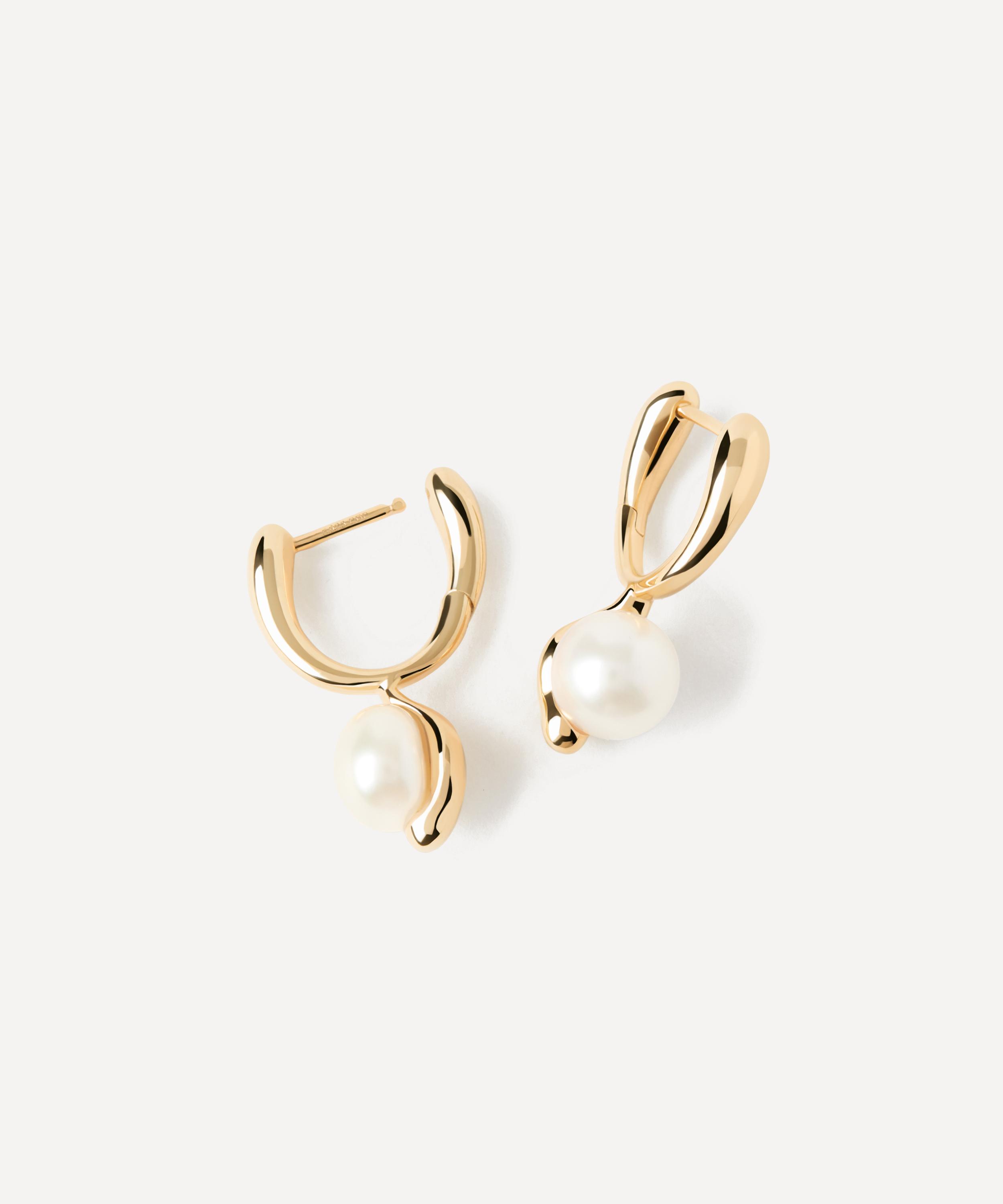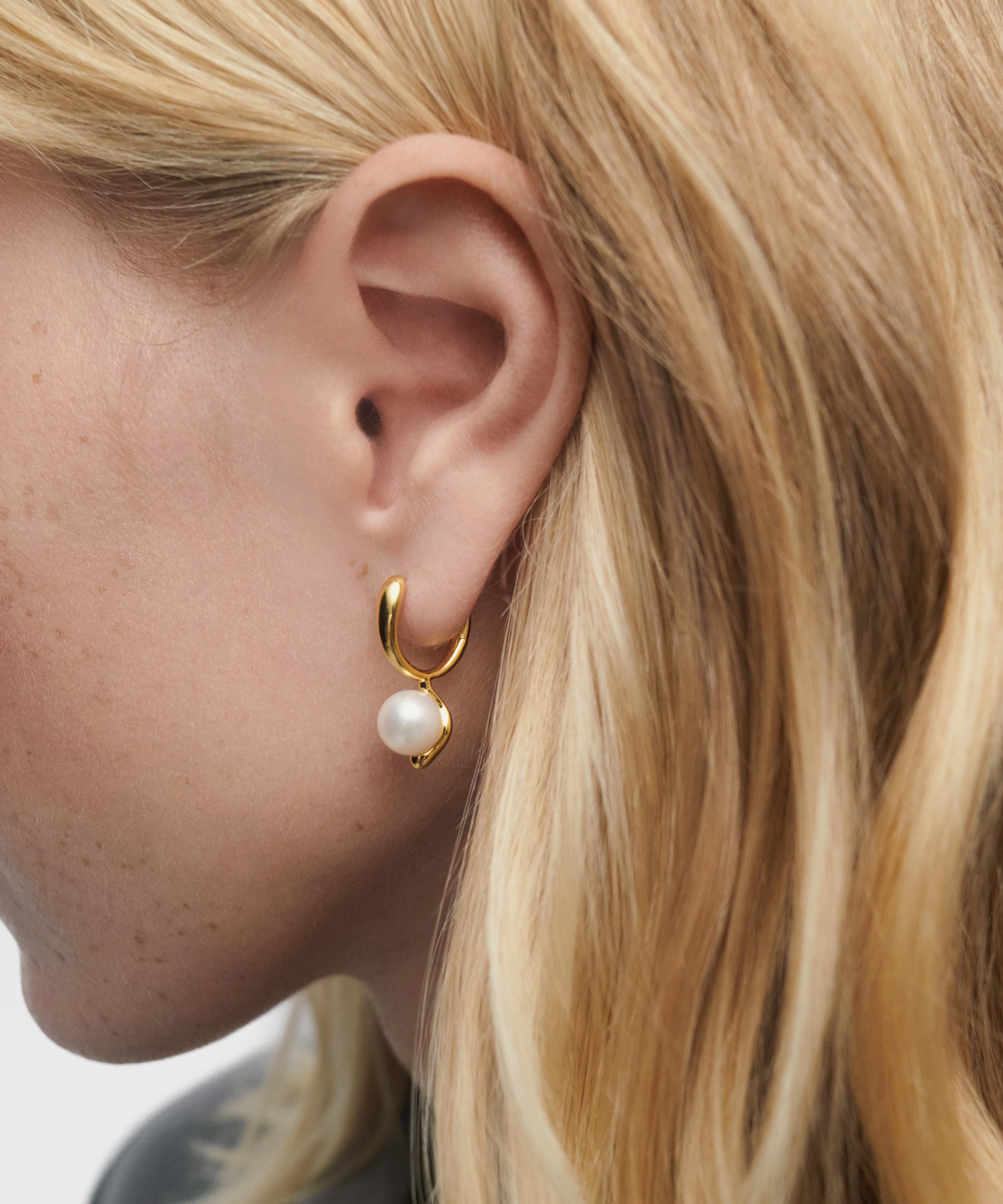 The La Perla hoop earrings from PDPAOLA are set to seamlessly elevate your attire, day-and-night. Fashioned from 18ct gold-plated silver, each hoop features a tapered hoop adorned with a curved, sweeping drop cradling a freshwater pearl. Style them solo or incorporate into a curated ear stack with a mix of studs and hoops.