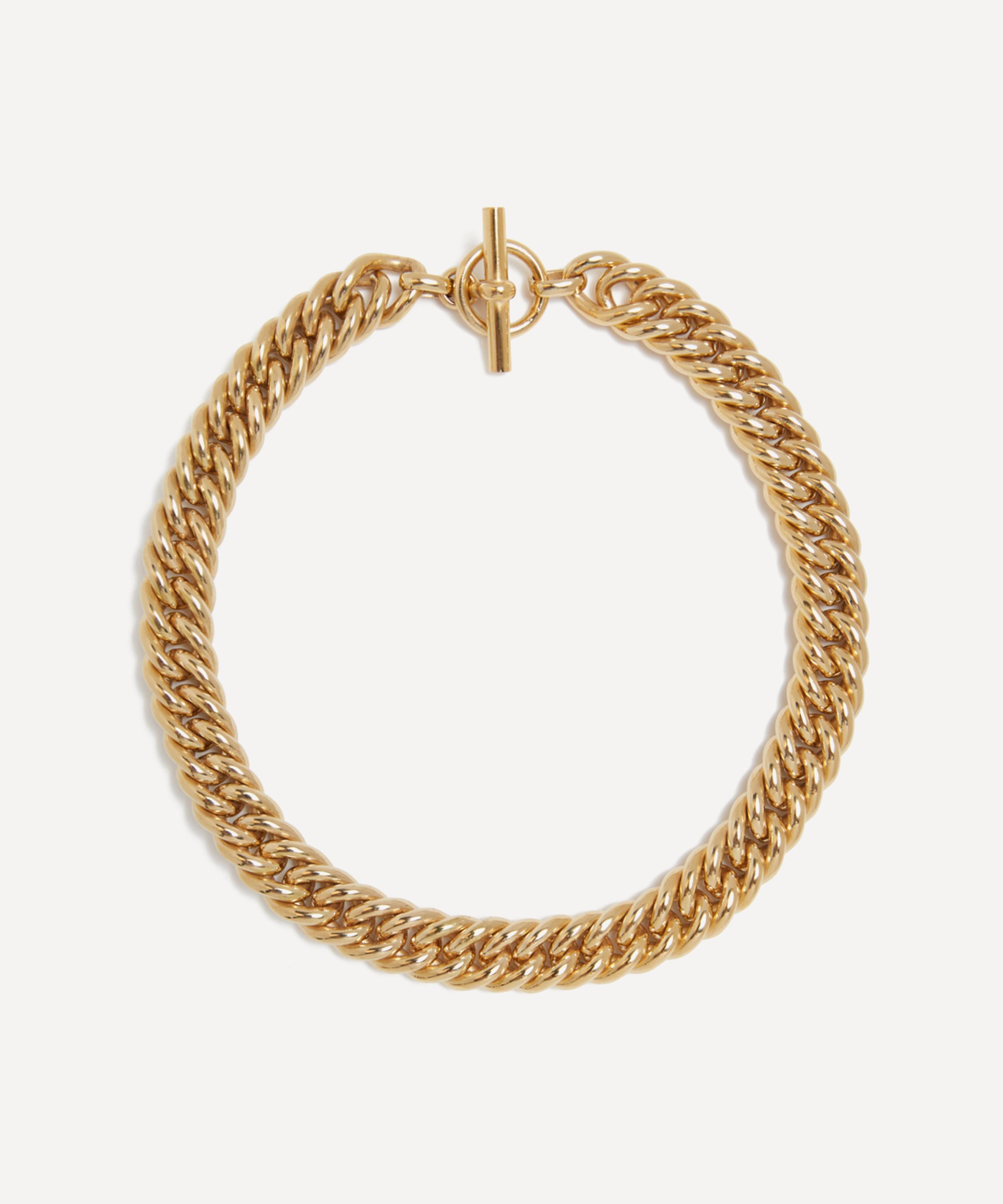 Effortlessly transform everyday outfits with this stackable chain necklace from Tilly Sveaas. Crafted from 18ct gold-plated brass, it features a chunky curb chain with a large T-bar toggle closure. Offering visual interest to your look, this piece strikes a balance between contemporary design and ageless staples to serve as a building block in your jewellery collection.