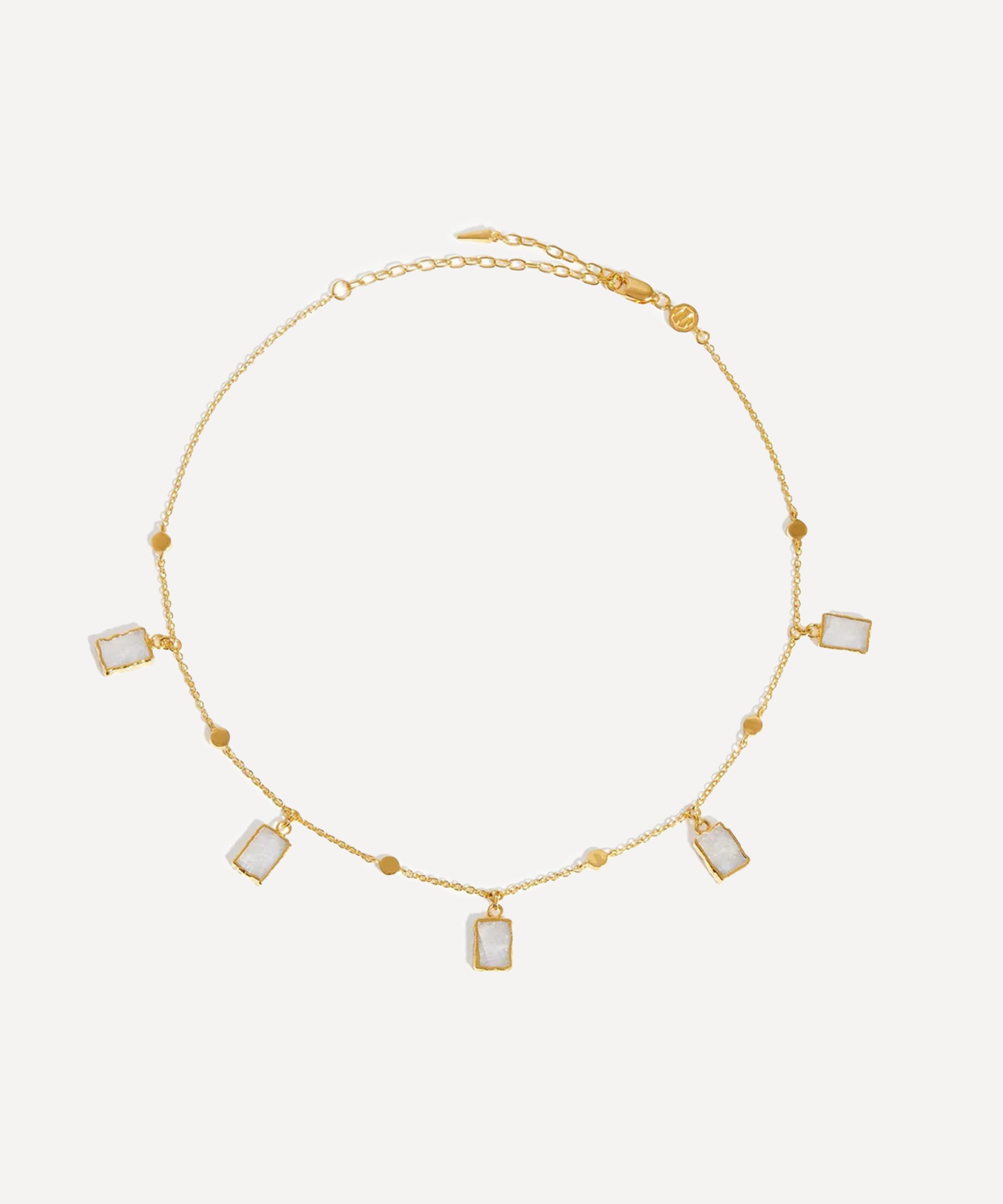 Make every day dressing feel effortless with this subtly elevating choker necklace from Missoma. Crafted from 18ct gold-plated brass, it features a bobble-style cable chain, embellished with assorted rainbow moonstone charms. Perfect for any kind of stack curation, team it with other gold necklaces or the matching Lena Charm Bracelet.