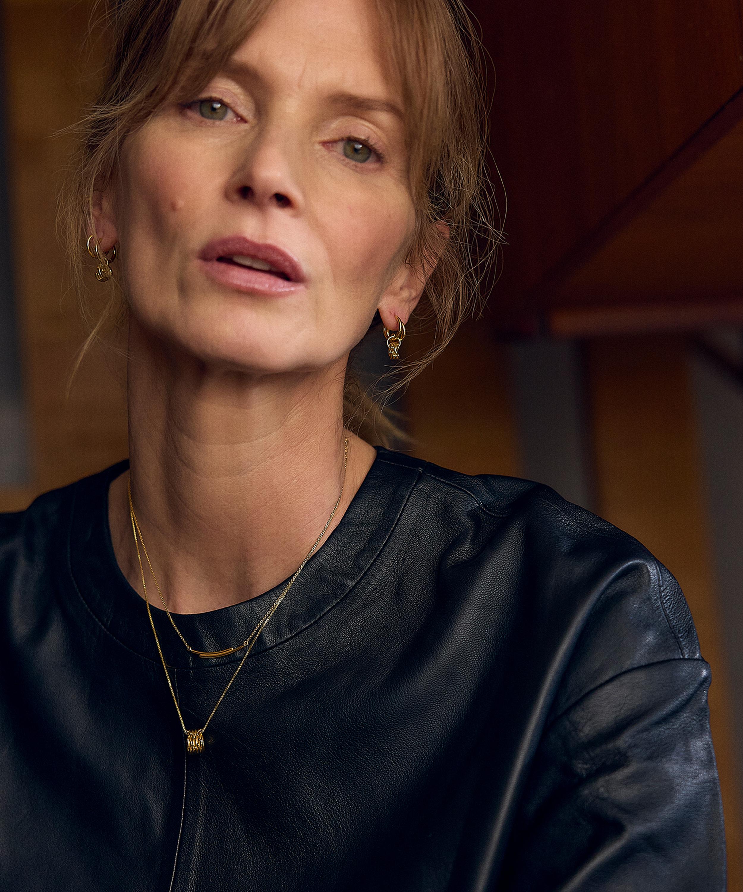 Created to honour the journey of being a woman, it’s expertly handcrafted from 18ct gold-plated silver, featuring a circular pendant inspired by French sculptor Bernar Venet, it’s embellished with Art-Deco-inspired curves – a representation of the many facets of womanhood. Finished with a diamond cut fine box chain, style yours solo, add it to a curated stack or team with matching pieces from the collection for a co-ordinating look.