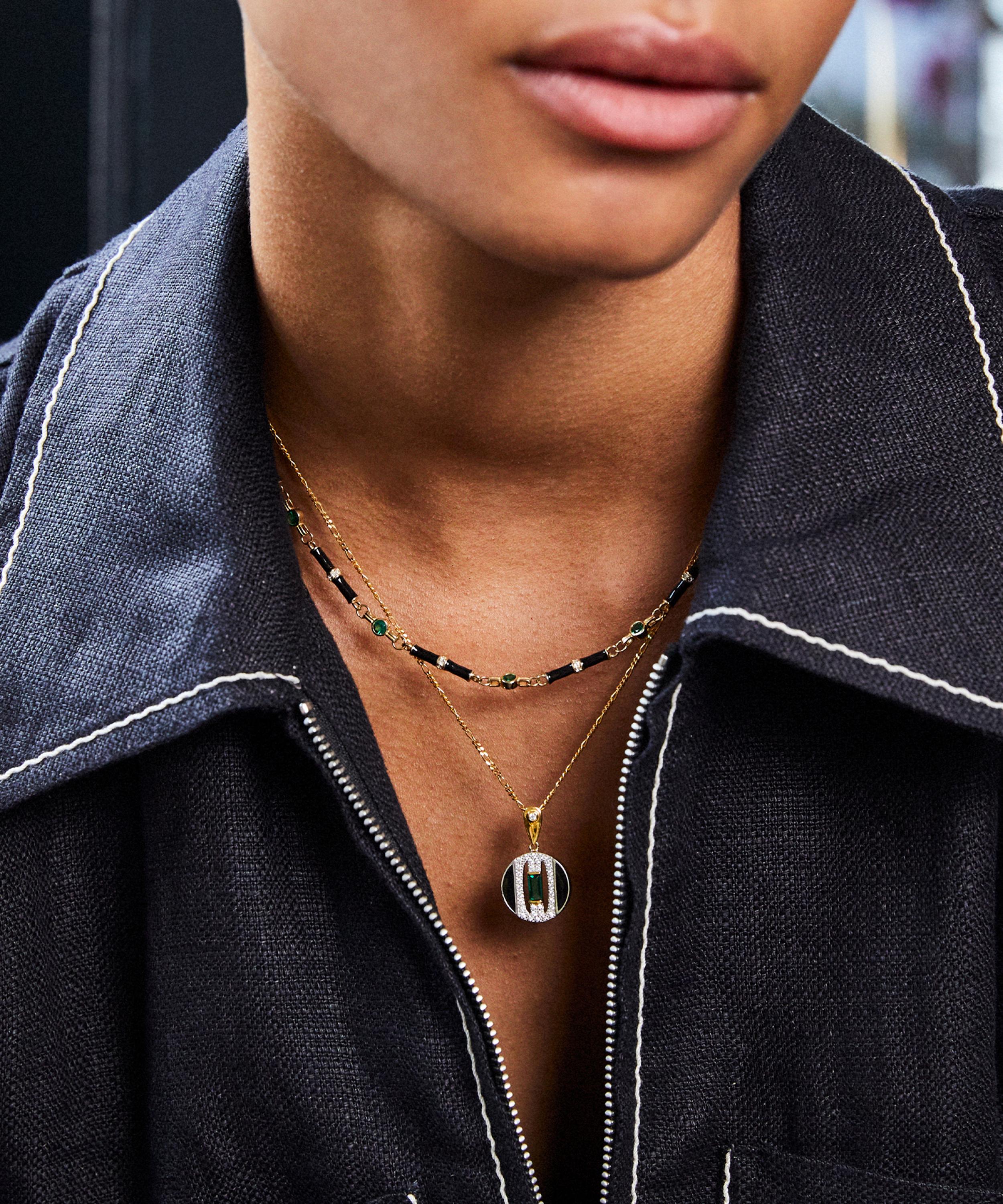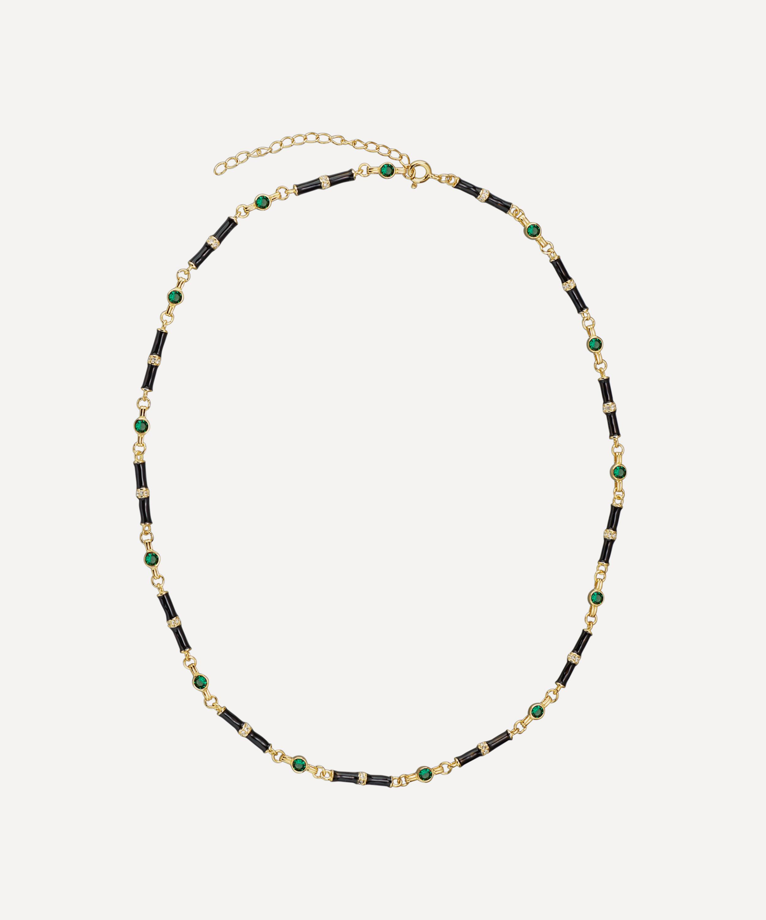 18ct Gold-Plated Marlowe Black Enamel and Green Stone Necklace