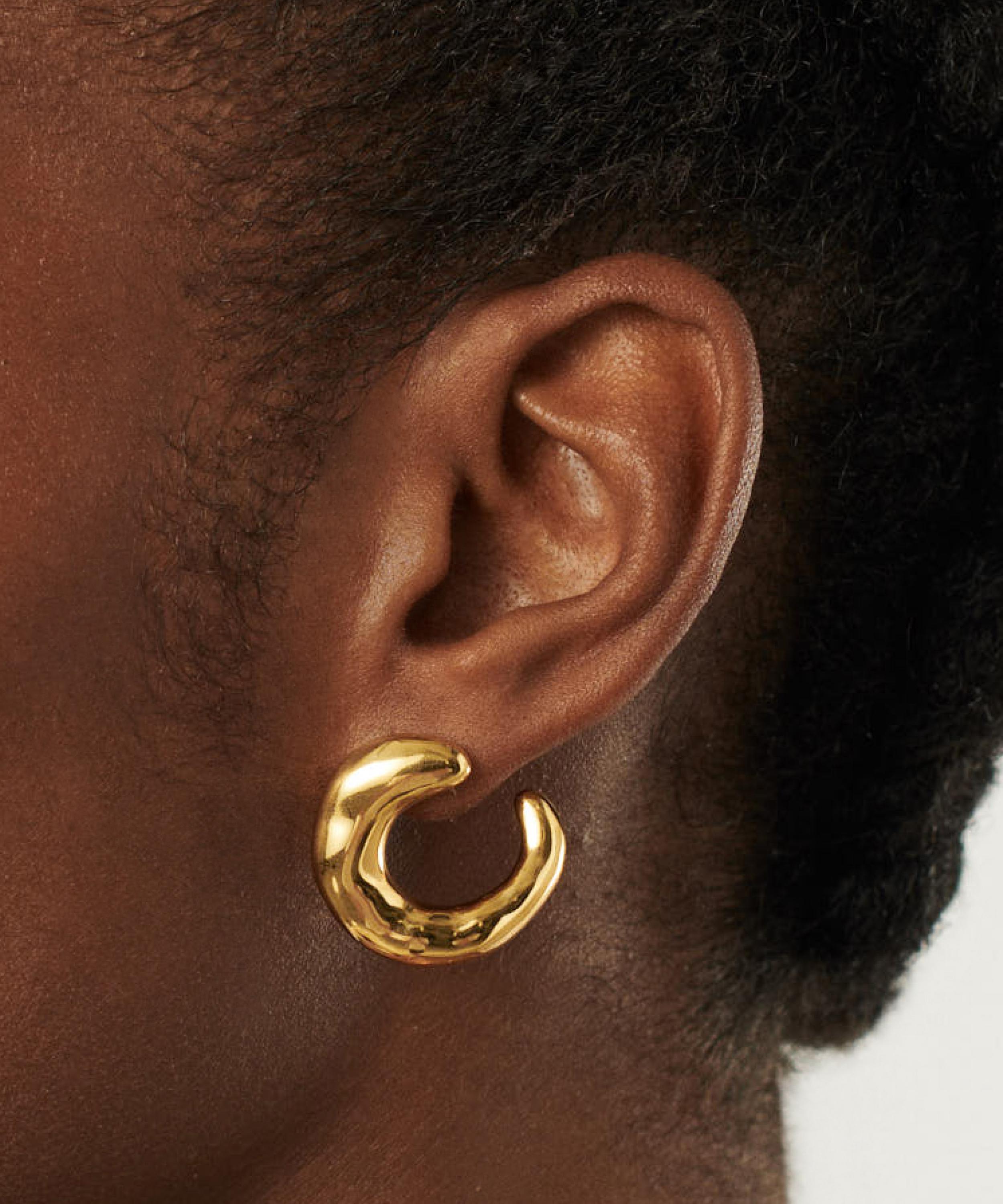 Give your go-to collection an update with these sculptural stud earrings from Missoma. Crafted from 18ct gold-plated brass, each earring is characterised by a molten, curved stud that is designed to wrap around the lobe – reminiscent of a hoop. Beautifully styled solo, they can also be paired with additional mini hoops and studs for a layered curation.