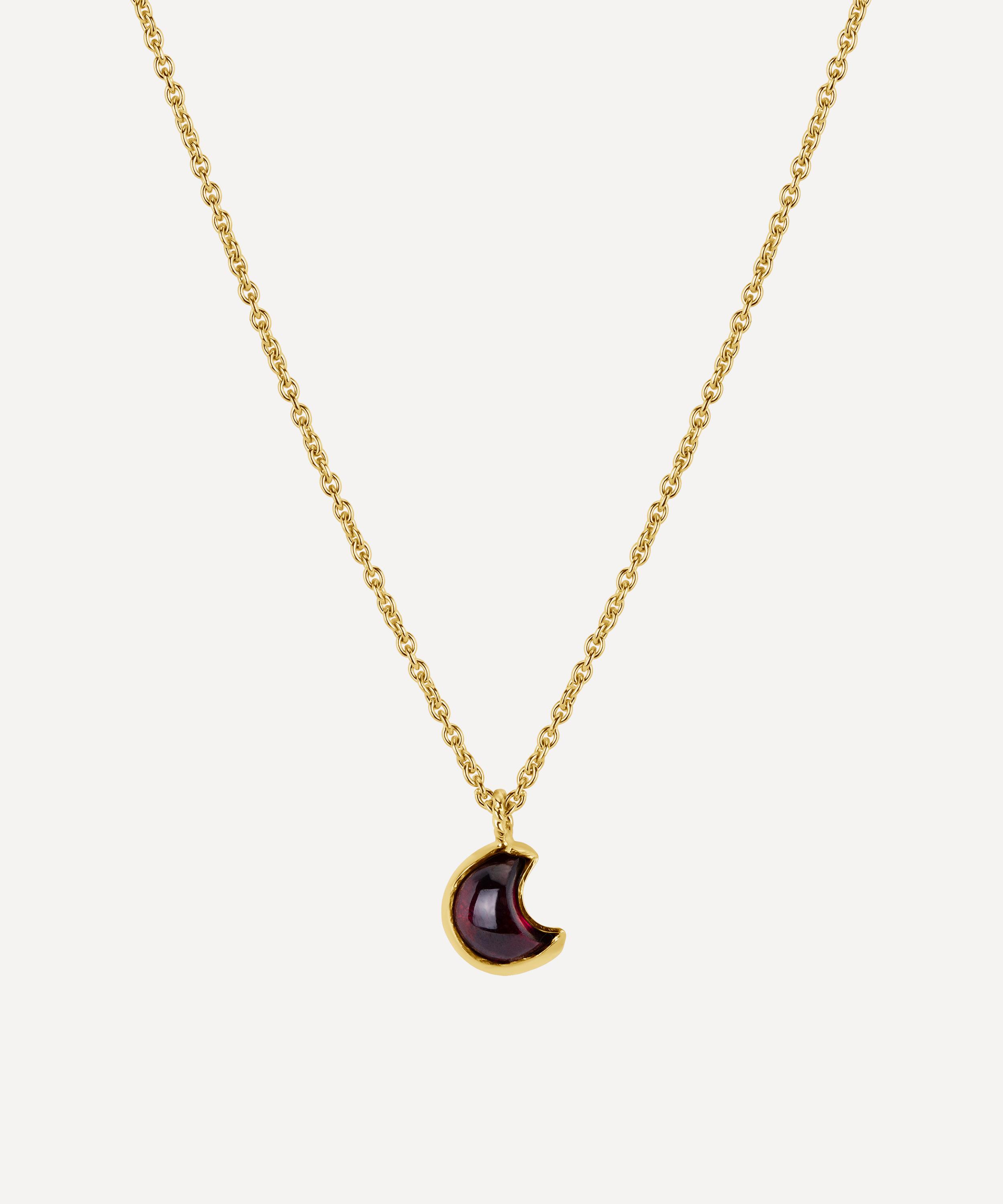 A signature style from Grainne Morton, this pendant necklace offers a whimsical, dreamy addition to your daily line-up. Handmade in Edinburgh from 18ct gold-plated silver, it features a fine cable chain adorned with a vibrant garnet stone, intricately carved in the shape of a crescent moon. Boasting an unexpected juxtaposition of vintage and contemporary styles, it’s perfect for adding visual interest to everyday looks.