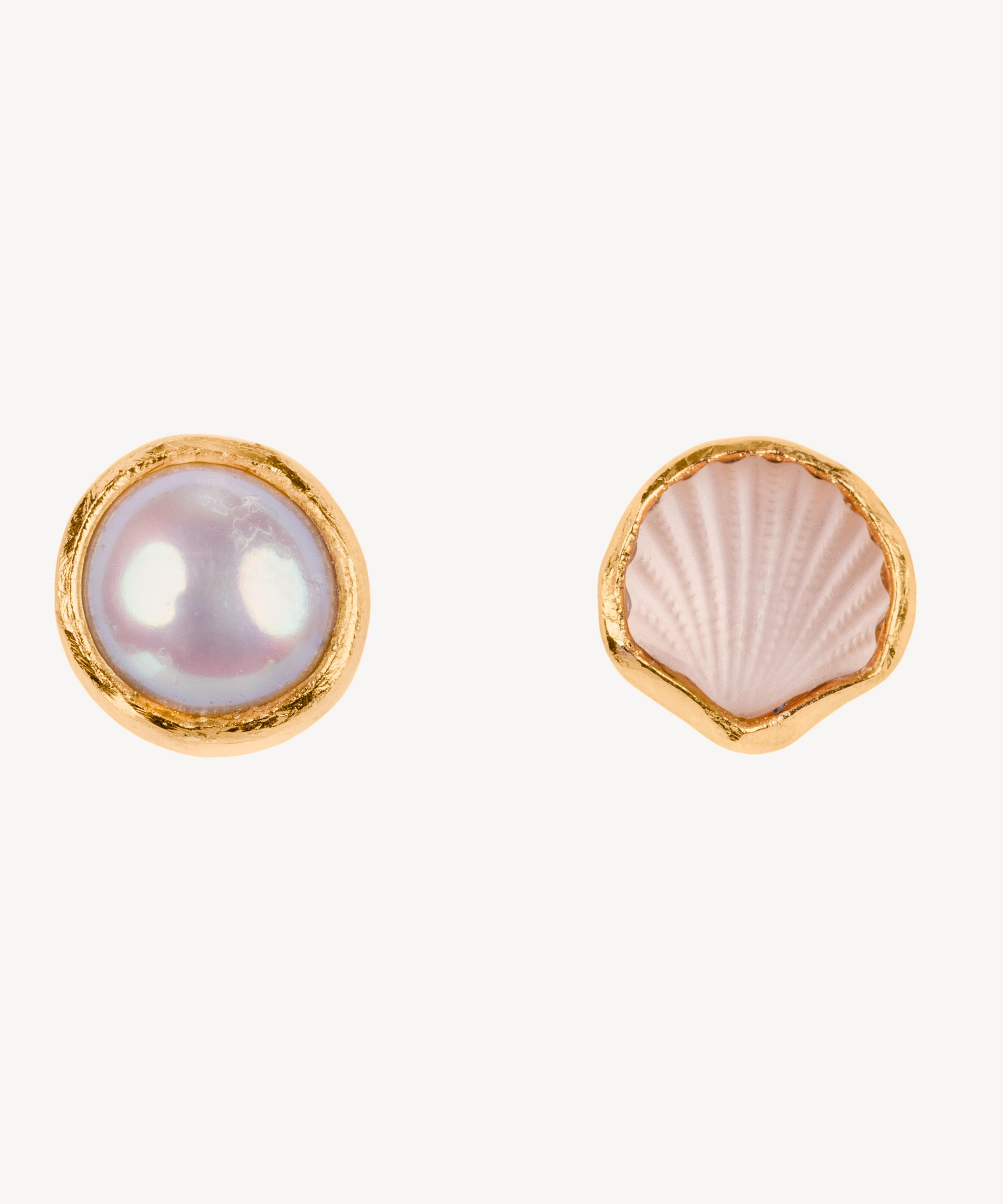 18ct Gold-Plated Pearl And Shell Mismatched Stud Earrings