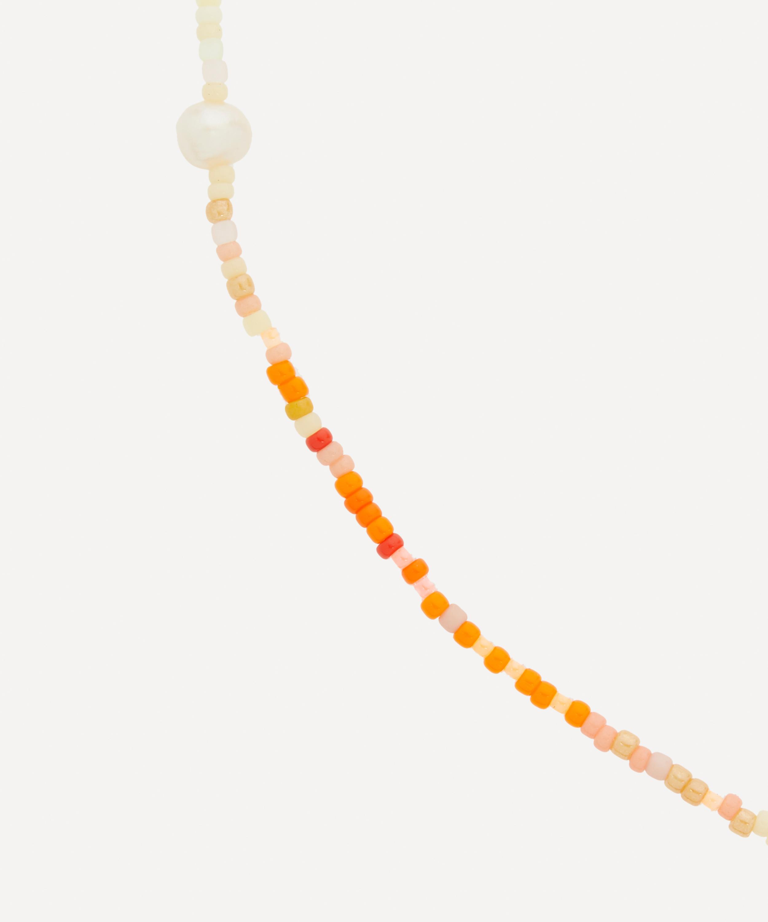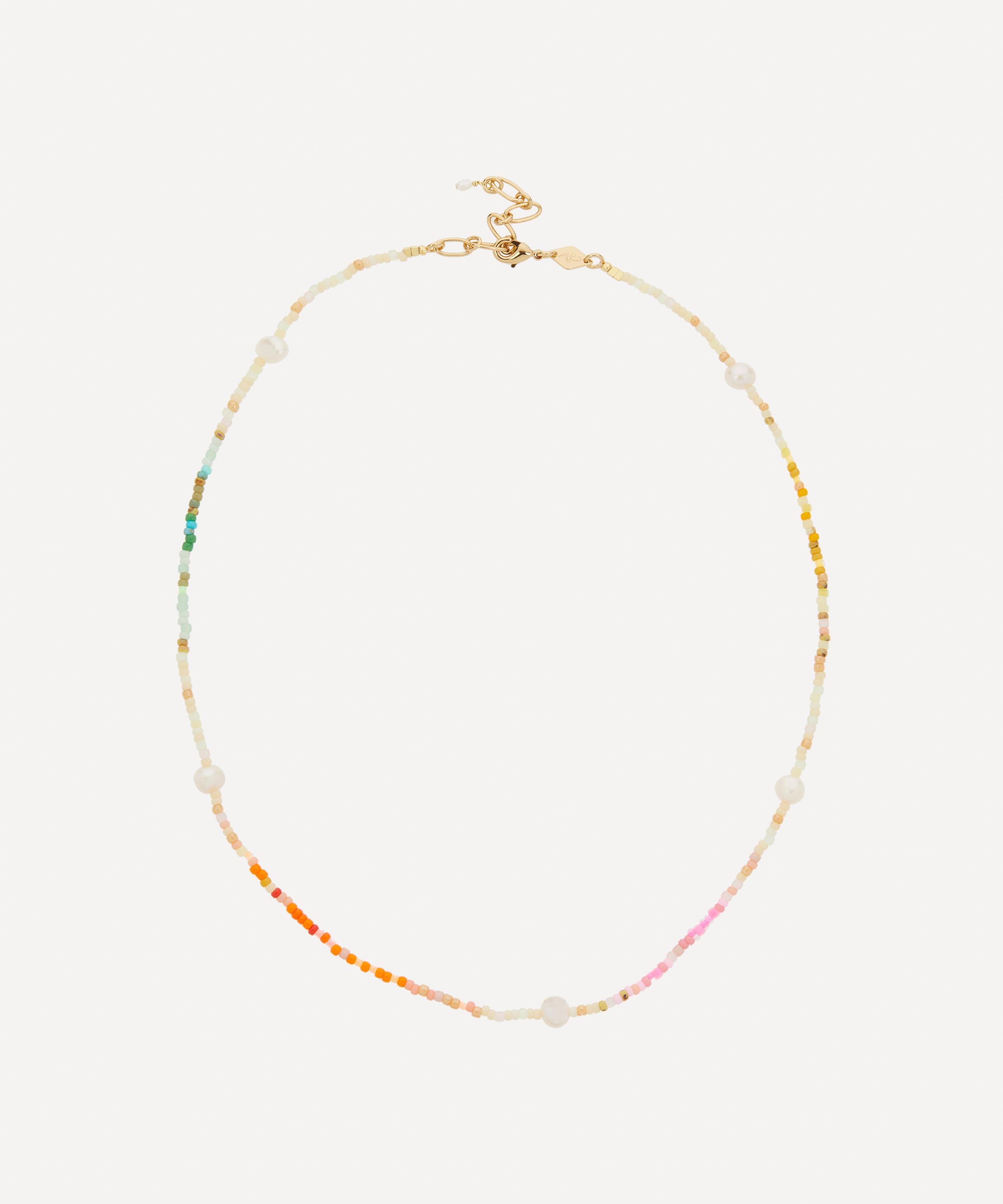 The Rainbow Nomad bead necklace boasts a signature design from Anni Lu’s Pacifico collection - a tribute to glittering and peaceful ocean waves. Handcrafted from 18ct gold-plated brass, this necklace is characterised by a delightful string of multi-coloured glass bead., interspersed with opulent freshwater pearls. Finished with a cultured freshwater rice pearl, try styling it with other pieces from the collection for a vibrant curation.