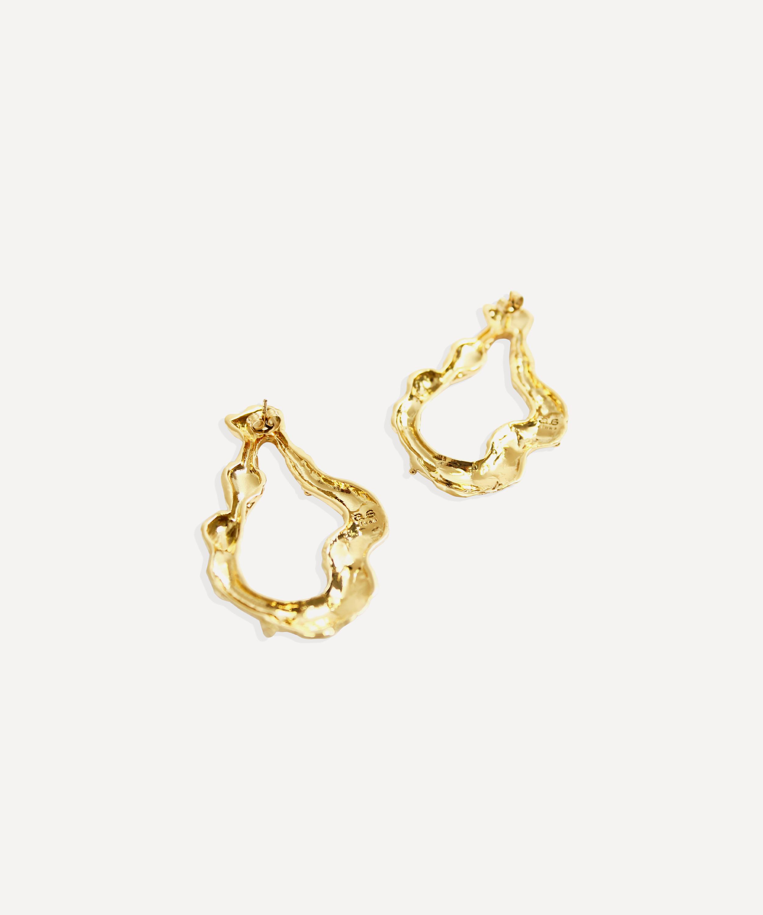 Thoughtfully crafted in London from 18ct gold-plated brass, this distinctive and enduring pair of heirloom earrings feature an irregular silhouette and organic texture embellished with cubic zirconia crystals - offering a timeless yet modern aesthetic with vintage sensibilities. Whether worn as a personal talisman or a statement of confidence, they invite you to embrace your identity with elegance and intention. Style them with the matching Rena Necklace for a co-ordinating look, or pair with other pieces from the brand.