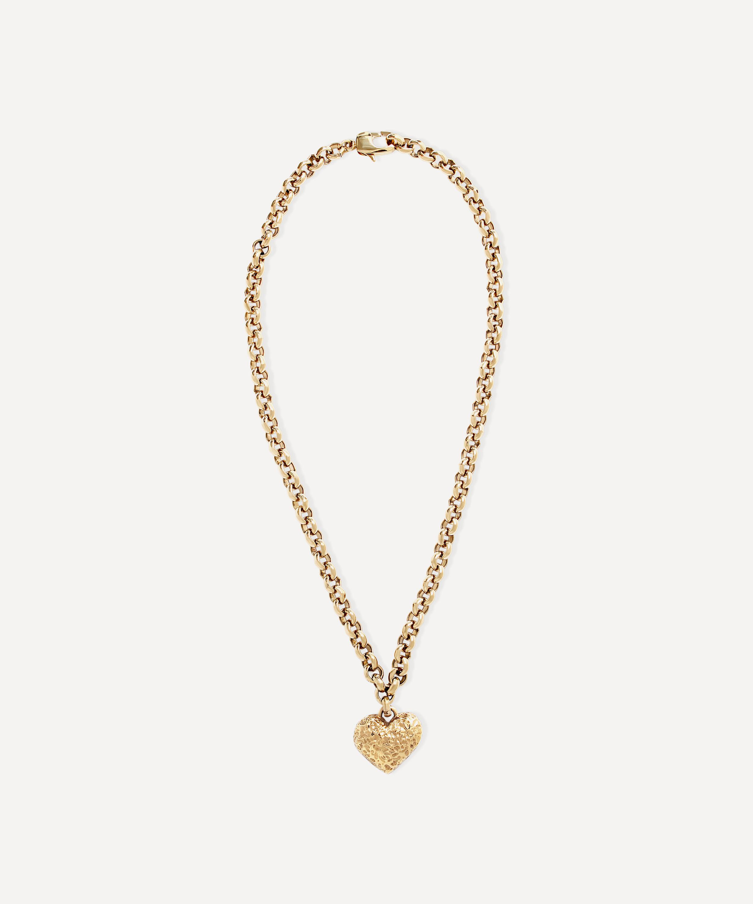 Thoughtfully crafted in London from 18ct gold-plated brass, this distinctive and enduring heirloom features a puffy heart pendant suspended from a chunky rolo chain – offering a timeless yet modern aesthetic with vintage sensibilities. Whether worn as a personal talisman or a statement of confidence, it invites you to embrace your identity with elegance and intention. Style it with the matching Roma Bracelet for a co-ordinating look, or pair it with other pieces from the brand.