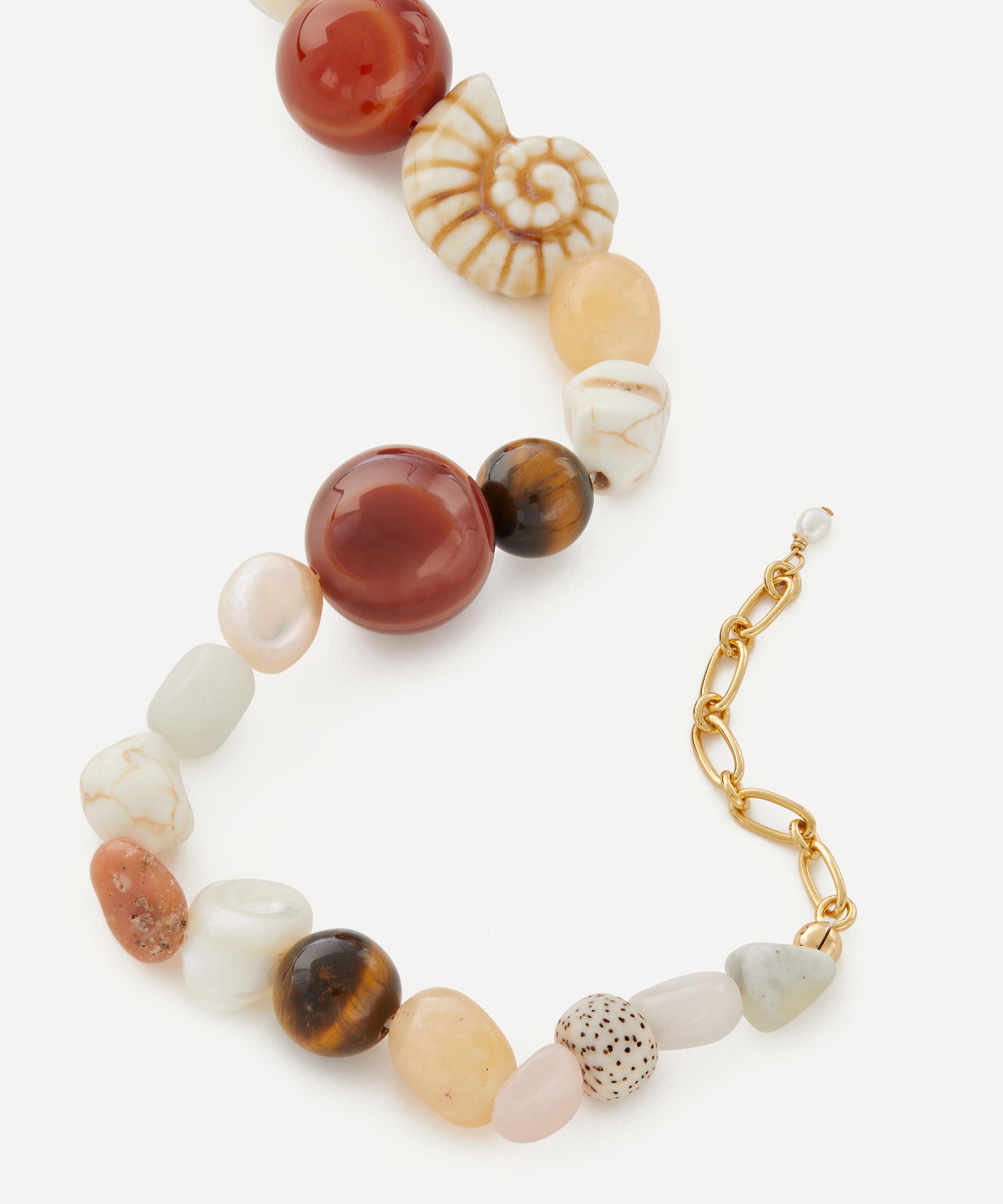 Add a touch of boho glamour to your look with the Seaside bead necklace from Anni Lu. Handcrafted from 18ct gold-plated brass, it features a playful assortment of gemstone beads and freshwater pearl – capturing the joy and carefree spirit of summer. Style it solo or stacked.