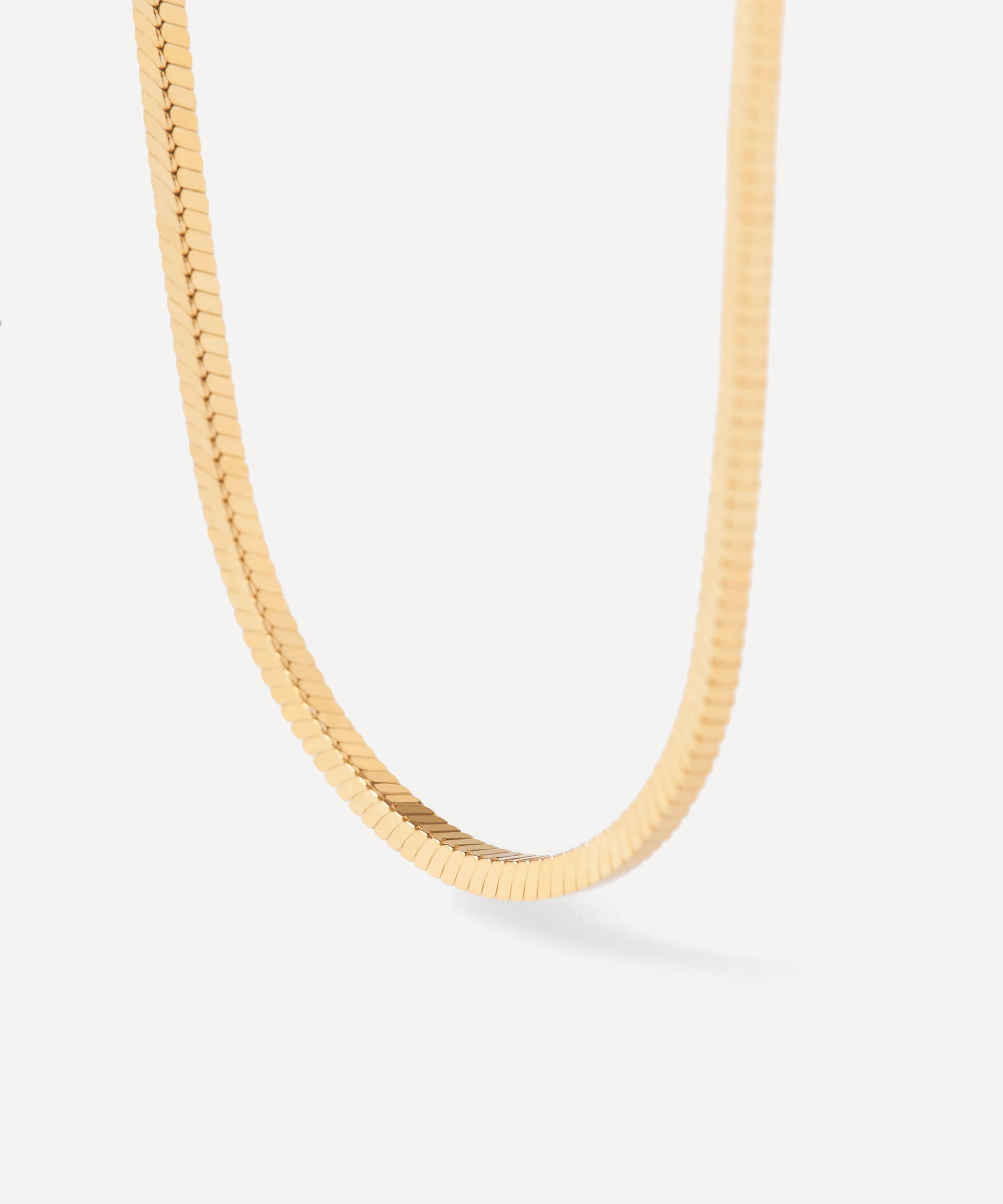 Exuding effortless sophistication, the snake chain necklace from PDPAOLA is set to seamlessly elevate your attire, day-and-night. Fashioned from 18ct gold-plated silver, it features a classic snake chain made out of interlocking round links in a zig-zag pattern. Style it solo, or as part of a stack and let it reflect your individuality.