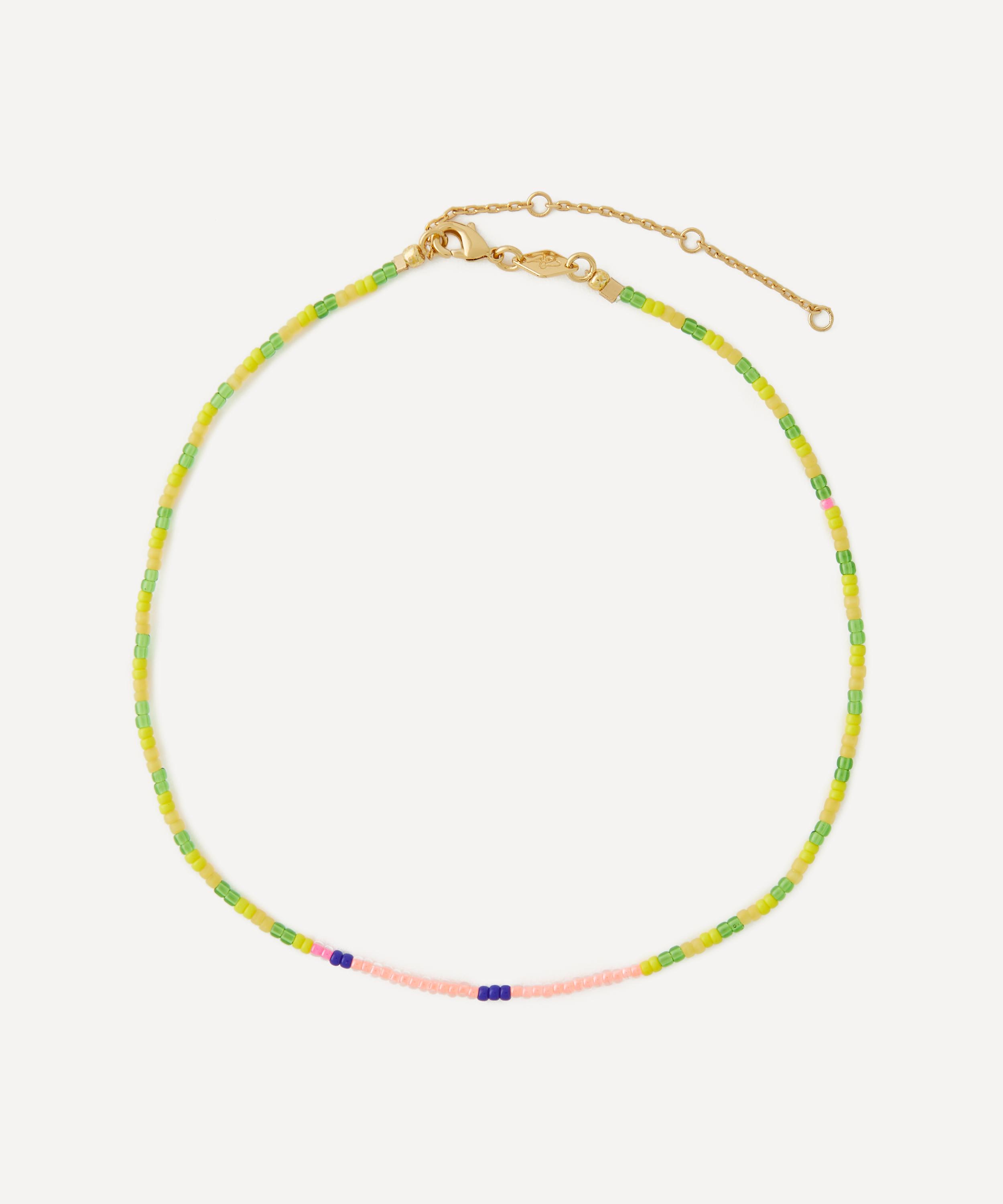 Add a touch of vibrant, boho glamour to your look with the Sun Day choker necklace from Anni Lu. Handcrafted from 18ct gold-plated brass, it features a string of bright, multi-coloured glass beads – inspired by the glow of the sea and the warmth of sunny days. Style it solo or stacked.