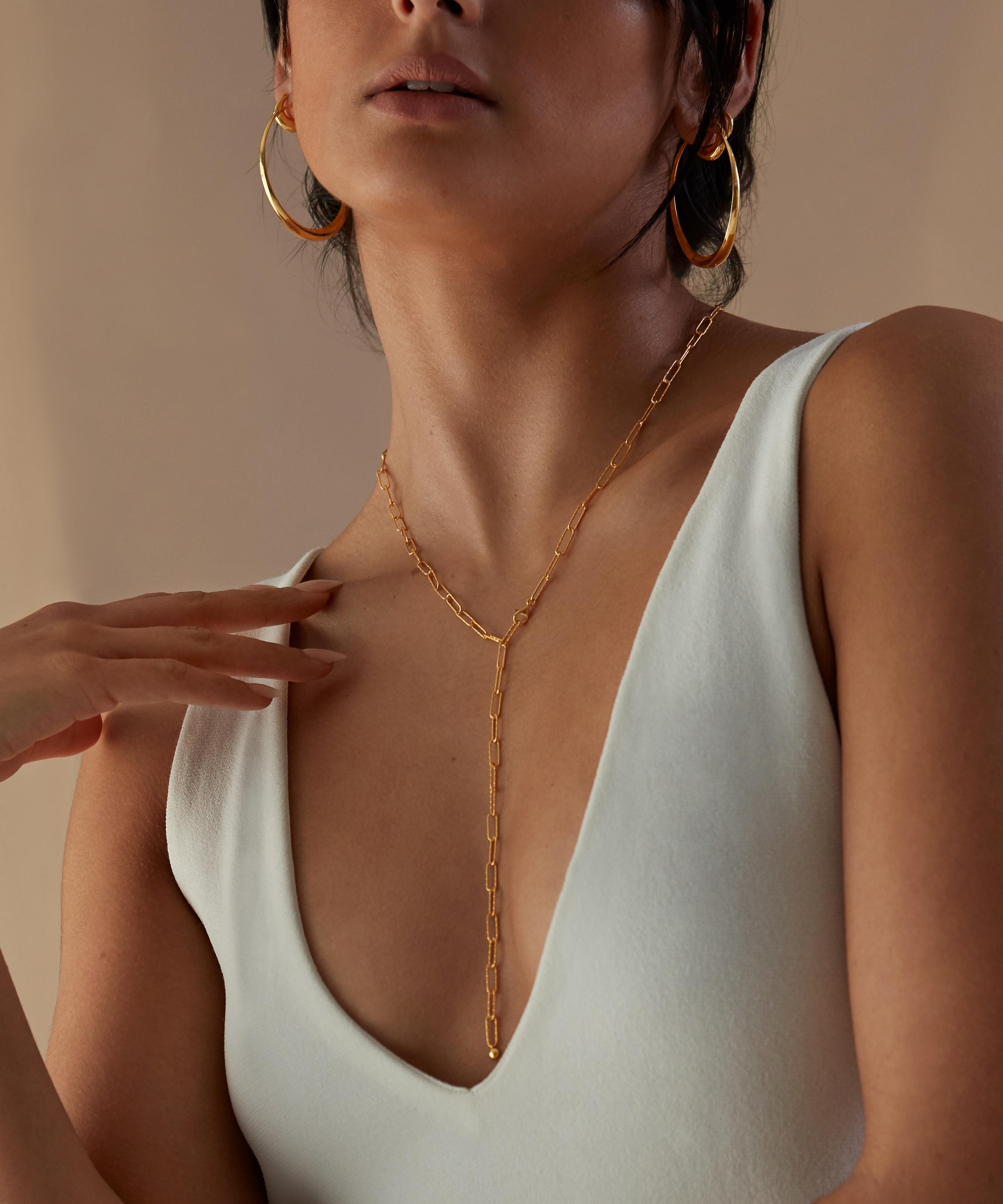 Offering a stripped-back version of the brand’s original Alta Capture designs, this understated necklace features an adjustable, long link chain with a finely textured finish that glitters as it catches the light. Wear it alone for a minimal everyday look, or layer it with other favourites for a trend-led, contemporary curation – try adding a pendant or two for a hint of customisation.