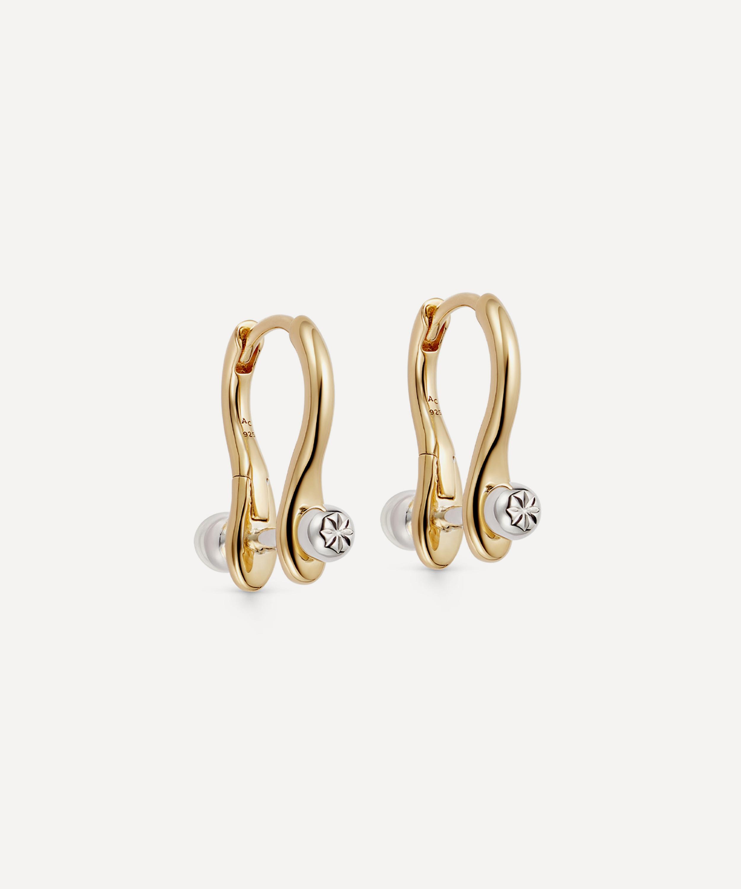 These hoop earrings are part of Astley Clarke's Aurora collection, evoking celestial-inspired designs with an industrial edge. Crafted from sterling silver plated in 18ct gold vermeil, each earring features an industrial-inspired design composed of a simple silver bar with stud details, intersects a gold hoop in an anchor shackle silhouette. Complete with a hinge fastening, style this pair solo, or team with other piercings, hoops and studs.