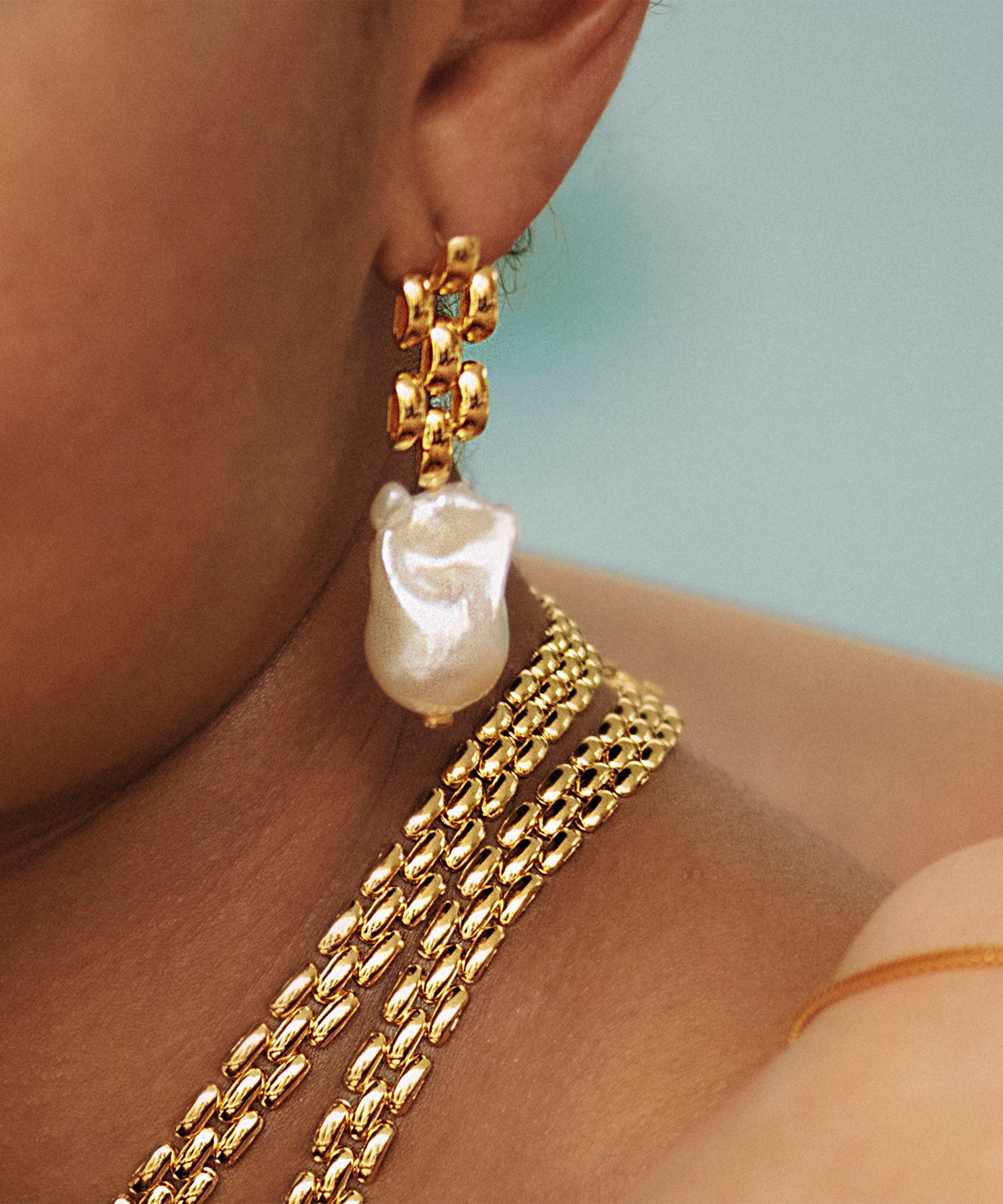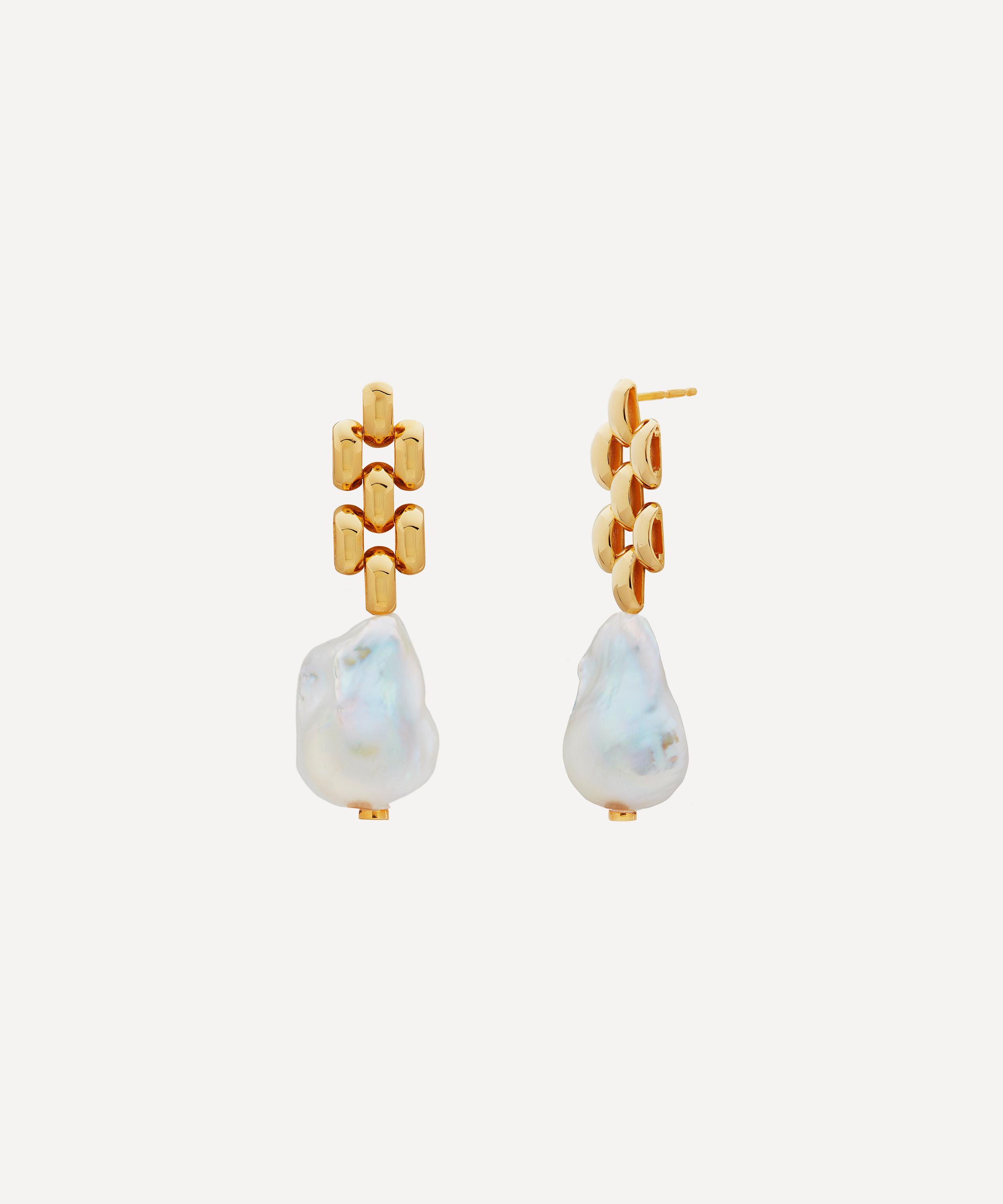 Inspired by the glamour of 1950s Italy, these baroque pearl chain drop earrings from Monica Vinader are crafted from recycled sterling silver plated in 18 carat gold vermeil - proof that taking a more sustainable approach to jewellery does not mean compromising on design or quality. Drawing on classic retro styles, each of these earrings features a chunky multi-link chain drop with a natural baroque pearl falling from the base. Pair them with a coordinating necklace to fully harness the collection’s glamorous, vintage-inspired aesthetic.