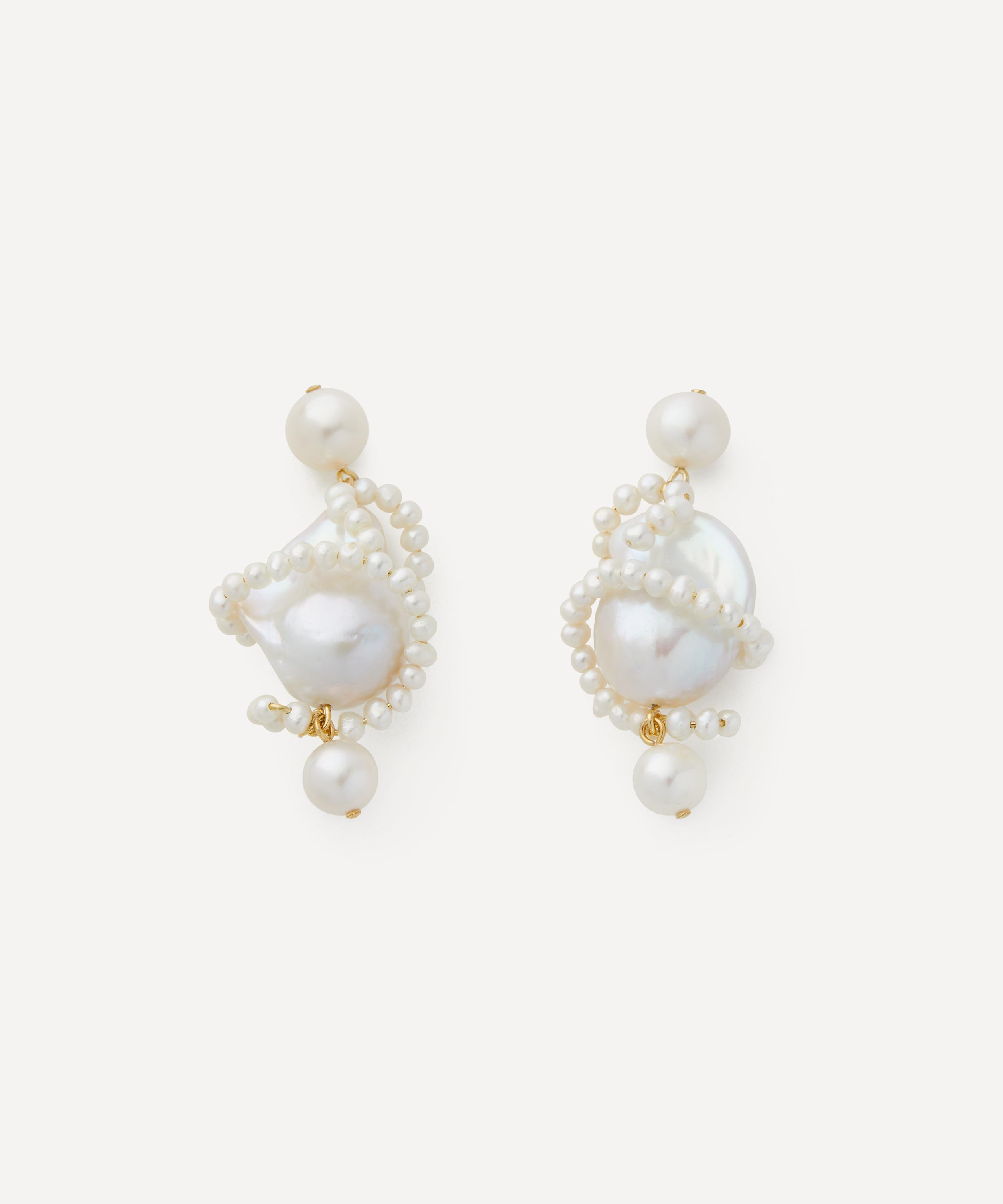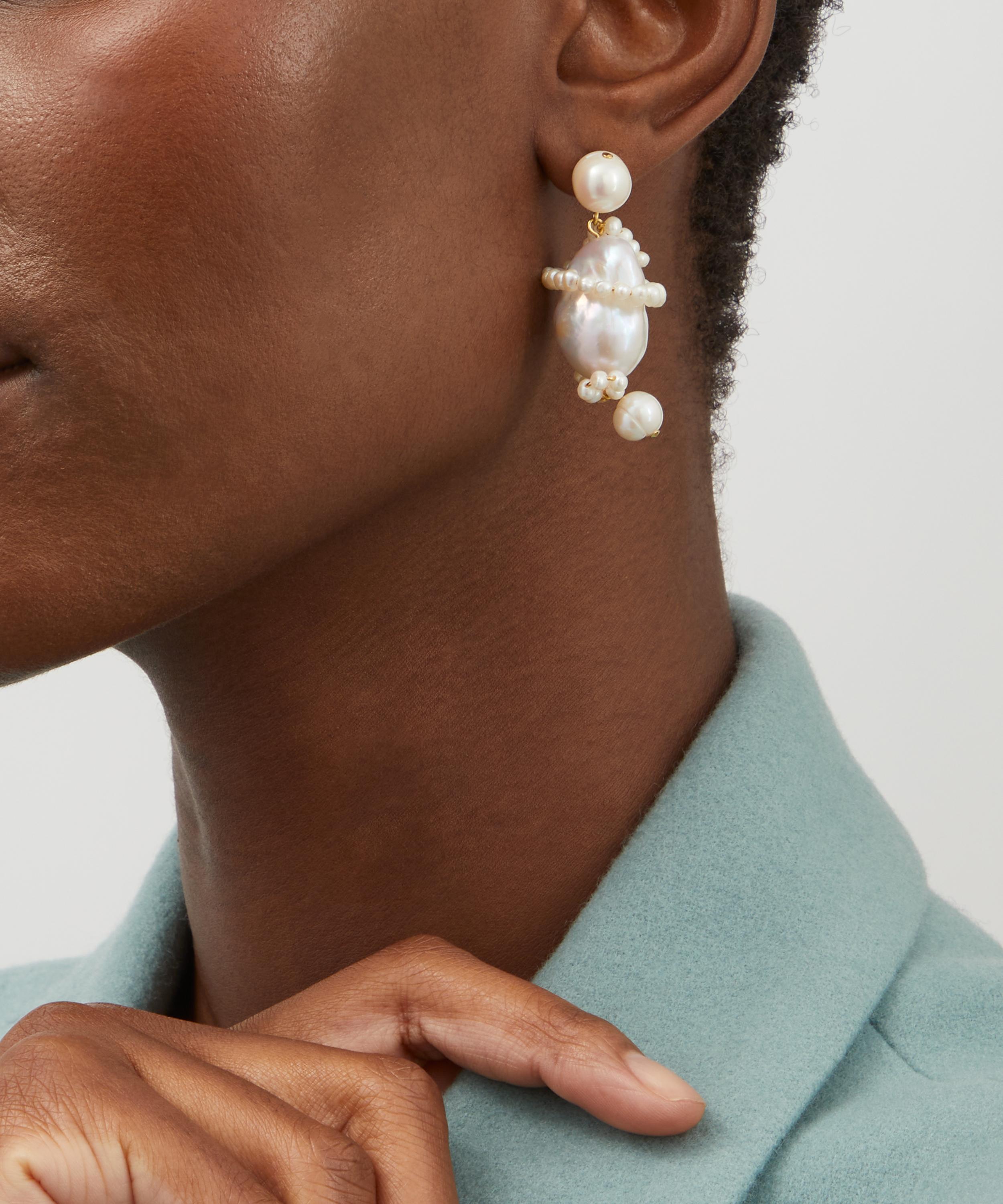 Take your outfit to the next level and create juxtaposed looks with the Carvings pearl drop earrings from Completedworks. Crafted from sterling silver plated in 18ct vermeil, each earring centres around a large baroque pearl with a string of freshwater pearls twisted around it, and a freshwater pearl on the top and bottom. Wear them with smart-casual outfits, elegant eveningwear or to add an intriguing contrast to more edgy ensembles.