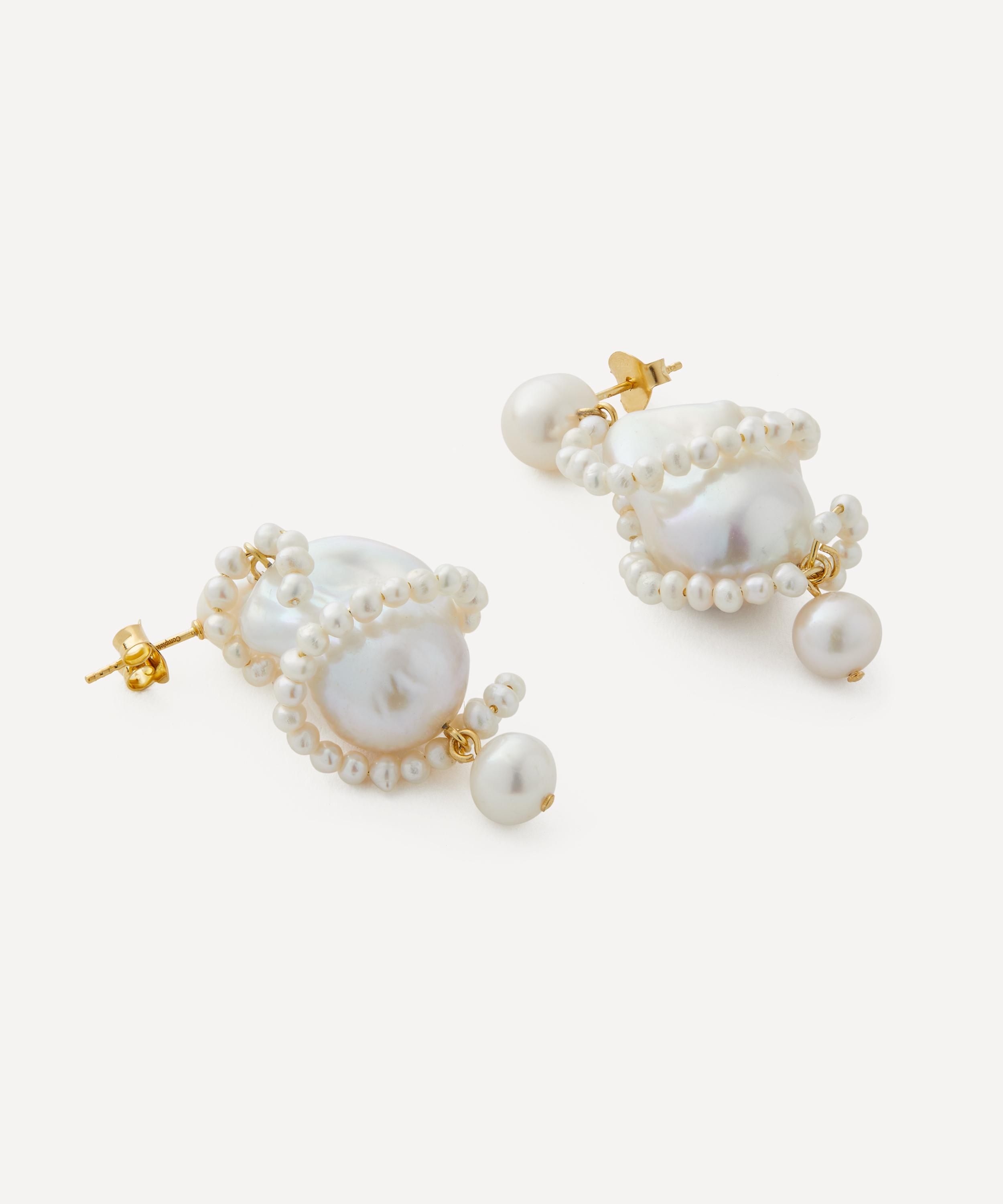 Completedworks 18ct Gold-Plated Vermeil Silver Carvings Pearl Drop Earrings