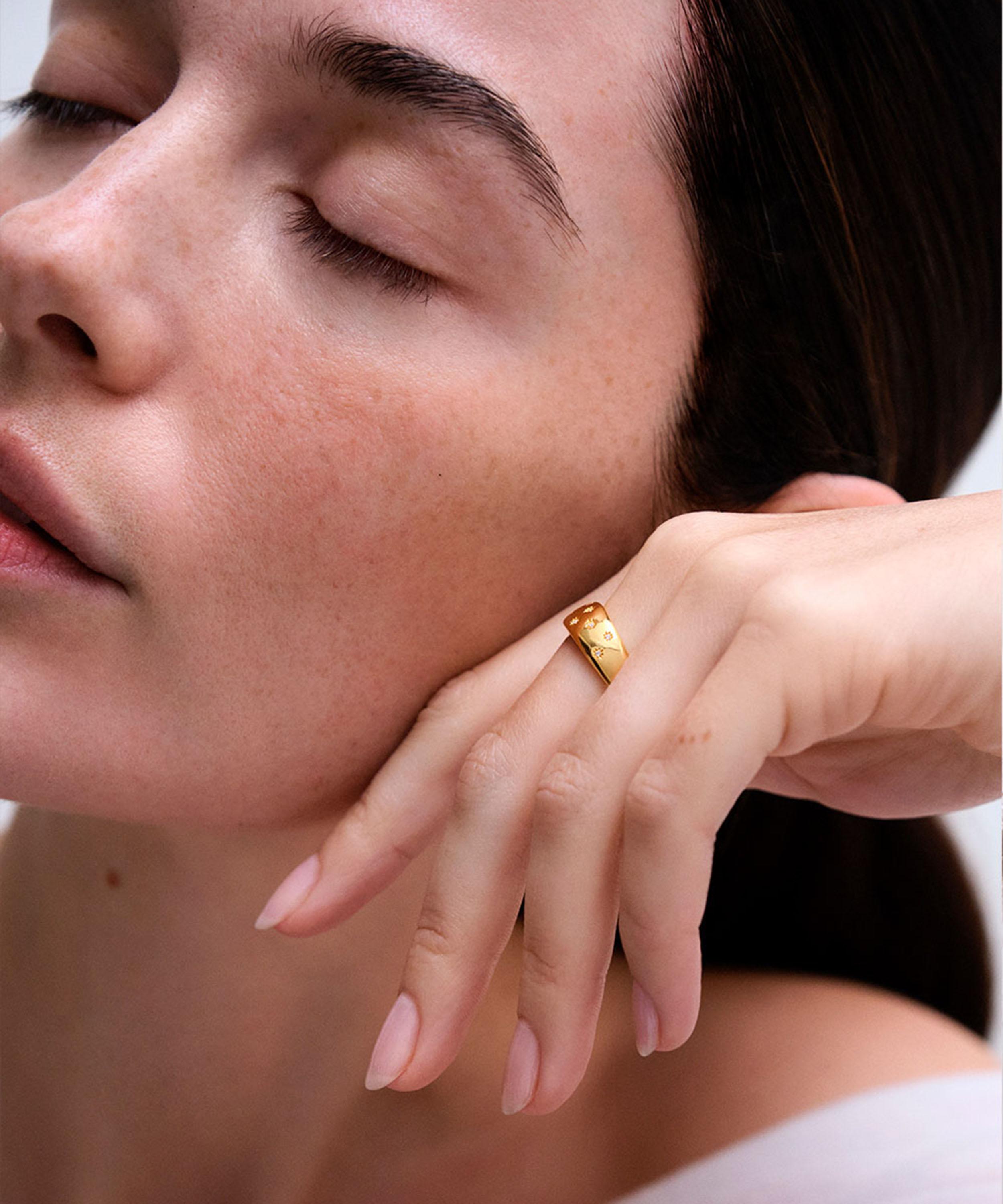 18ct Gold-Plated Vermeil Silver Celestial Tiny Star Wide Band Ring