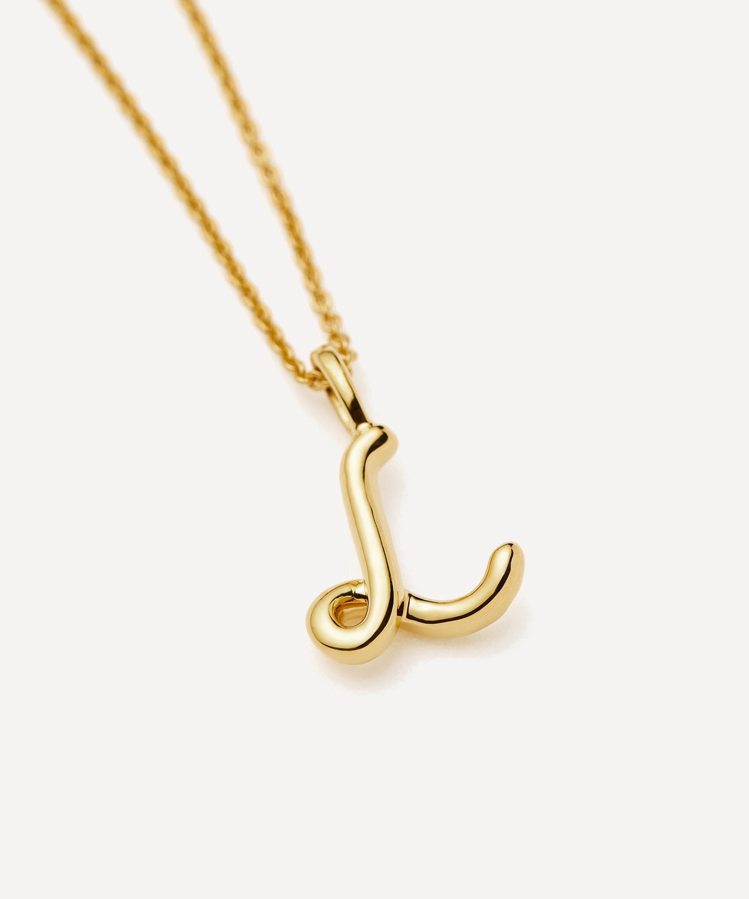 18ct Gold-Plated Vermeil Silver Curly Molten Mini L Initial Pendant Necklace