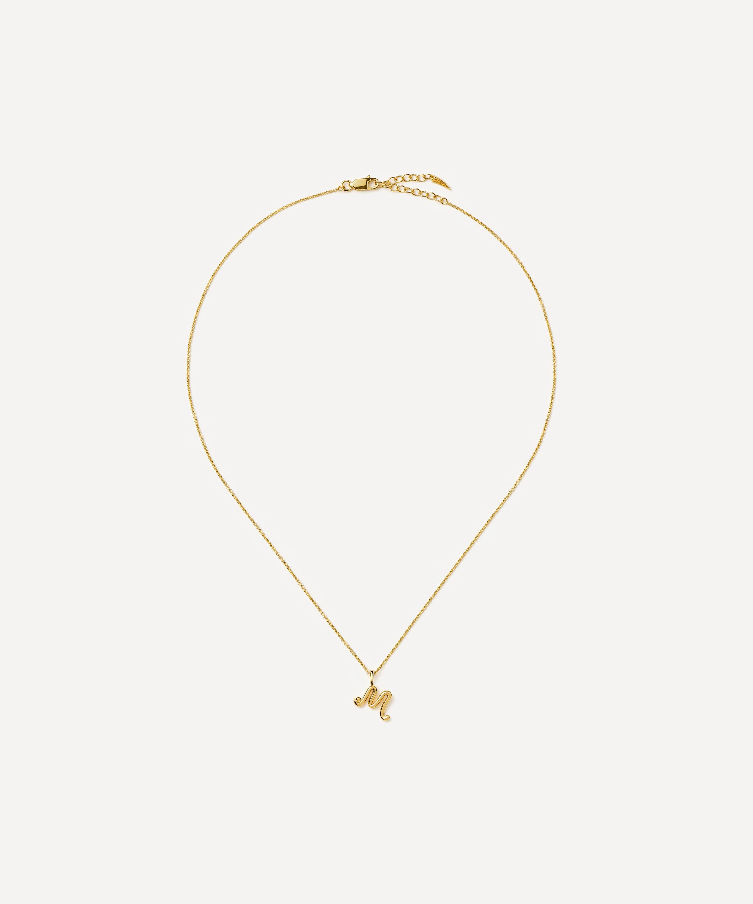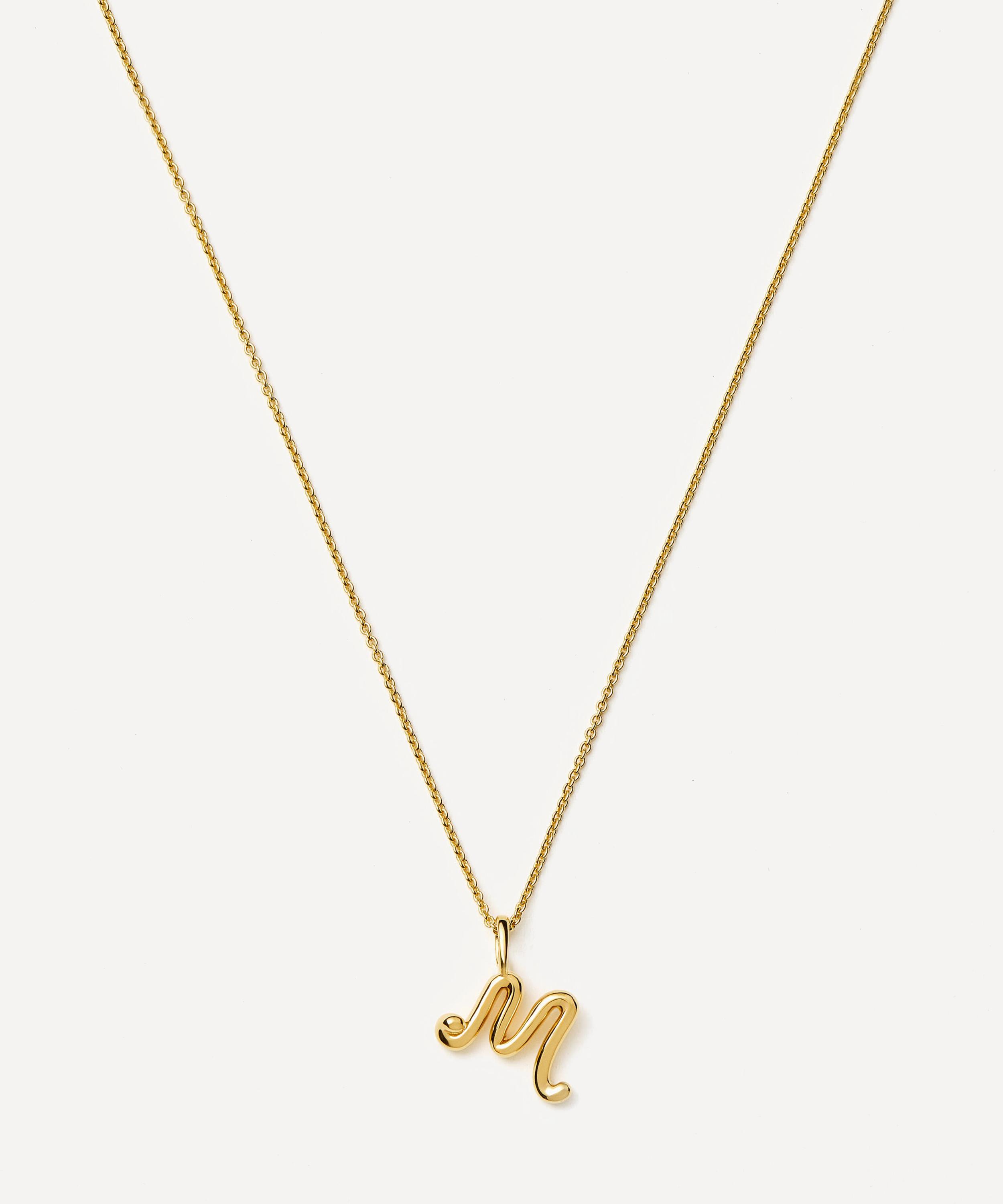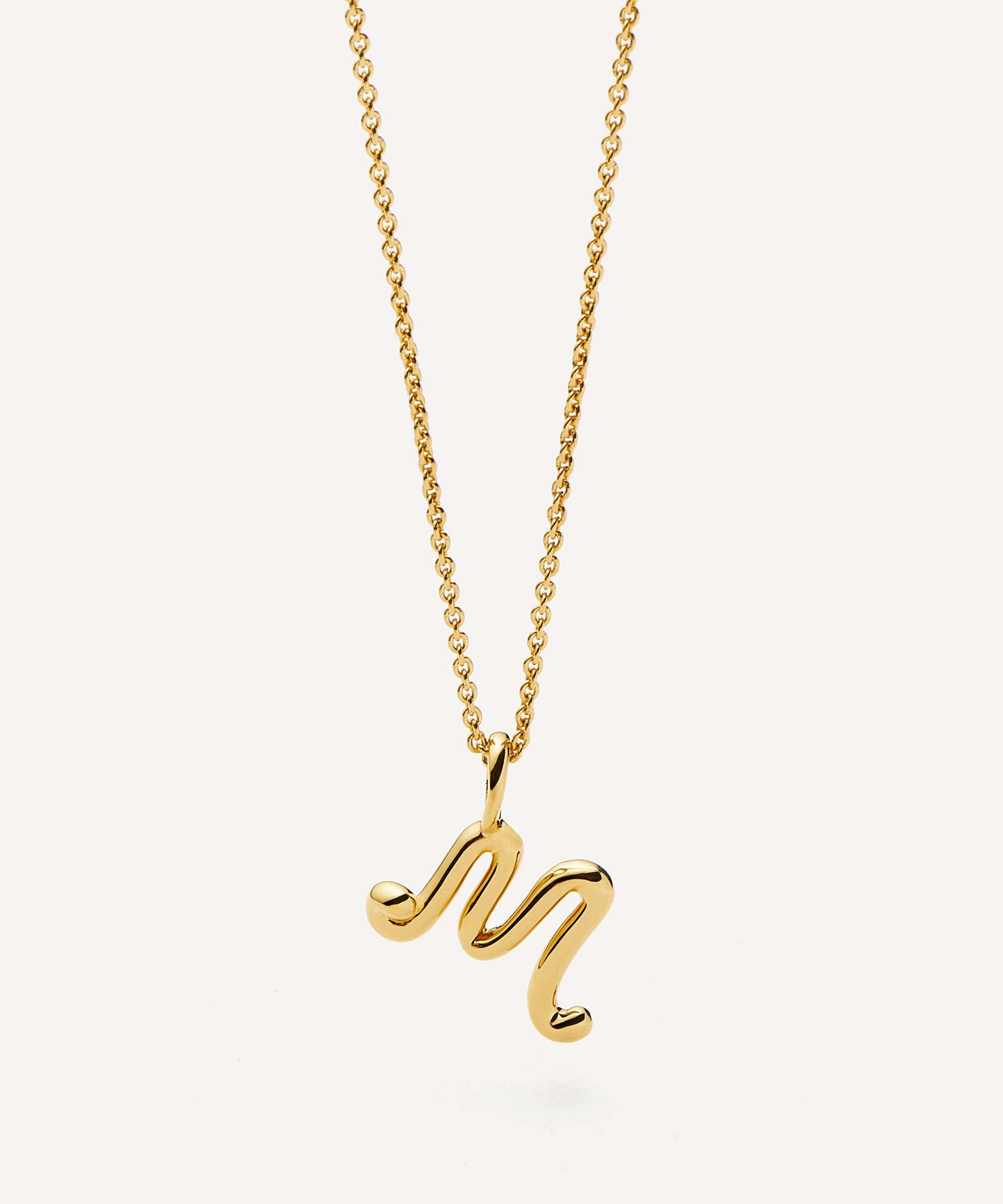 18ct Gold-Plated Vermeil Silver Curly Molten Mini M Initial Pendant Necklace