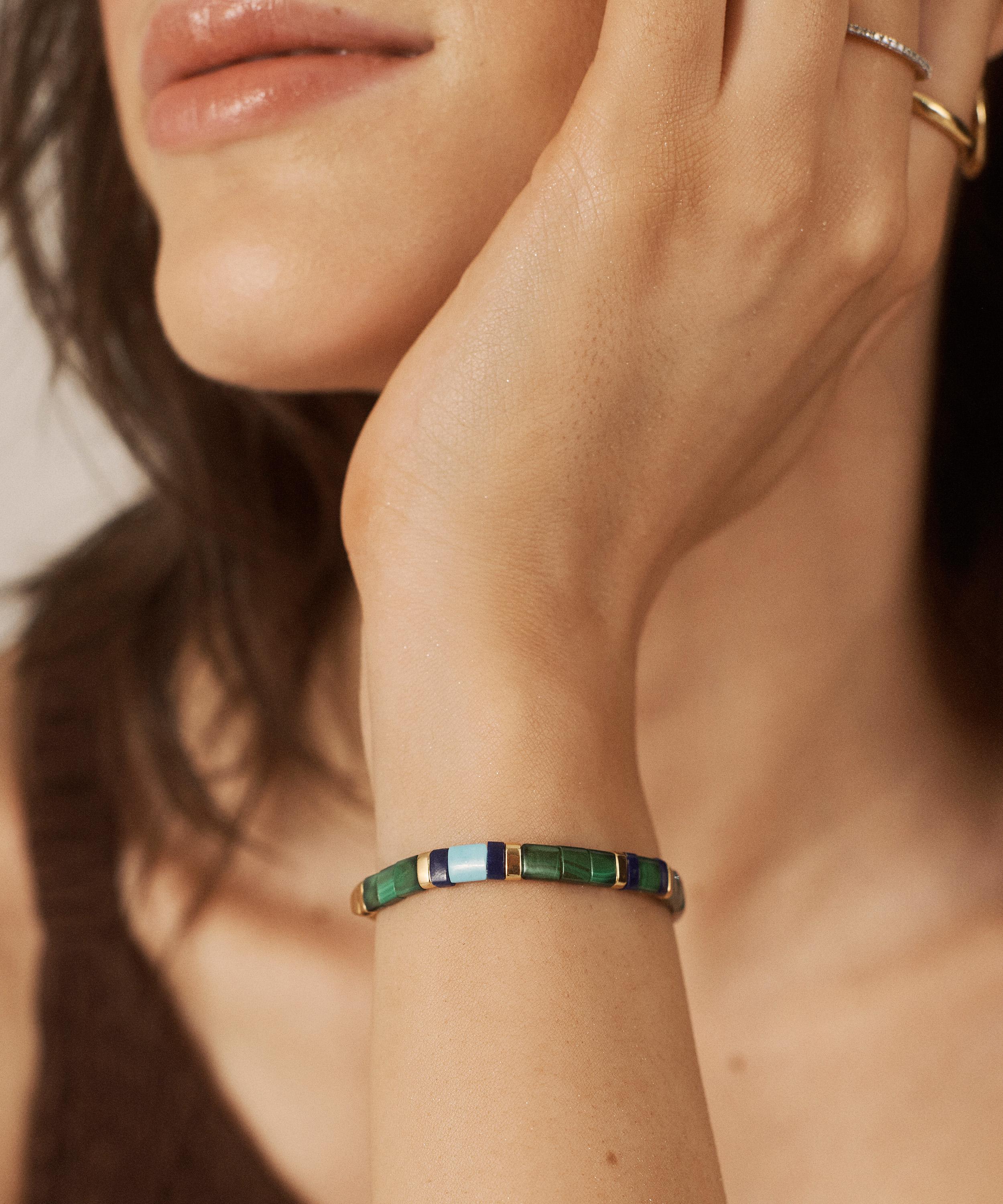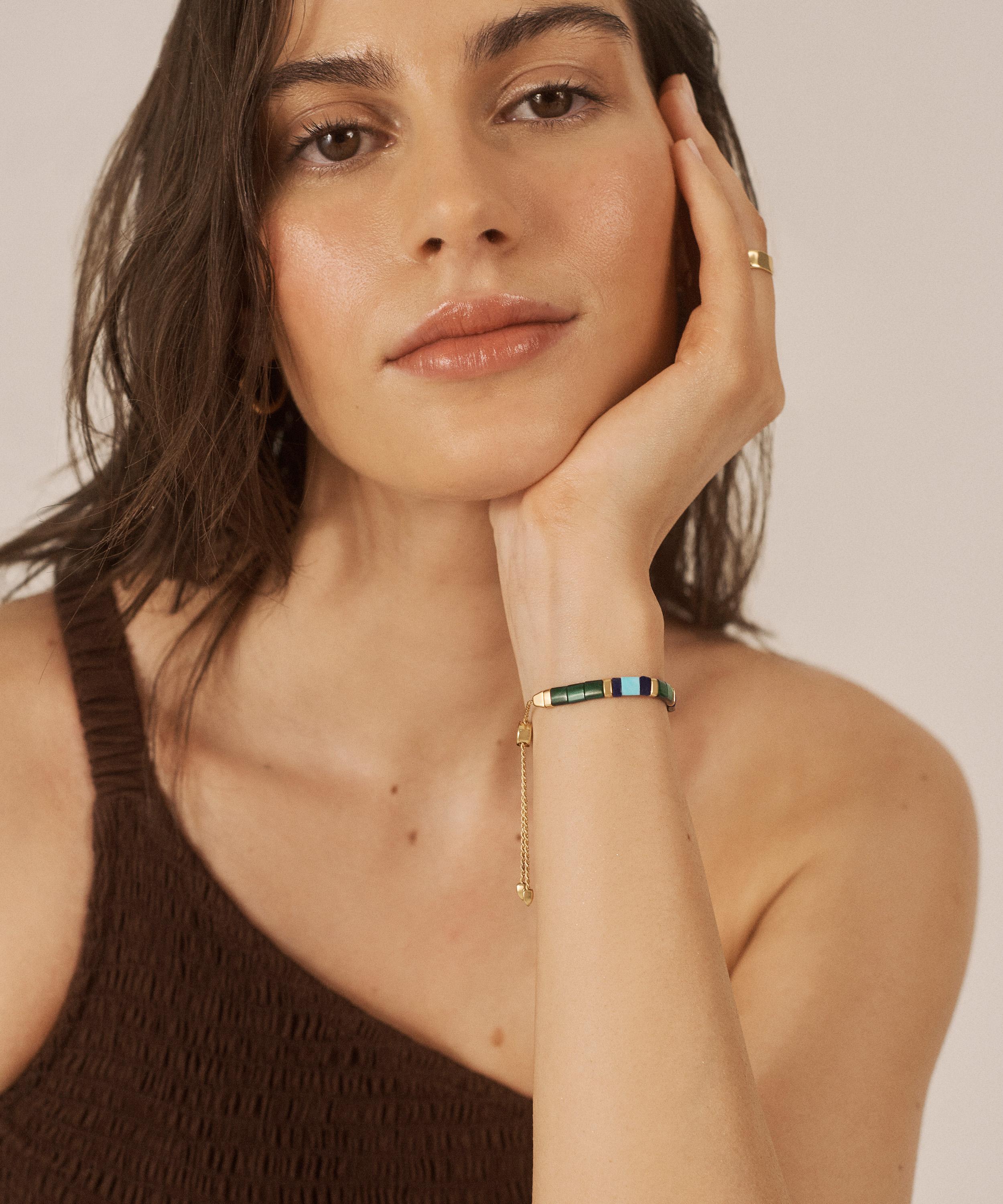 Compliment a silver wrist stack with this colourful malachite bracelet from Monica Vinader. Boasting a unique friendship bracelet, it’s crafted from sterling silver plated in 18ct gold vermeil – featuring a string of malachite gemstones. Complete with a charming slider clasp, incorporate it into your own daily line-up, or gift it to someone your care about.