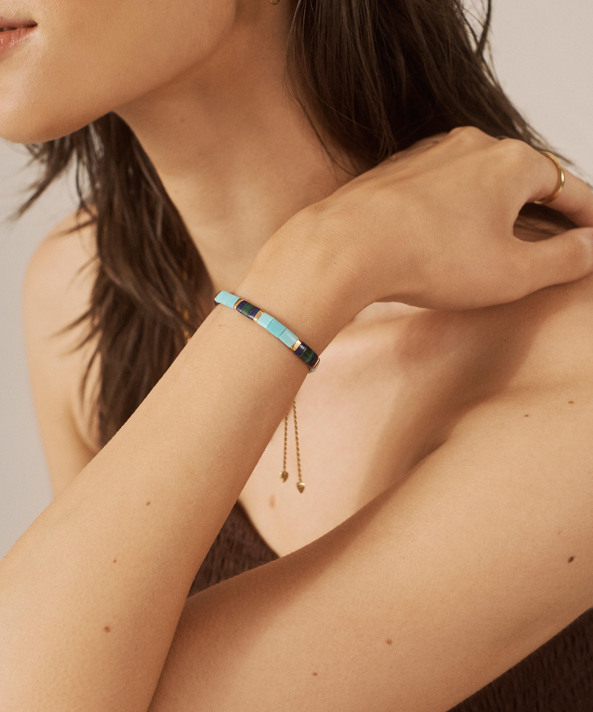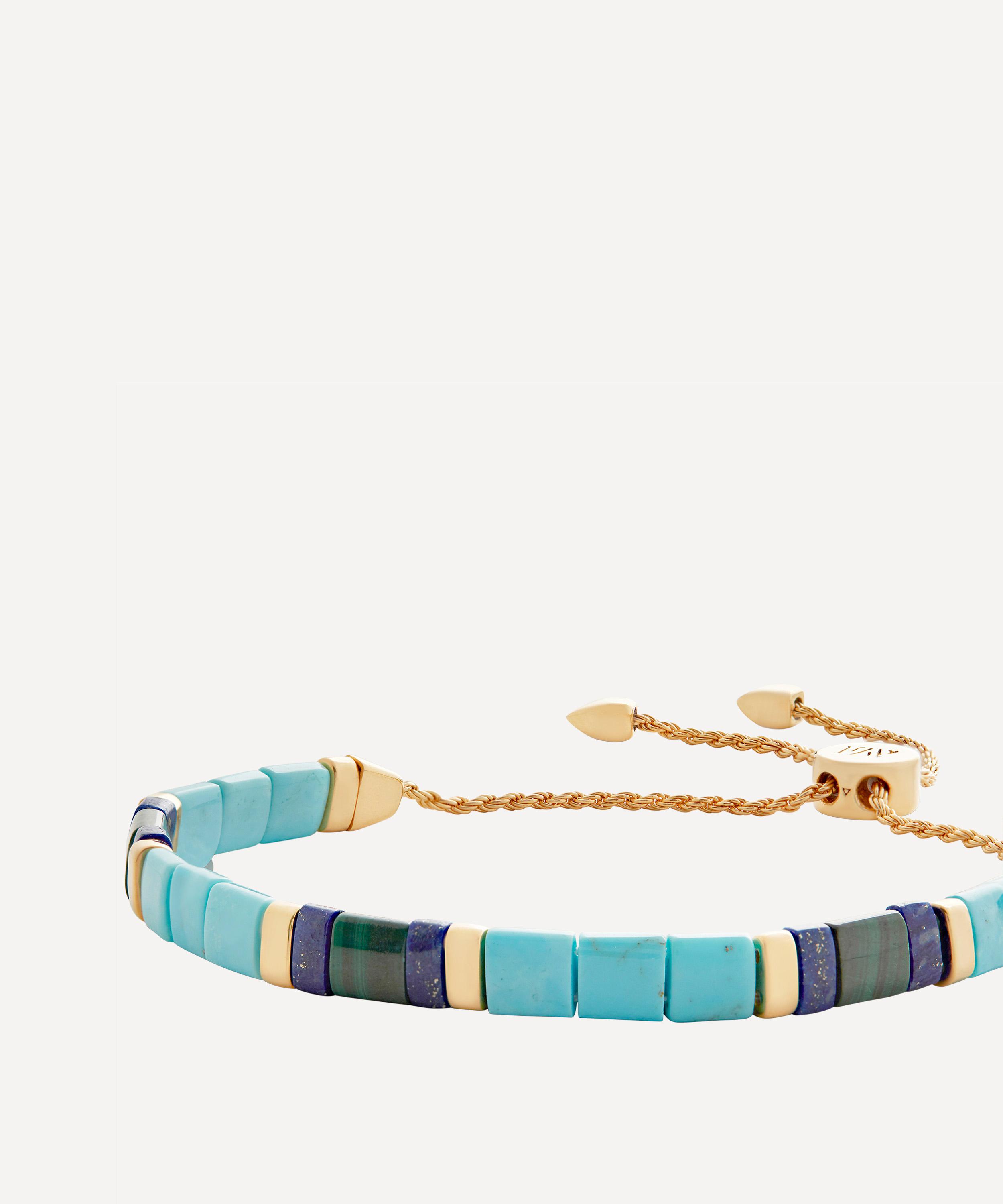 Compliment a silver wrist stack with this colourful turquoise bracelet from Monica Vinader. Boasting a unique friendship bracelet, it’s crafted from sterling silver plated in 18ct gold vermeil – featuring a string of turquoise gemstones. Complete with a charming slider clasp, incorporate it into your own daily line-up, or gift it to someone your care about.
