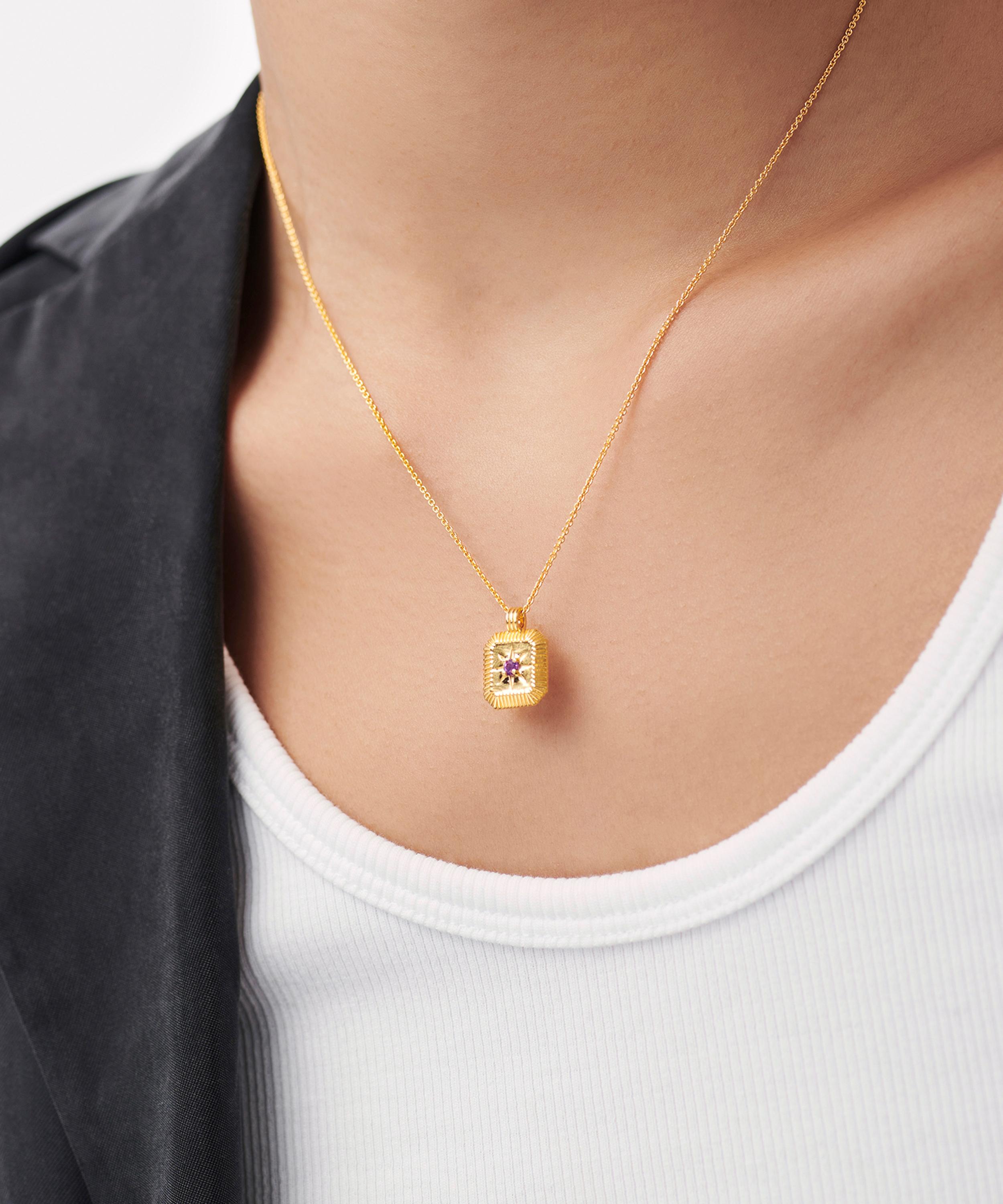18ct Gold-Plated Vermeil Silver Engravable February Birthstone Star Ridge Pendant Necklace