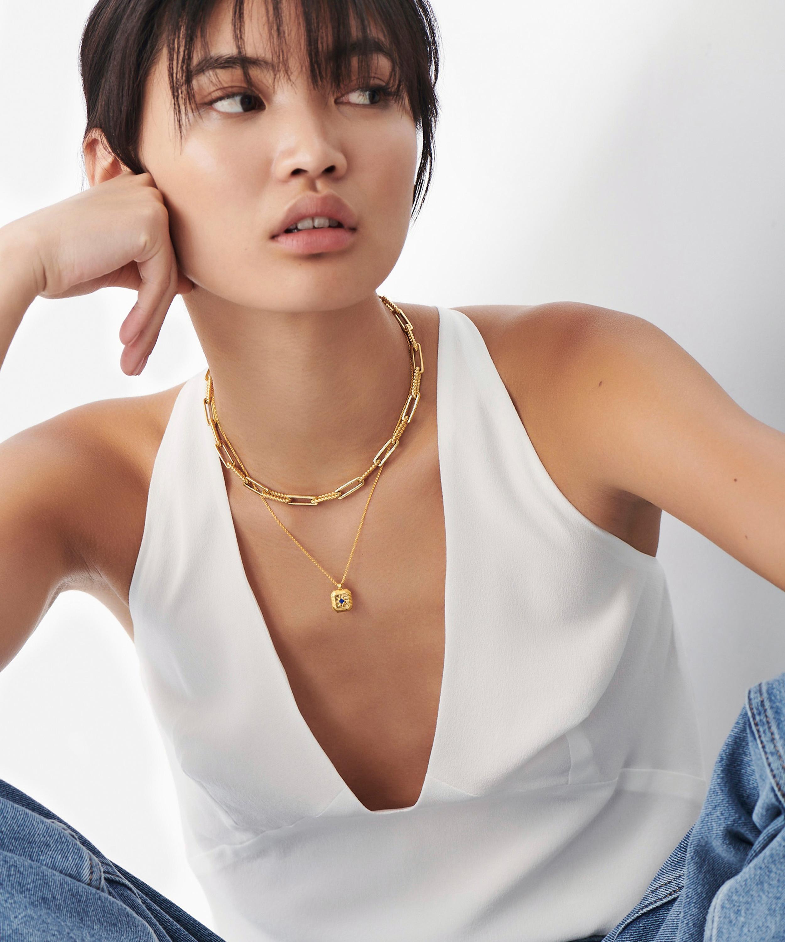 This birthstone pendant necklace from Missoma seamlessly blends stylish design with meaningful symbolism – taking personalised jewellery to a new level. Crafted in recycled silver plated in 18ct gold vermeil, this necklace features a delicate chain with a beautifully ridged pendant. The pendant is embellished with a central star motif, fitted with a natural lapis stone – making it the perfect gift for anyone born in September.
