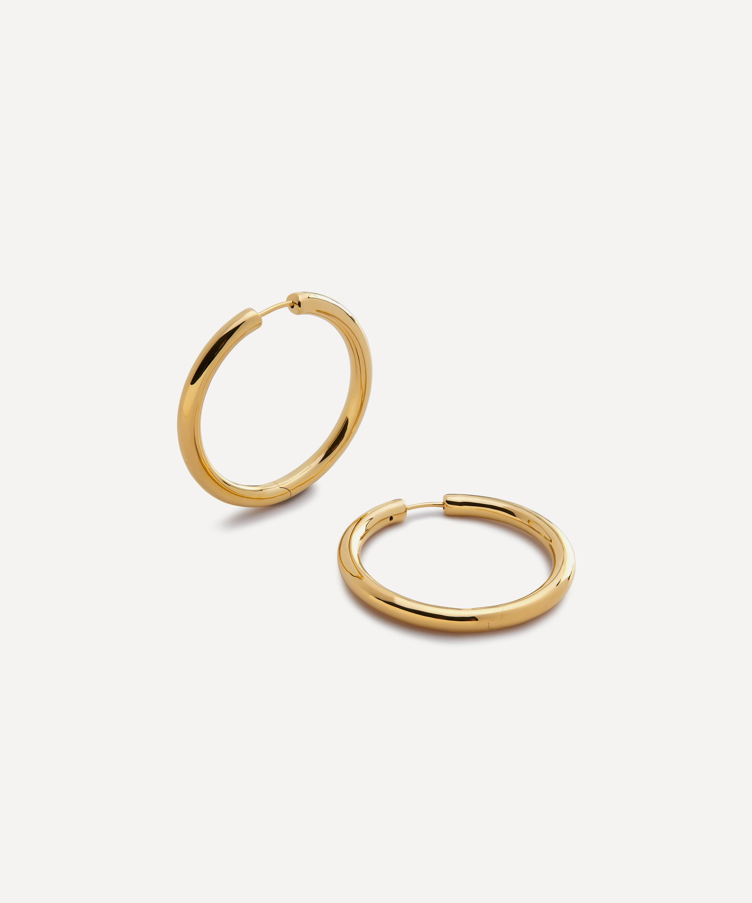 A foundation to any jewellery box, throw on these large hoop earrings from Monica Vinader and effortlessly elevate your look. Crafted from sterling silver plated in 18ct gold vermeil, each earring features a sleek, seamless silhouette in a polished finish. Perfect for every day, style them solo, or team with other hoops from the brand to create a graduating stack.