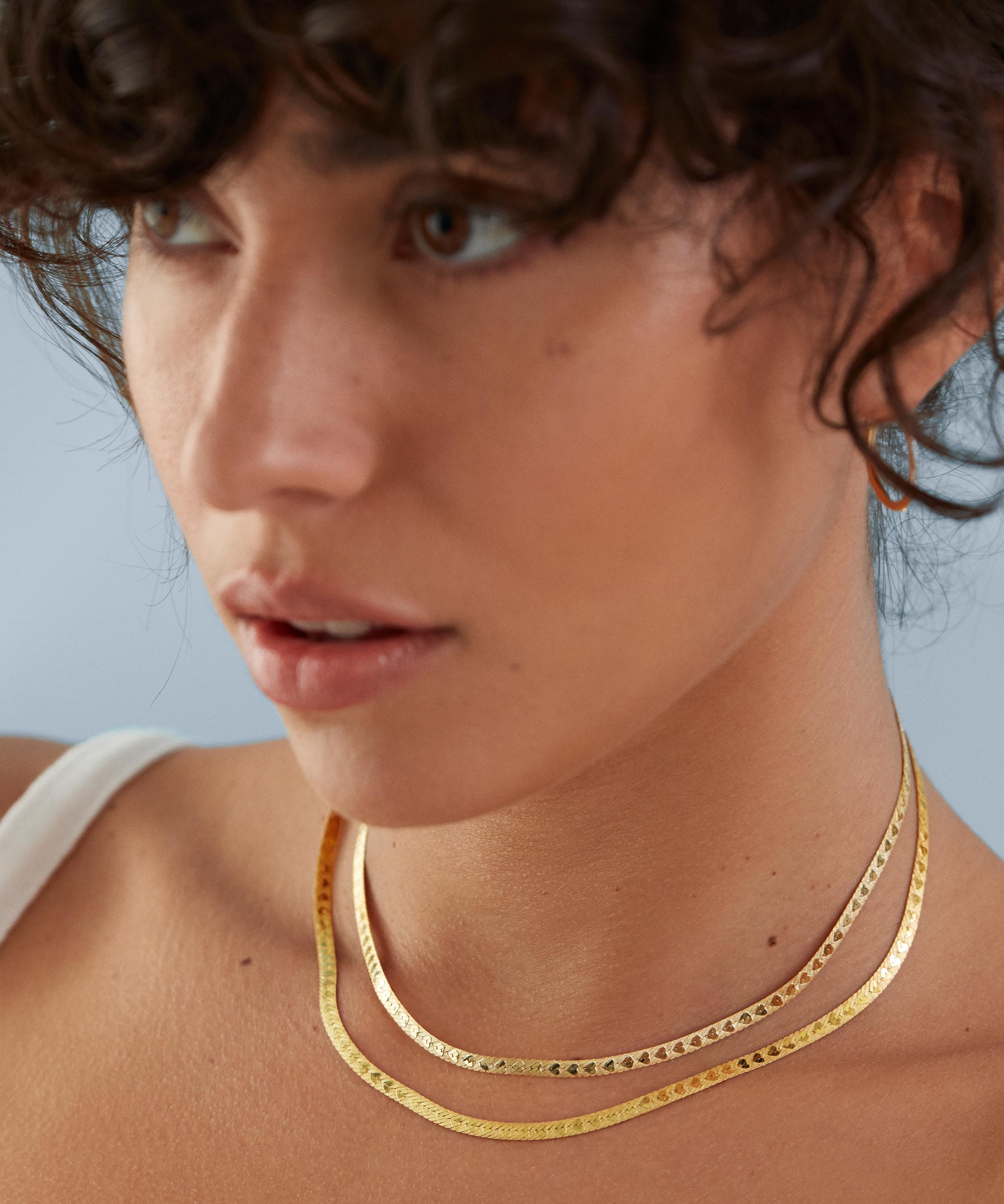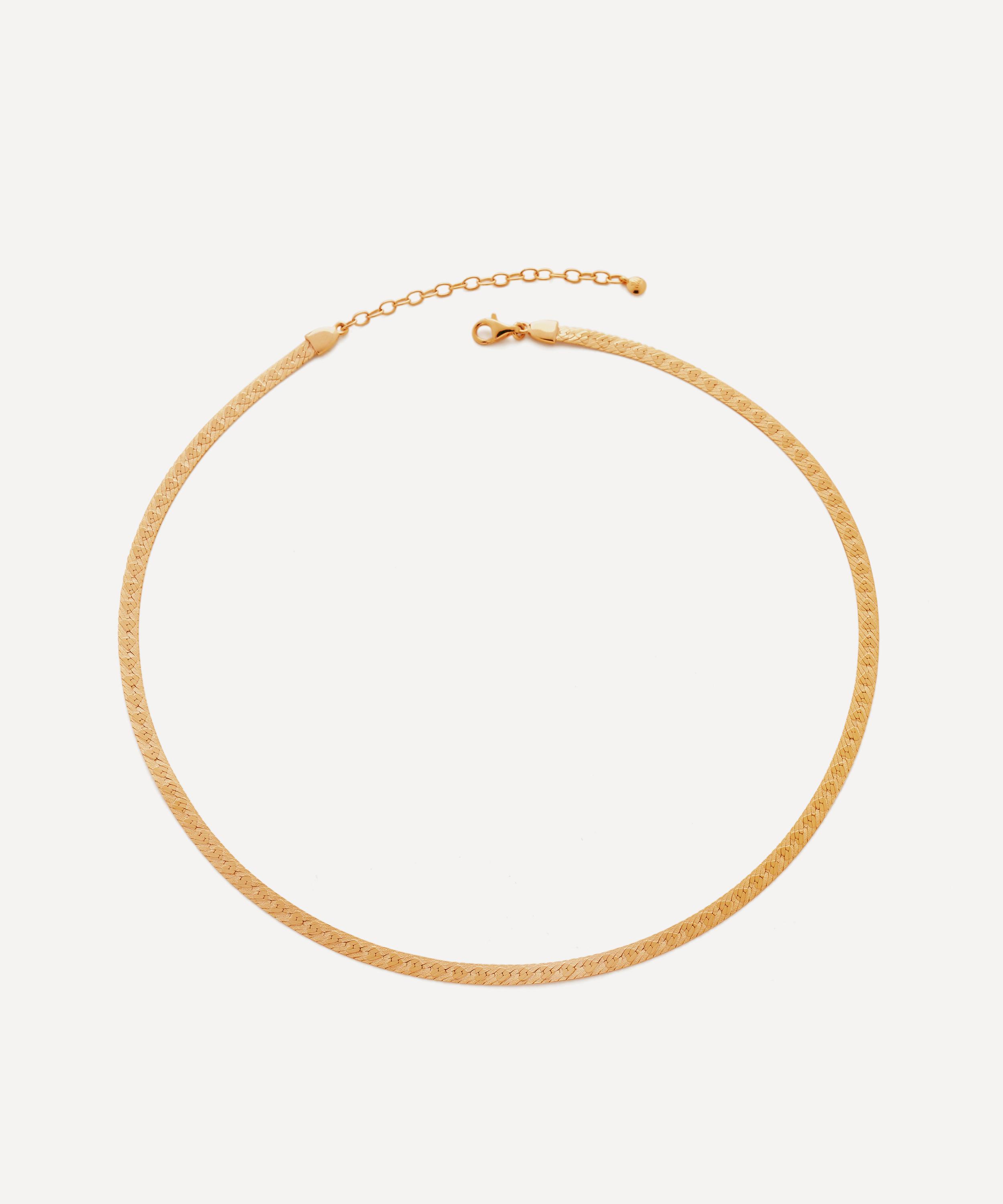 Perfect for pairing with other chains, embrace the versatility of Monica Vinader's Heart Snake choker necklace. Crafted in sterling silver plated in 18ct gold vermeil, this necklace features a reversable snake chain with one side revealing a detailed heart texture. Fully customisable in both length and style, it is ideal for any outfit or occasion - the ultimate jewellery box essential.