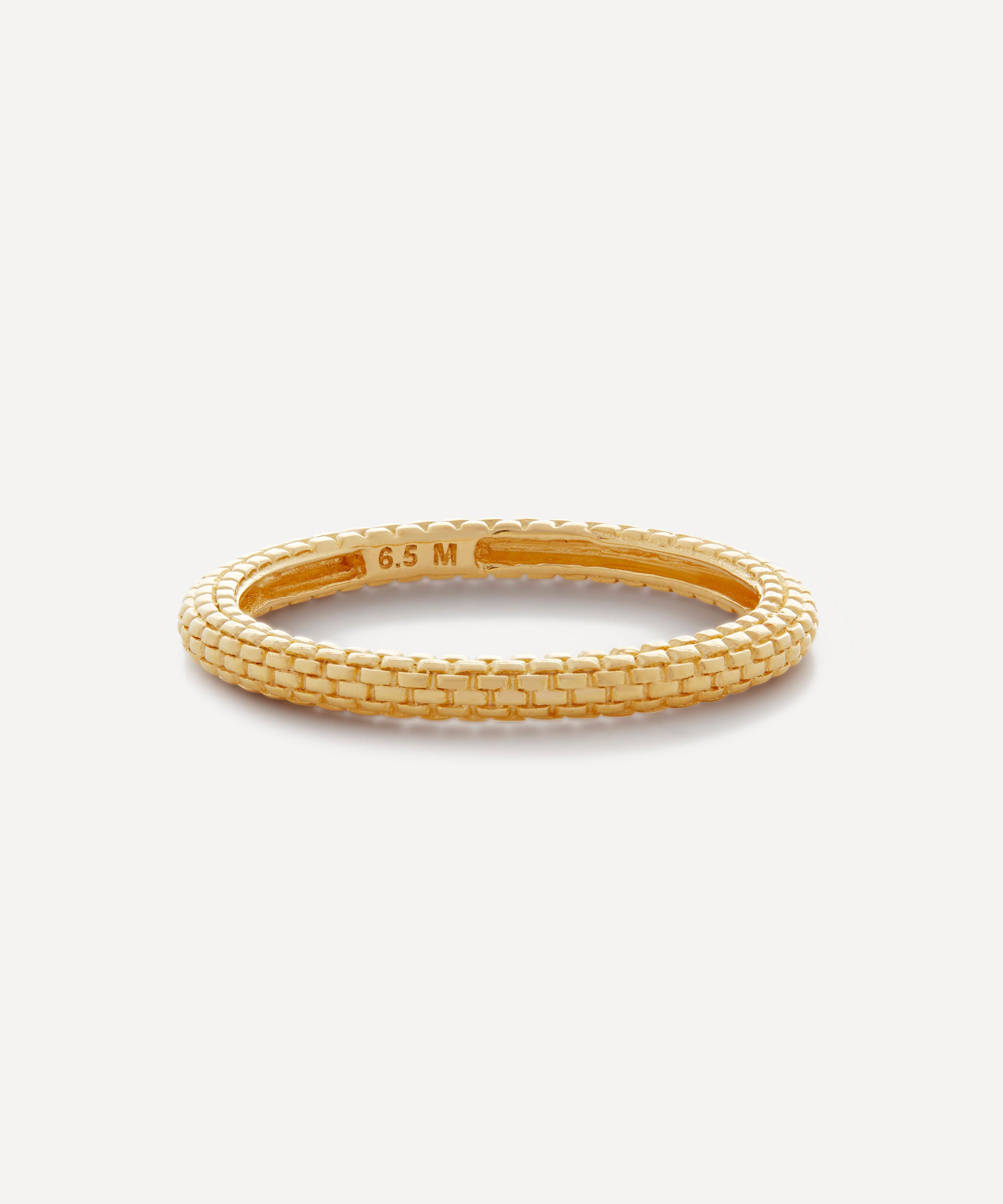 Inspired by the glamour of 1950s Italy, this ring from Monica Vinader is crafted from sterling silver plated in 18 carat gold vermeil. Characterised by a woven chain texture in a polished finish, it can be teamed with several other styles to fully harness the collection’s elegant, vintage-inspired aesthetic.