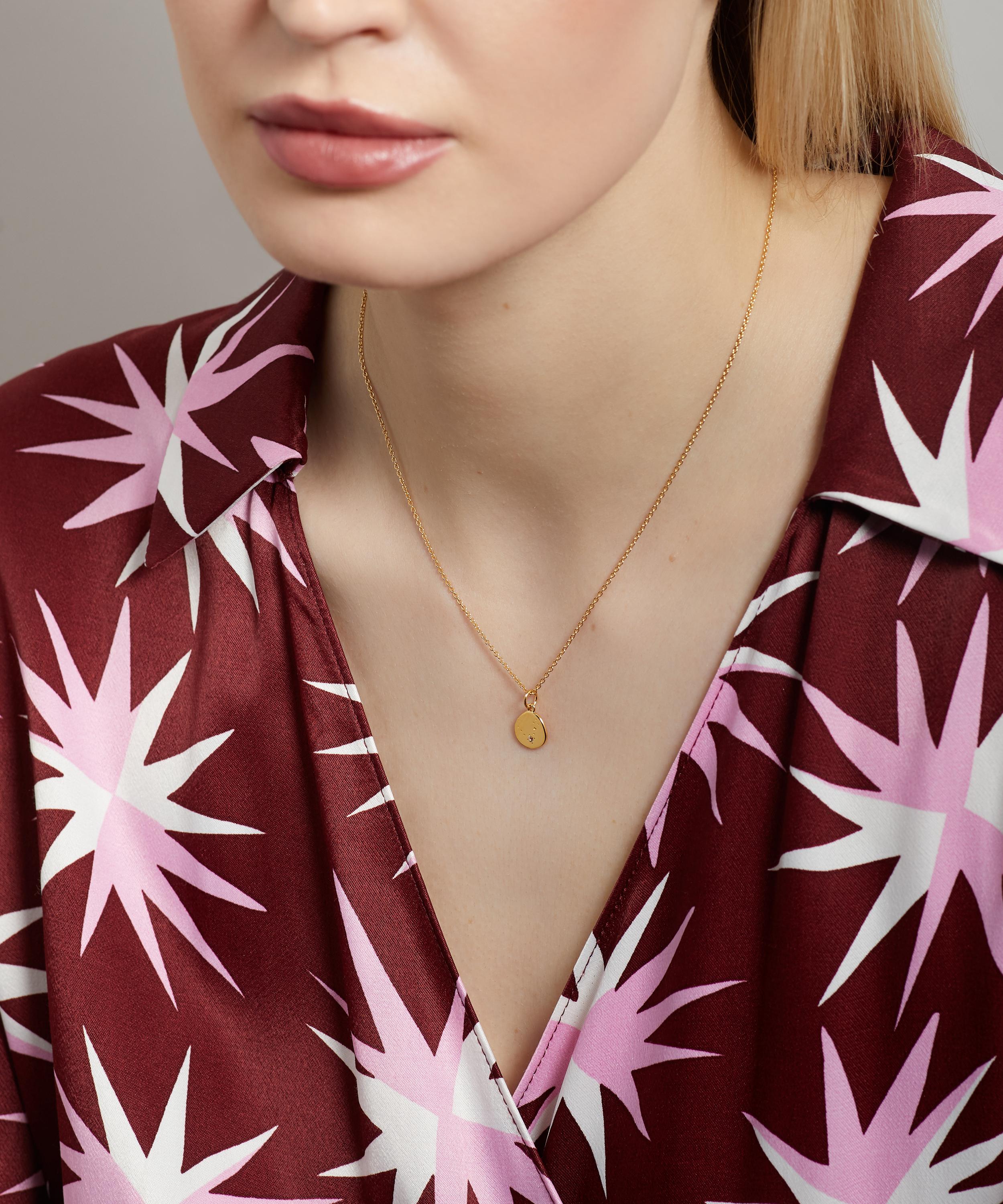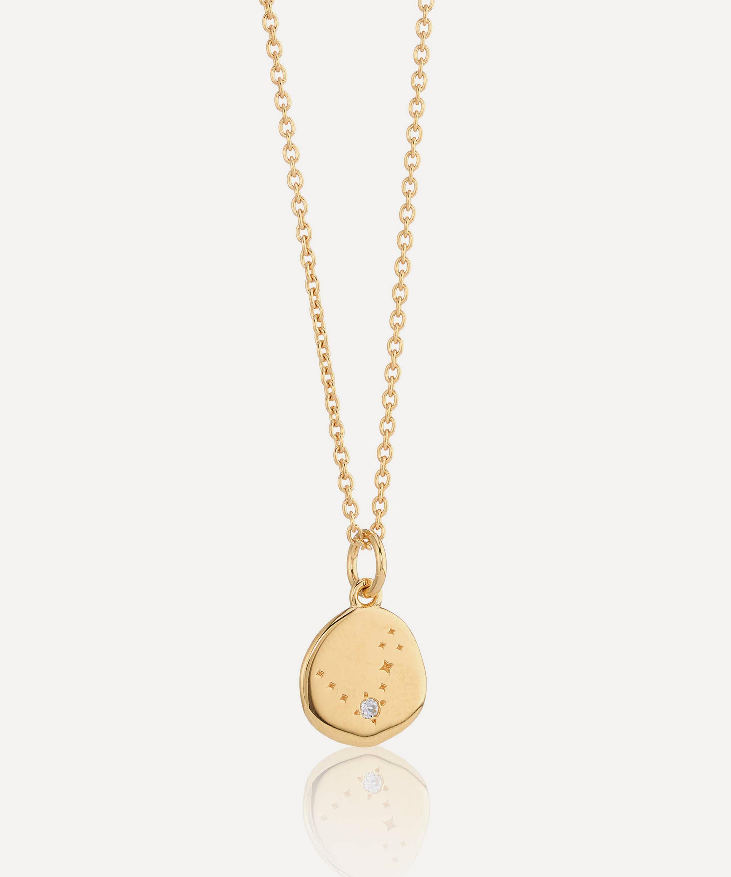 Embrace your star sign and all its wondrous traits with Auree’s zodiac pendant necklace. Crafted from sterling silver plated in 18ct gold vermeil, this personalised necklace features an adjustable trace chain and steals the show with its teardrop-shaped pendant, adorned with a precious blue topaz gem and engraved constellation representing the Pisces sign.