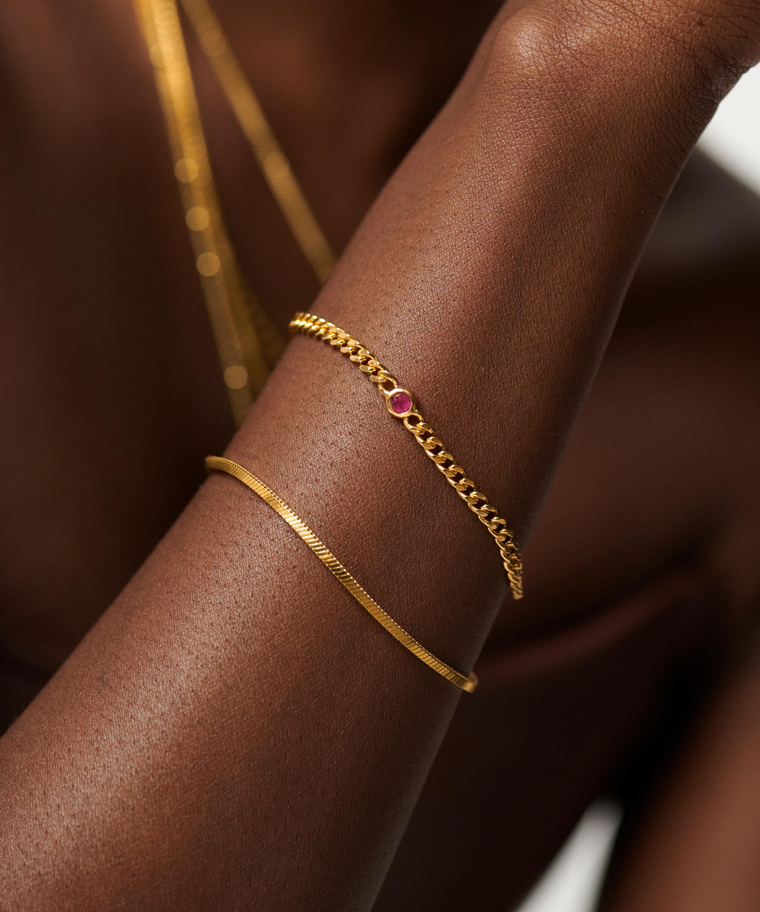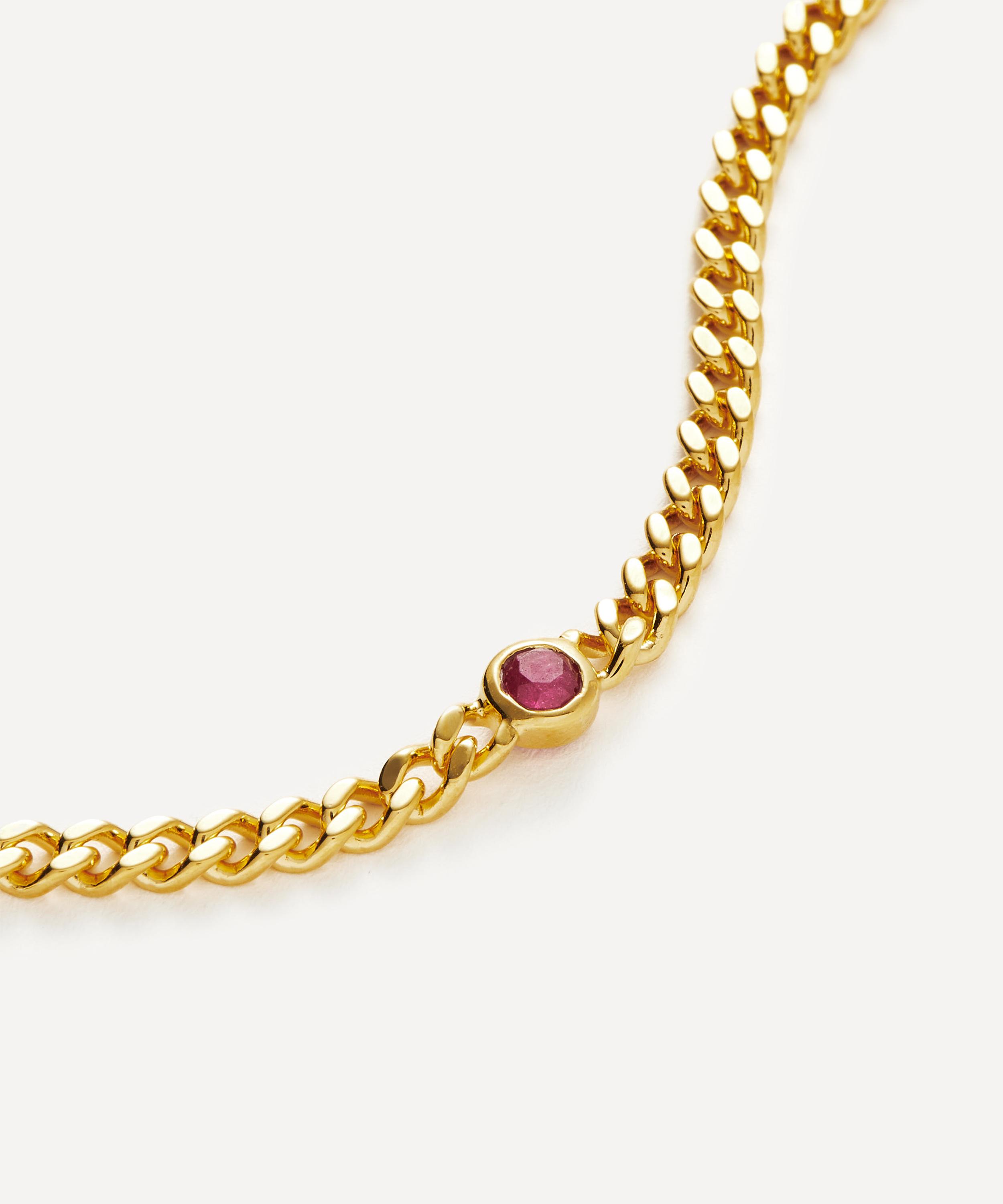 This birthstone chain bracelet from Missoma seamlessly blends stylish design with meaningful symbolism – taking personalised jewellery to a new level. Crafted in recycled silver plated in 18ct gold vermeil, this bracelet features a delicate curb chain with a bezel-set ruby gemstone – making it the perfect gift for anyone born in July.