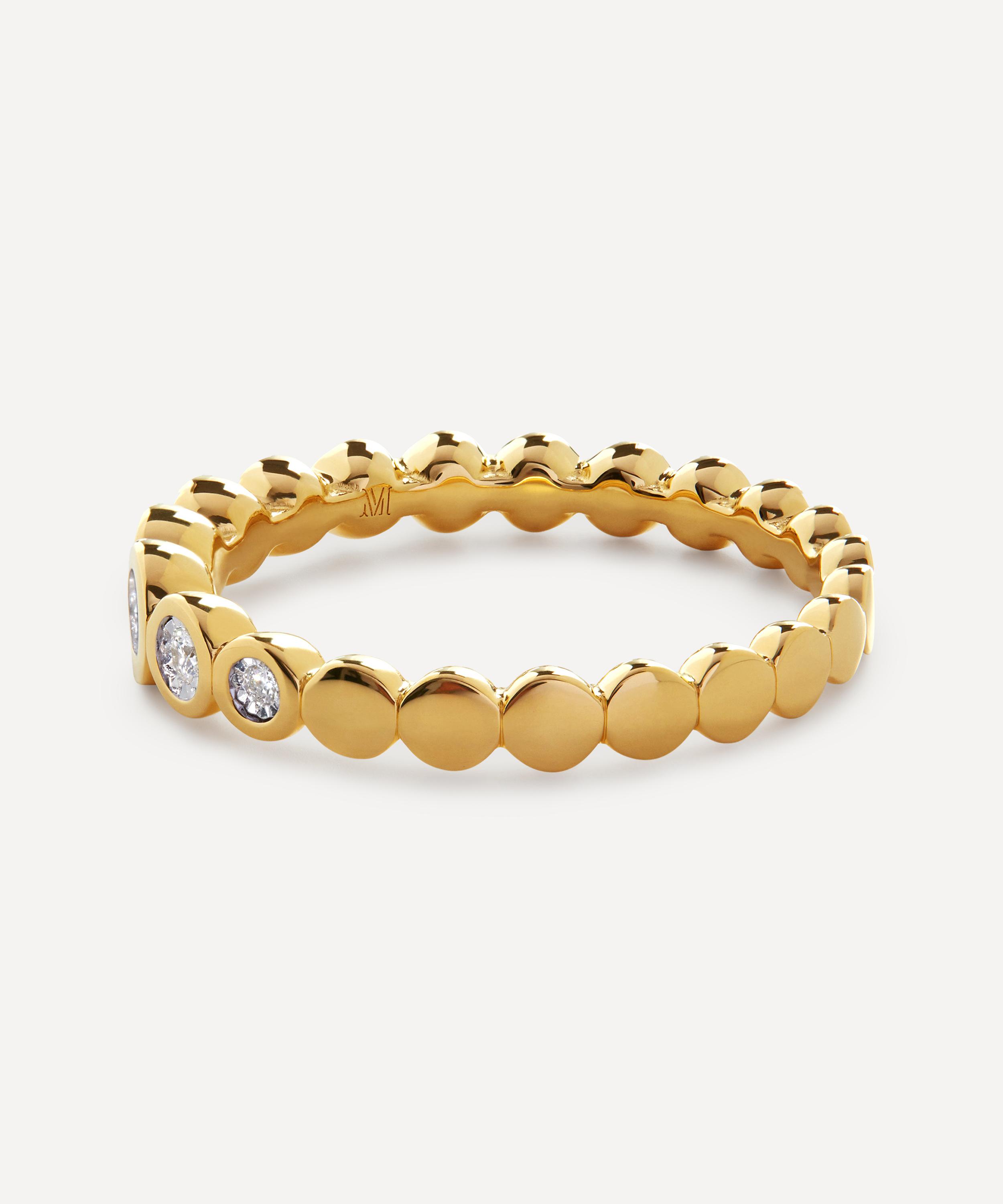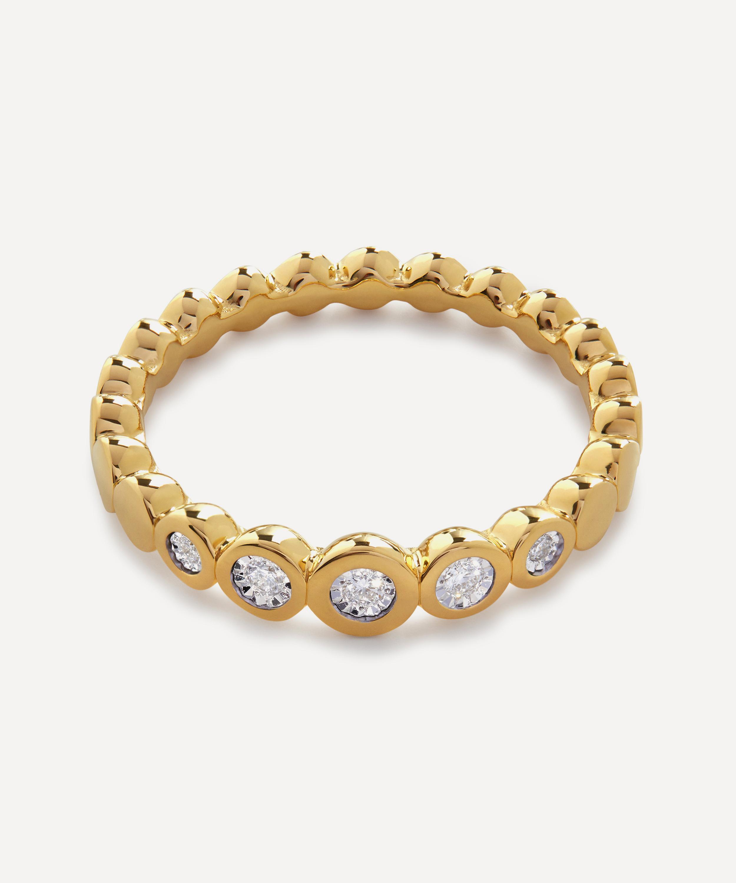 Exuding timeless elegance, this diamond ring from Monica Vinader will elevate your look with a truly unforgettable sparkle and radiance. Crafted from sterling silver plated in 18ct gold vermeil, it features a half eternity style band adorned with five round brilliant cut diamonds in a graduated design. Style it with the matching bracelet and necklace to complete your own collection or gift it to a loved one on a special occasion.