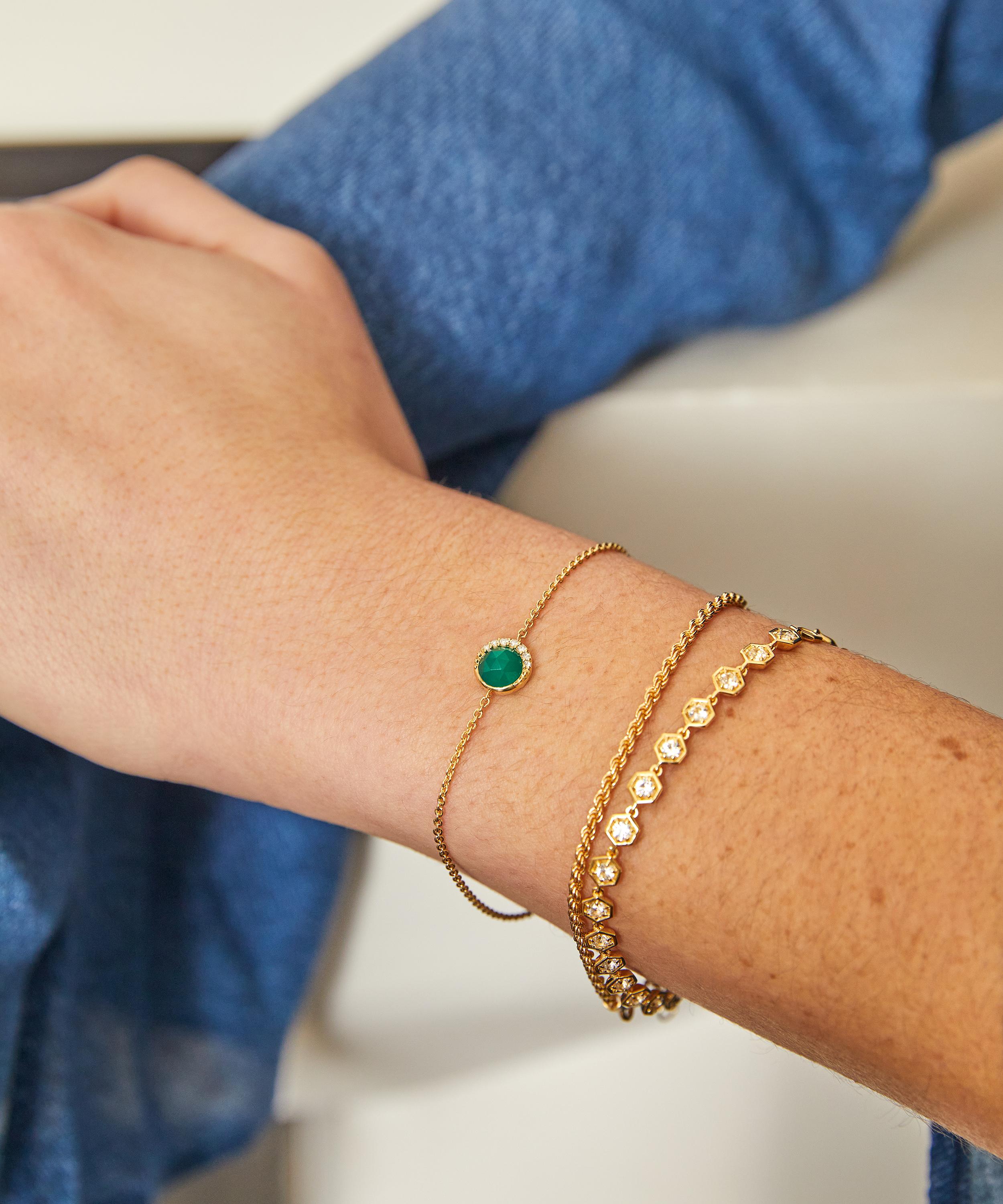 18ct Gold-Plated Vermeil Silver Luna Green Chalcedony Bracelet