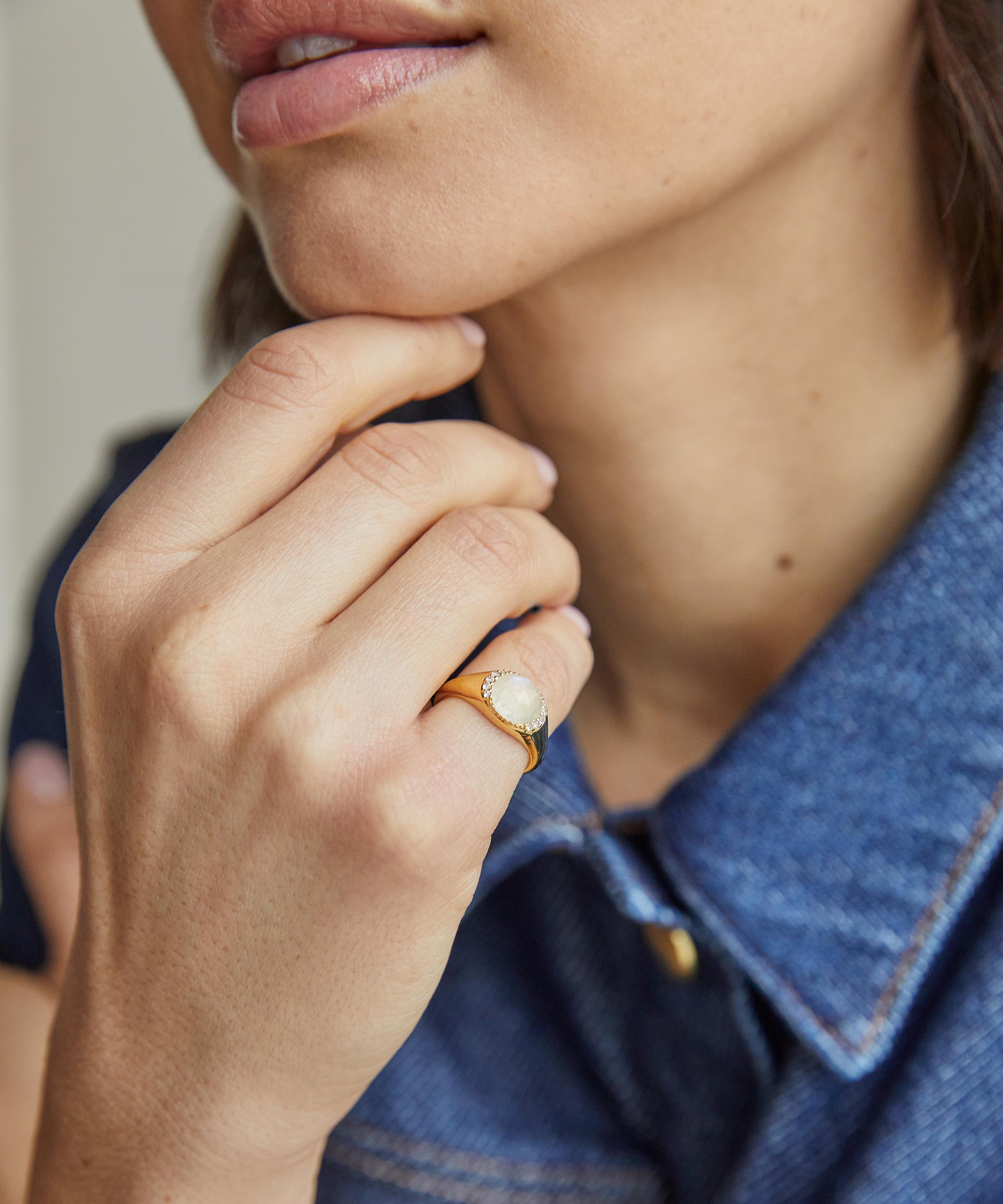 18ct Gold-Plated Vermeil Silver Luna Moonstone Signet Ring