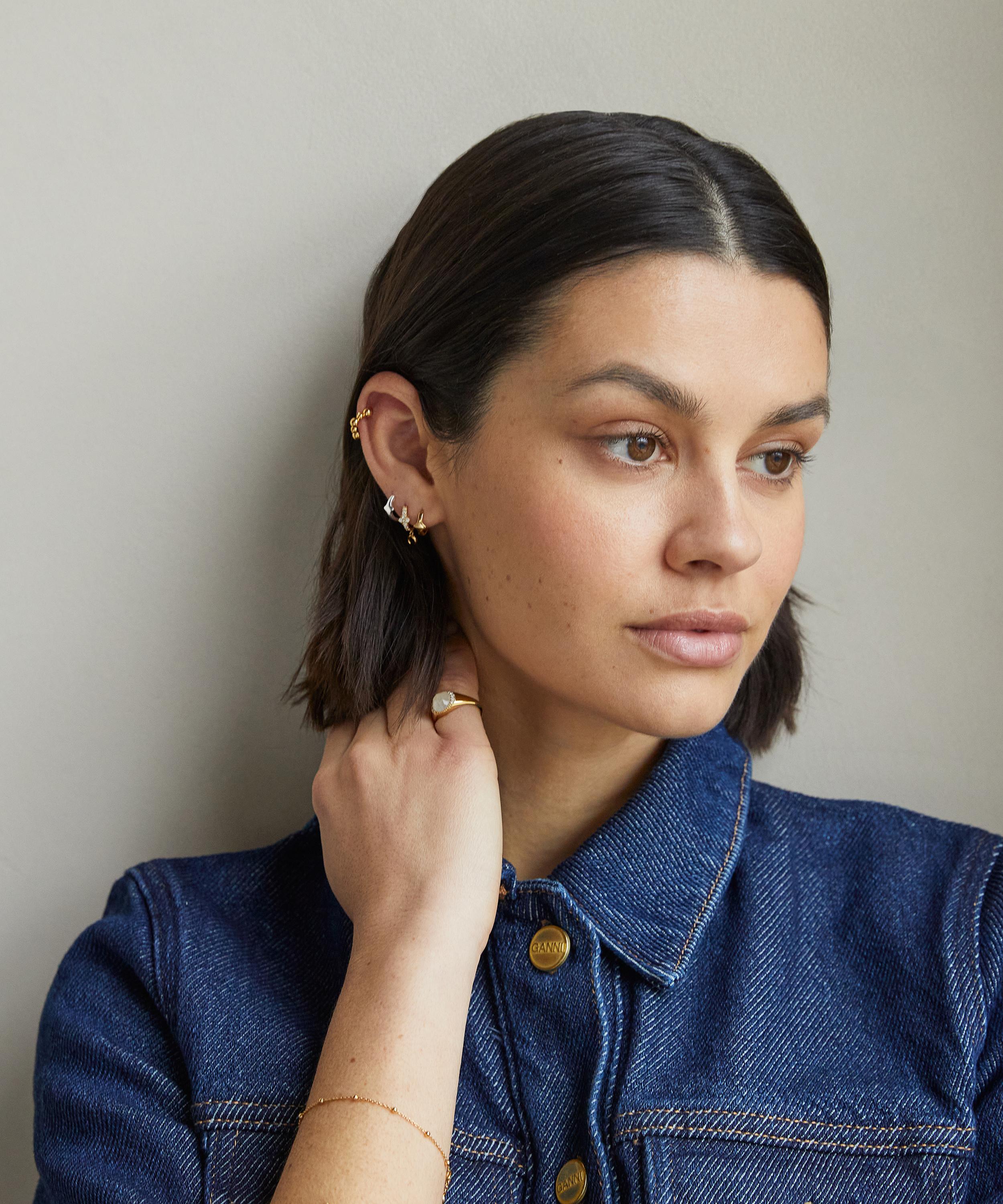 Imbued with meaningful symbolism, this signet ring is from Astley Clarke’s Luna collection – channelling the power of moon and tidal magnetism. Crafted from sterling silver plated in 18ct gold vermeil, it’s characterised by a faceted moonstone centre stone, surrounded by sparkling white sapphires. Style solo, or with the matching necklace and earrings for a coordinated look.
