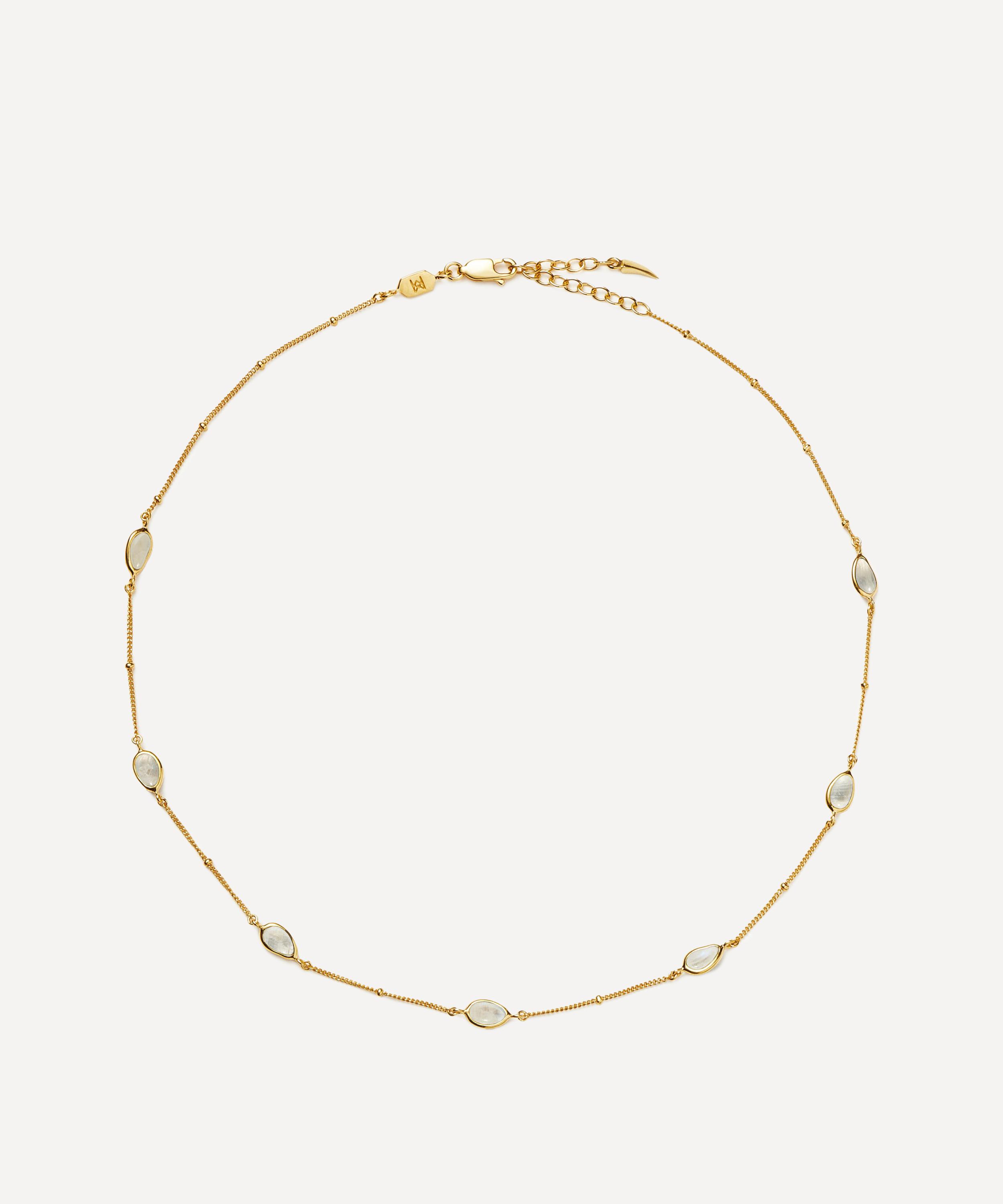 Crafted from sterling silver plated in 18ct gold vermeil, it features a delicate bobble chain adorned with rainbow moonstones – a symbol of new beginnings - fitted into molten settings. Team it with matching pieces from the Magma collection or other necklaces for a wonderfully contrasting effect.