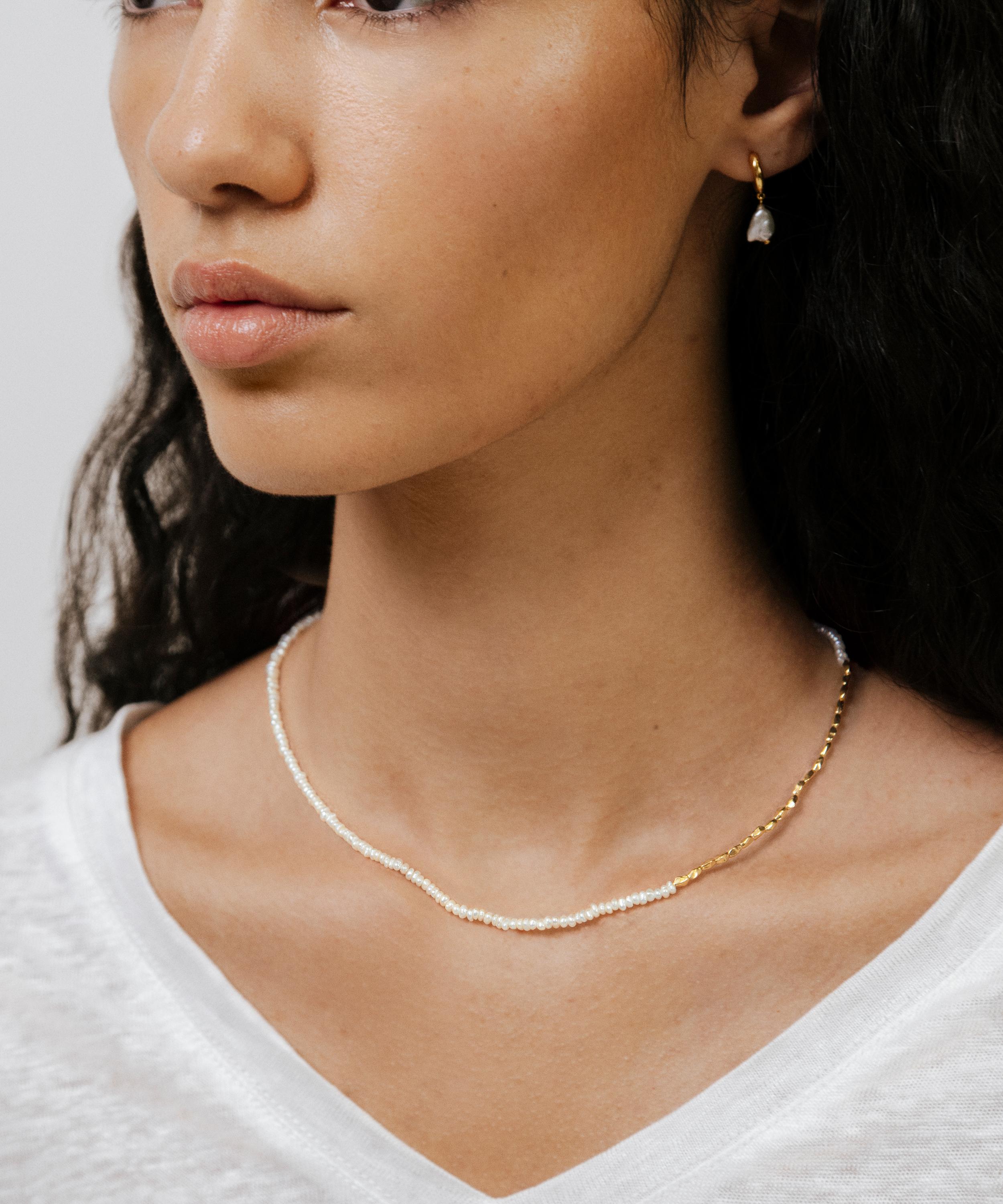 18ct Gold-Plated Vermeil Silver Mini Nugget Pearl Beaded Necklace
